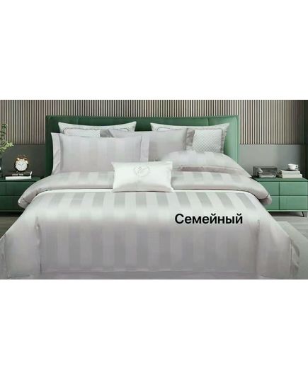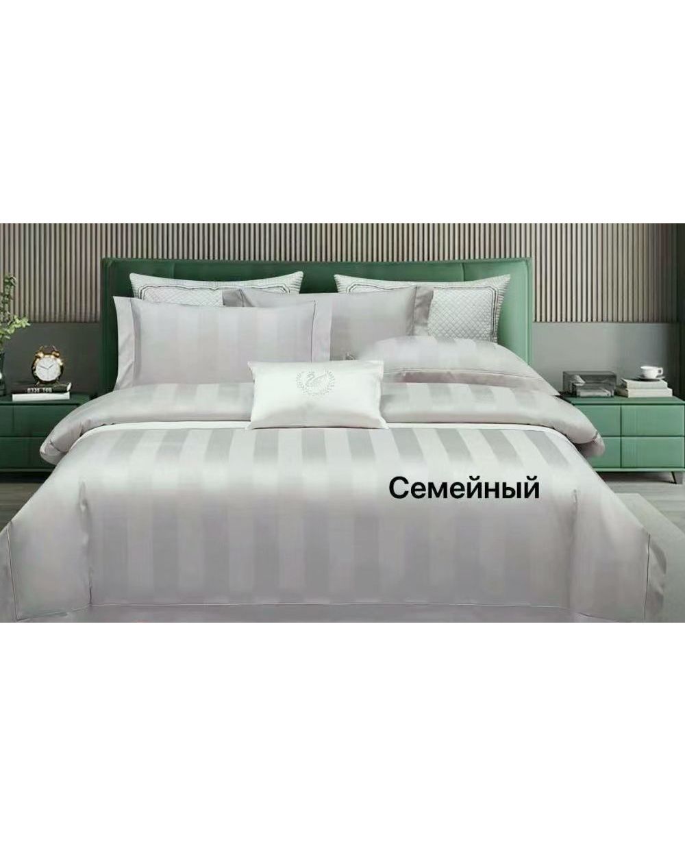 Семейный комплект постельного белья из египетского хлопка, серый в широкую полоску
