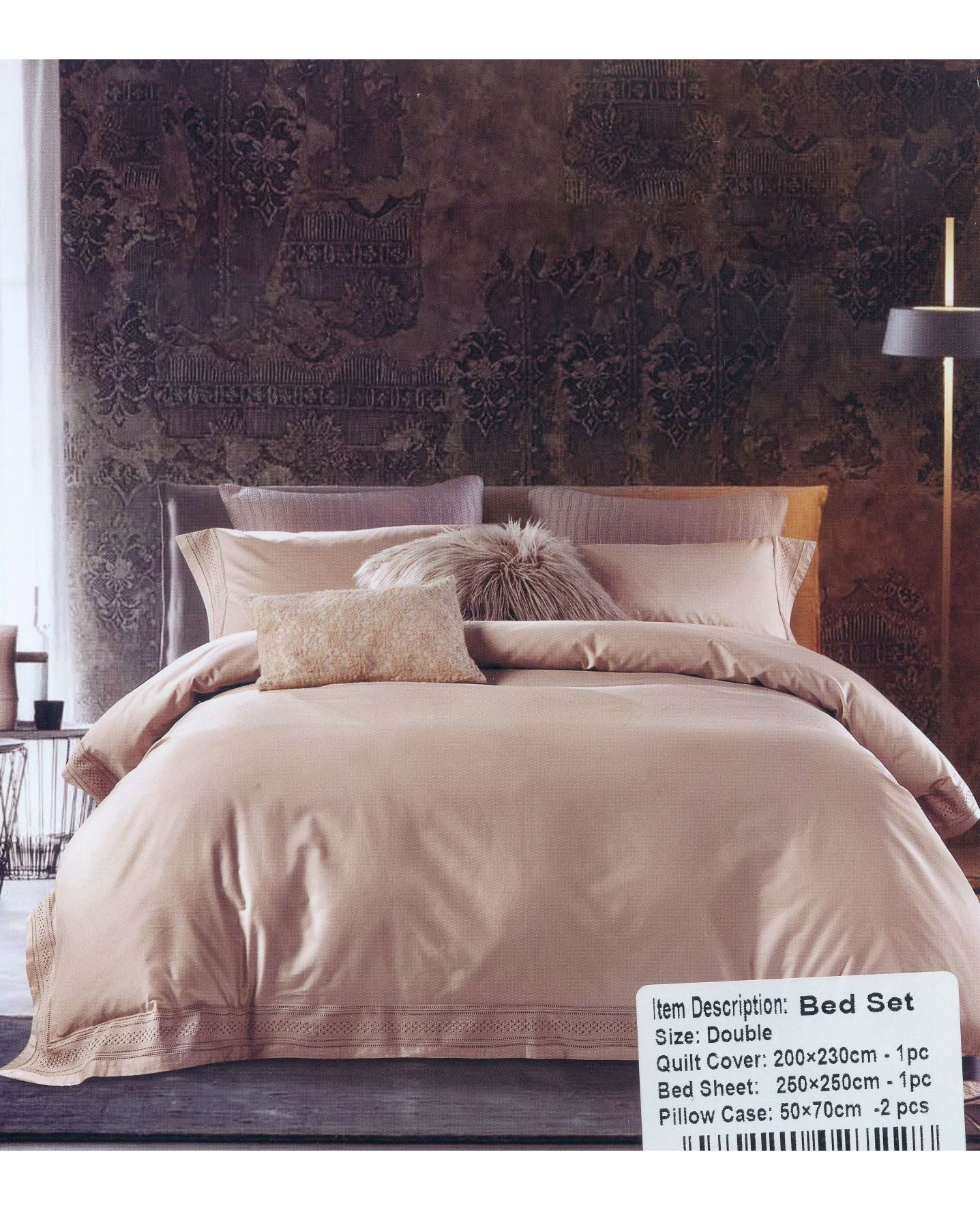 Семейный комплект постельного белья LA PERLA из египетского хлопка с кружевом, молочный, пудровый или кофейный