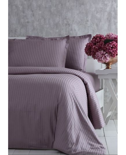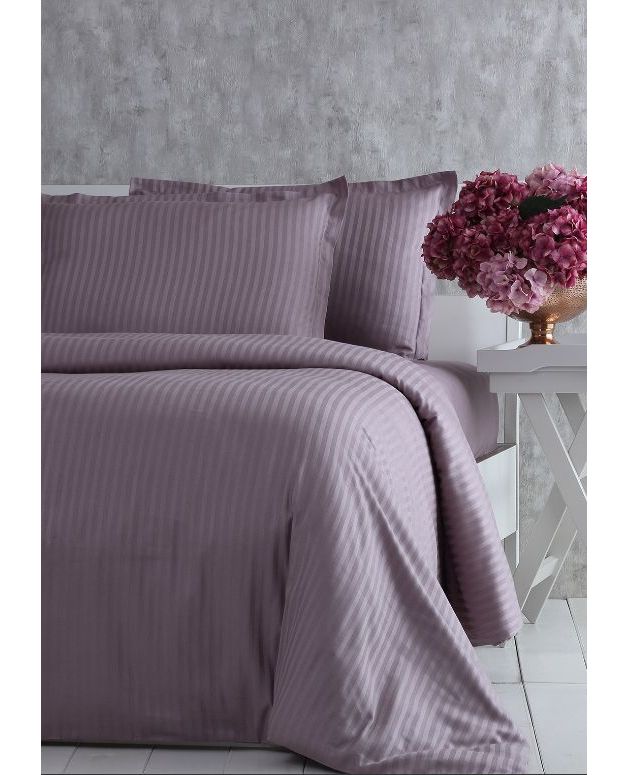Семейный комплект постельного белья сиреневого цвета в полоску — это гармония классического стиля и домашнего уюта. Турецкий хлопок дарит телу комфорт и свежесть каждую ночь.