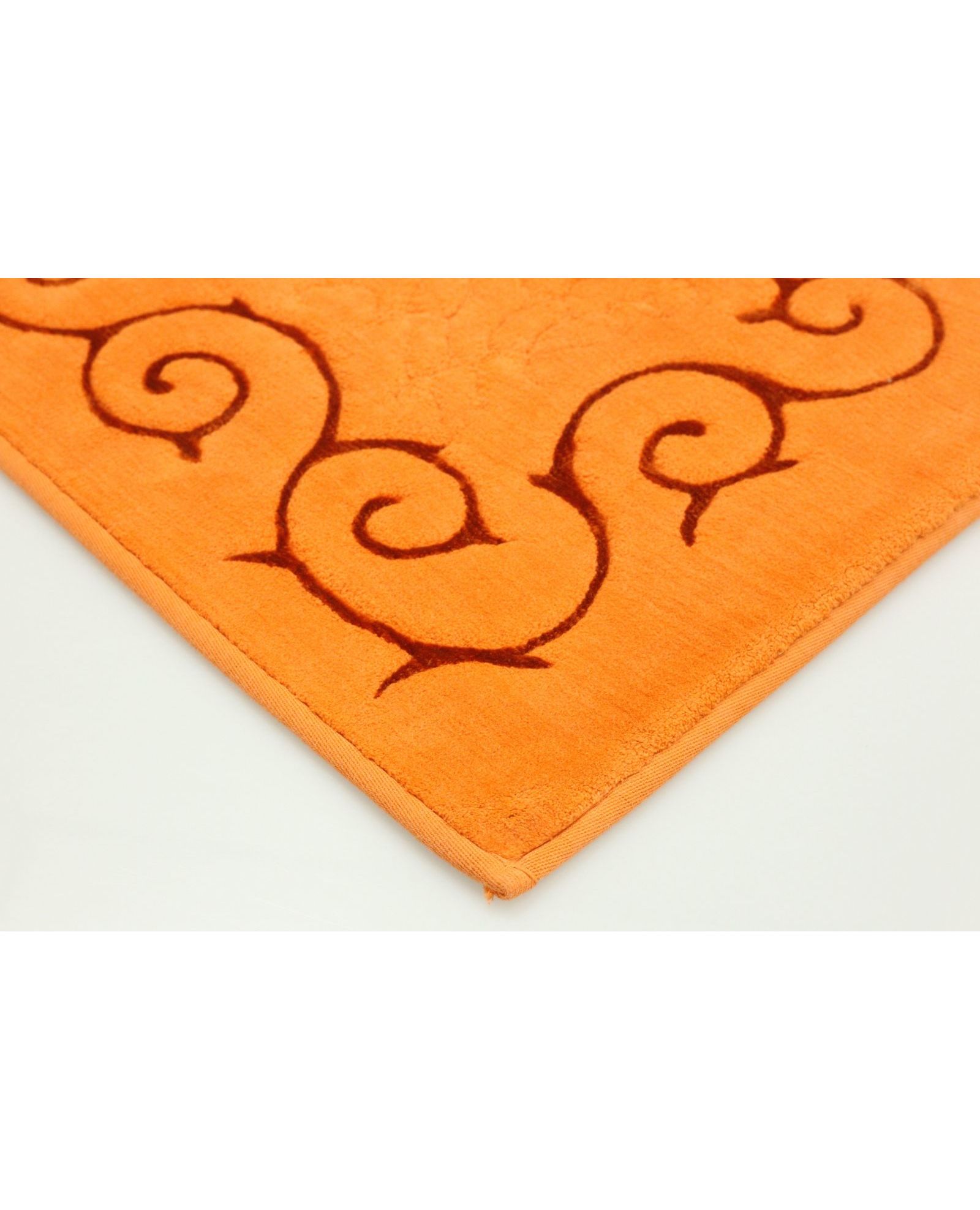 Яркий коврик станет стильным акцентом в ванной комнате. Тёплый оранжевый цвет придаёт уюта, а узор добавляет декоративности. Натуральный хлопок делает изделие мягким, комфортным и впитывающим влагу.