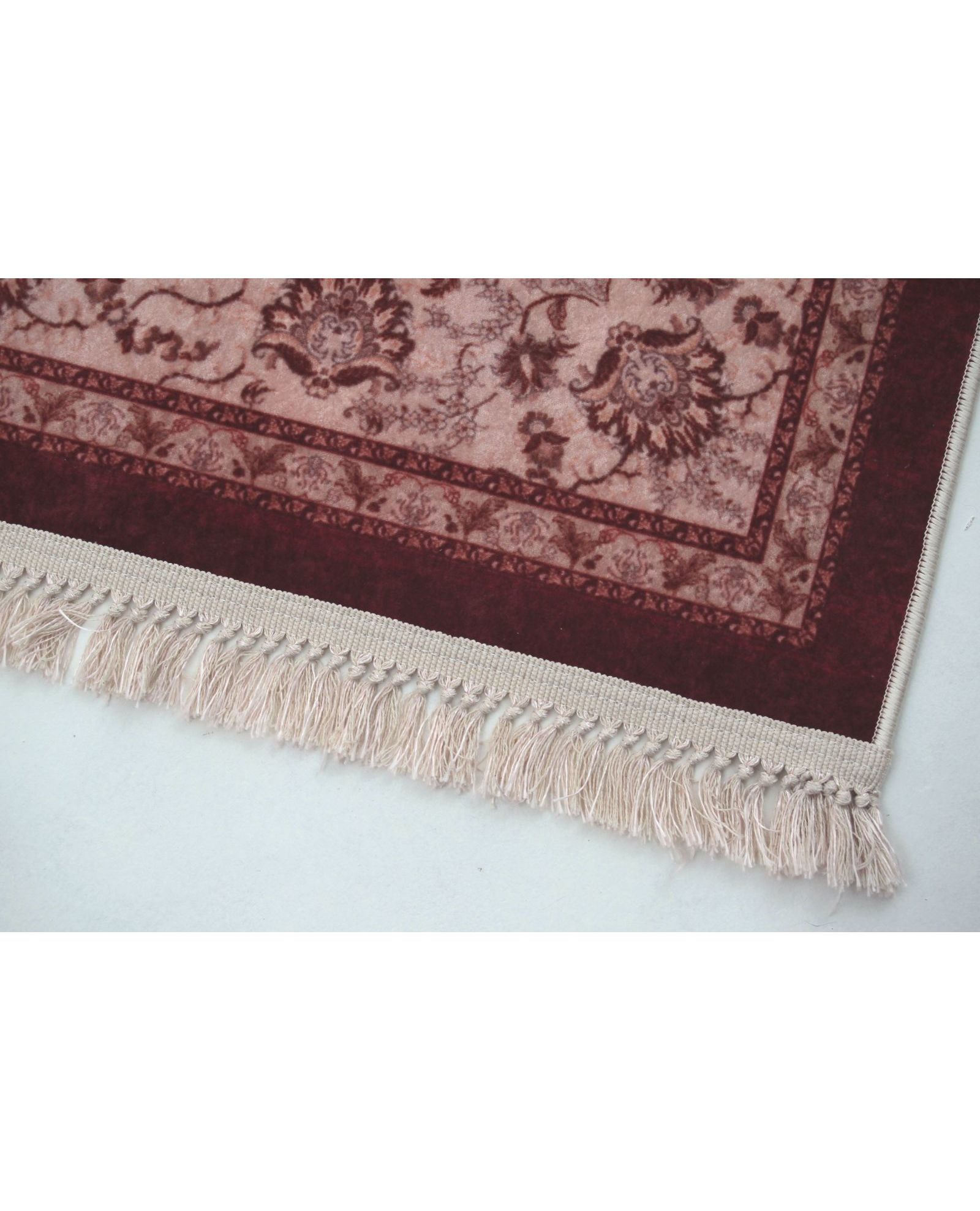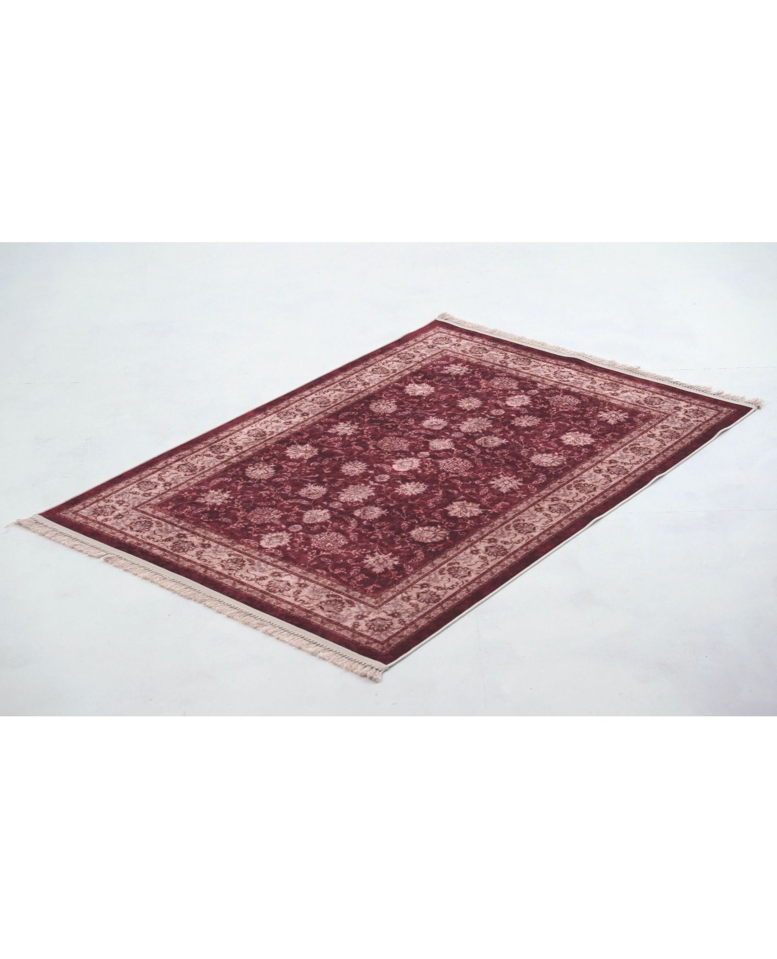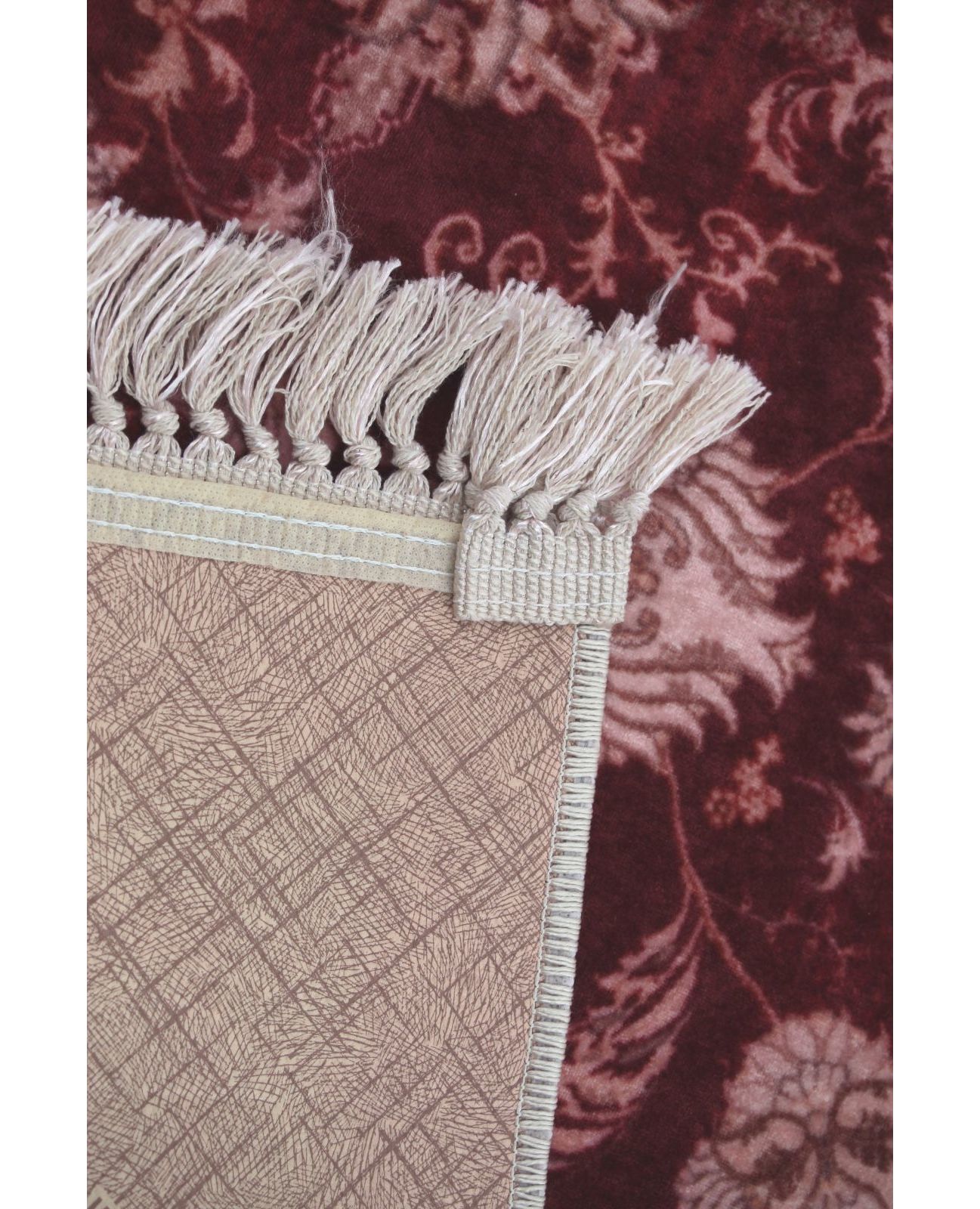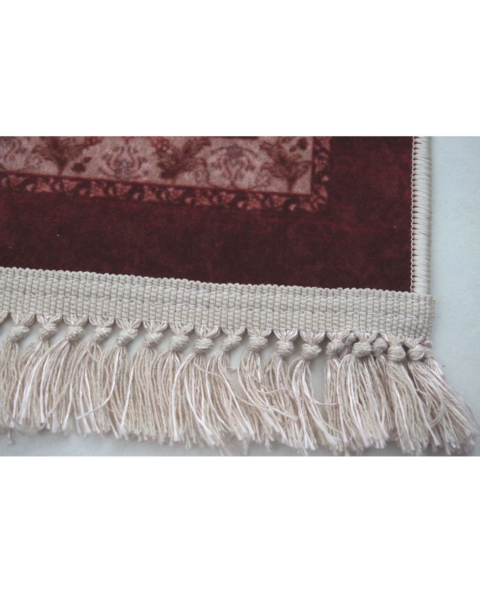 Элегантный ковер размером 160×230 см в насыщенном бордовом цвете станет акцентным элементом любого интерьера. Узор и бахрома придают изделию изысканный и уютный вид. Материал — 100% полиэстер — обеспечивает мягкость, устойчивость к износу и простоту в уходе.