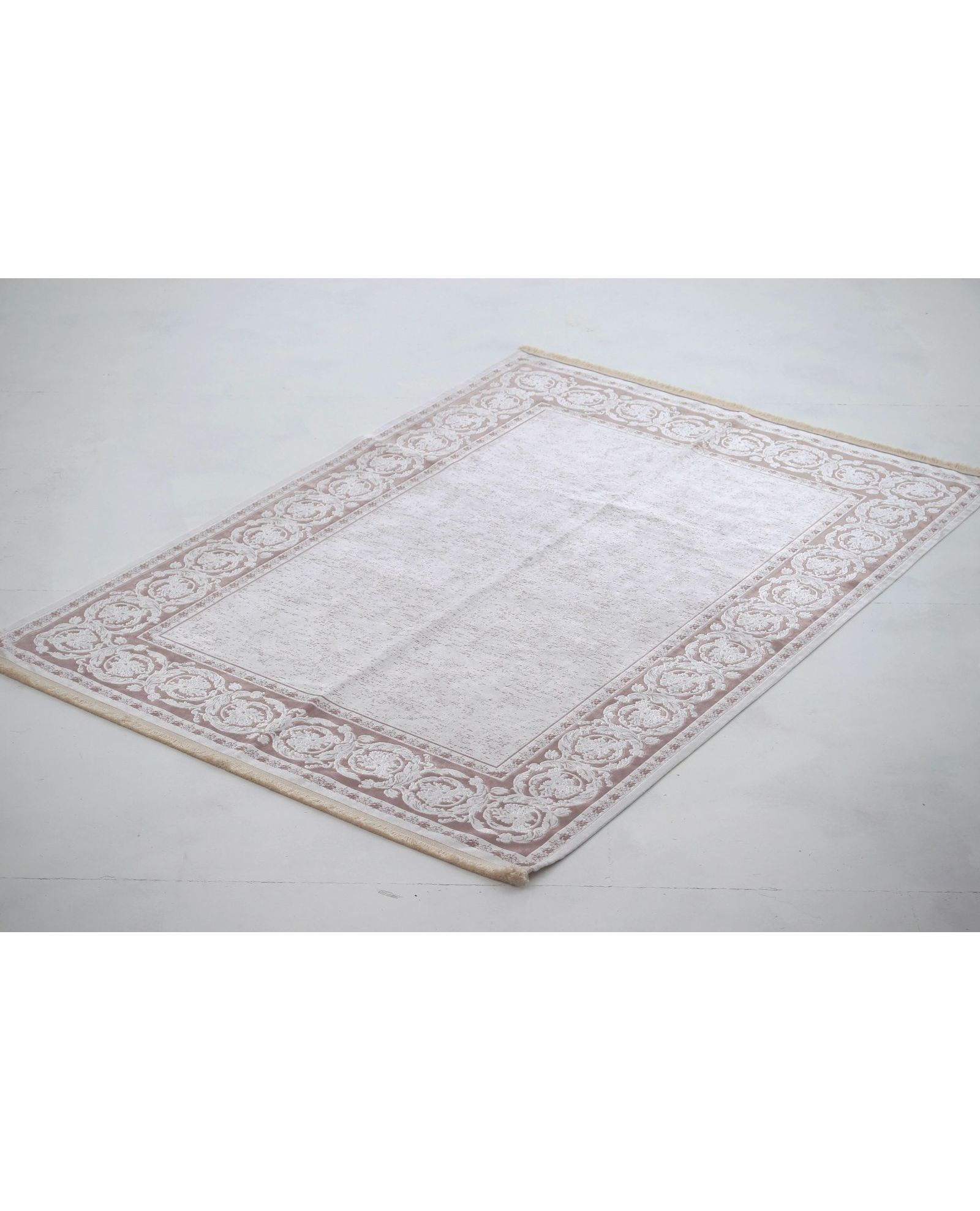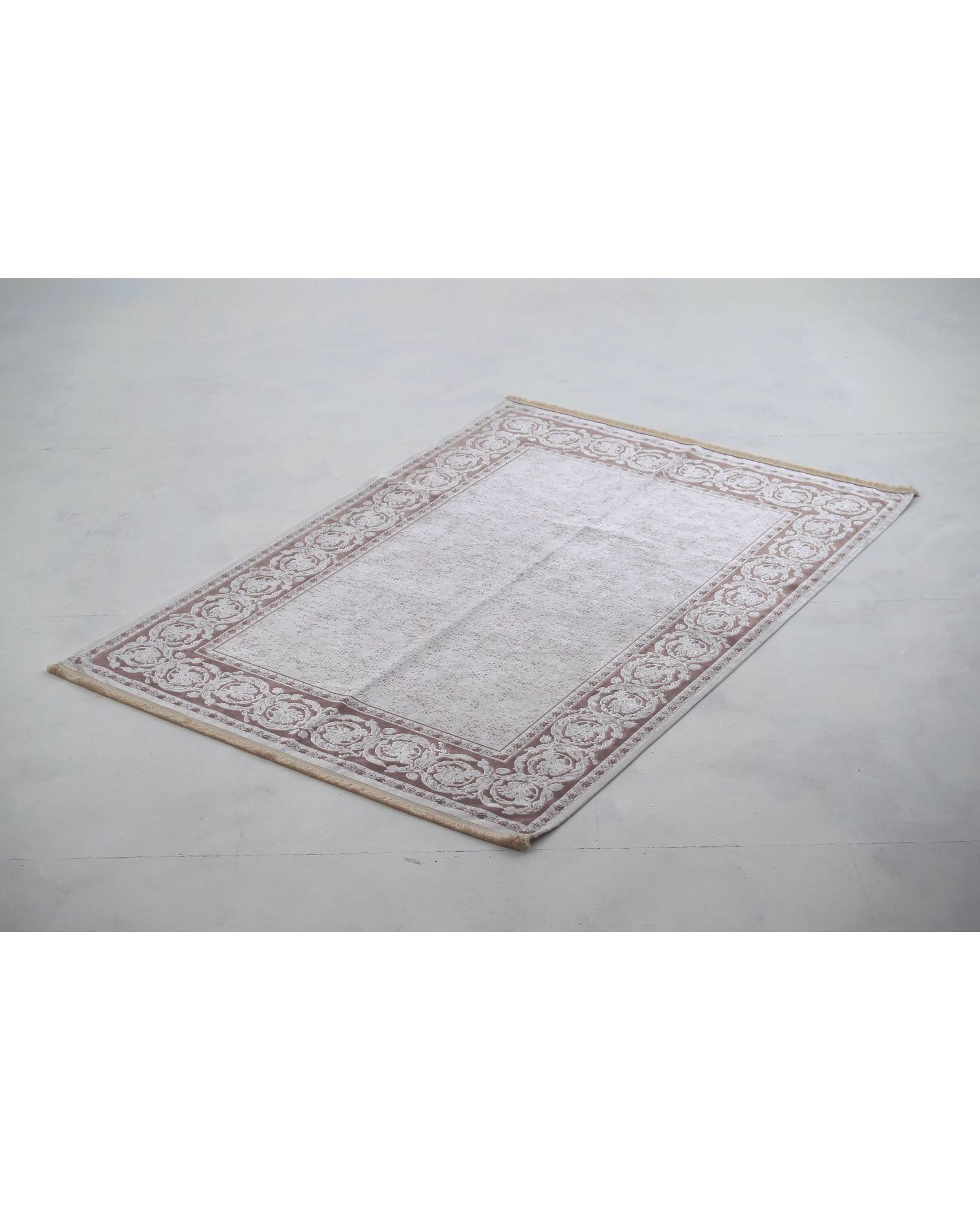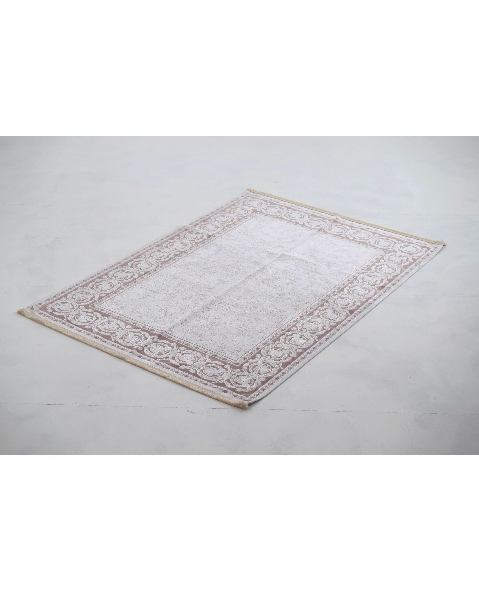 Ковер 160×230 см бежевого цвета с узором и бахромой