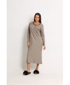 Ночная рубашка длинная с длинным рукавом LINDROS, коричневая, 100% хлопок Элегантная длинная ночная рубашка коричневого цвета создана для комфортного и уютного сна. Модель украшена нежной вышивкой и кружевом, что придаёт образу женственность и изысканность. Натуральная ткань приятна...