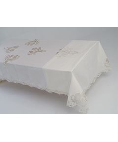Скатерть 160х350 см — изысканное сочетание классики и элегантности. Выполненная из полиэстера молочного цвета, эта скатерть украшена нежным кружевом по краям, а волнообразные края придают изделию утончённость. Идеально подойдёт для праздничных мероприятий или уютных семейных ужинов....