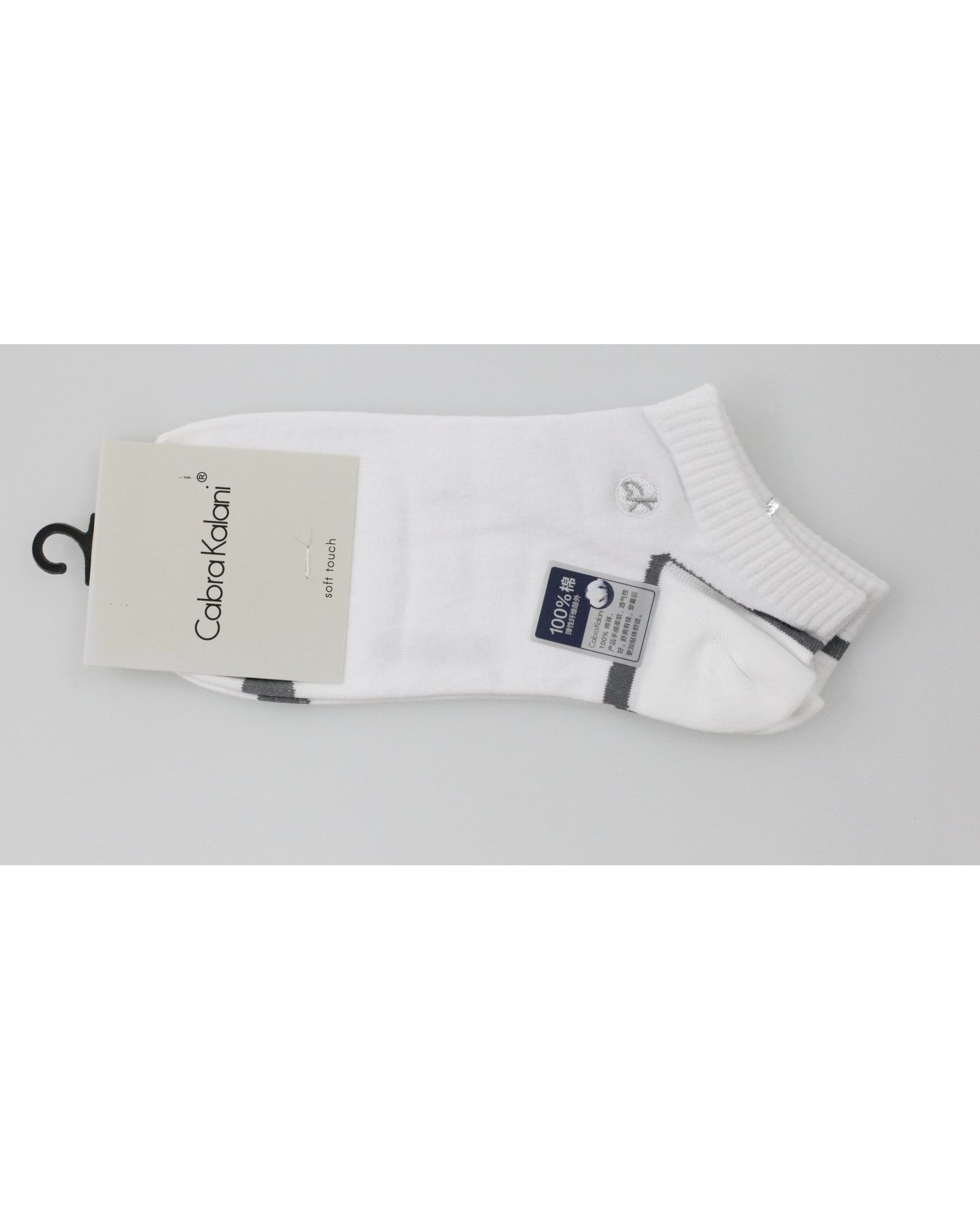 Мужские носки белого цвета с серым – удобный и практичный вариант для повседневного ношения. Изготовленные из 100% хлопка, они дарят мягкость, комфорт и хорошую воздухопроницаемость. Короткая модель легко сочетается с любой обувью.
