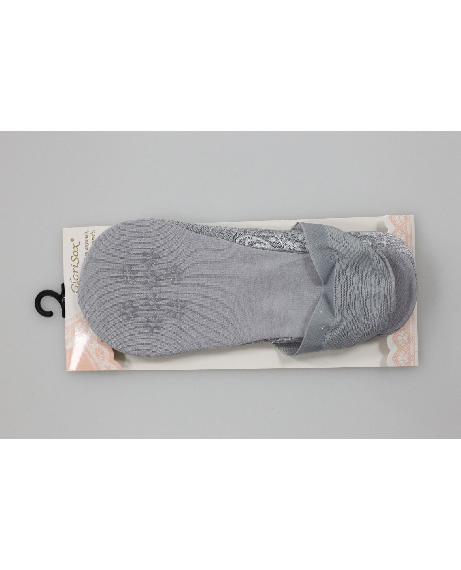 Женские кружевные носки-следы серого цвета – изысканный аксессуар для повседневного комфорта. Хлопковая стопа дарит мягкость и приятные ощущения, а силиконовое нанесение по краям обеспечивает надежную фиксацию. Противоскользящий силиконовый узор на подошве делает носку еще удобнее.