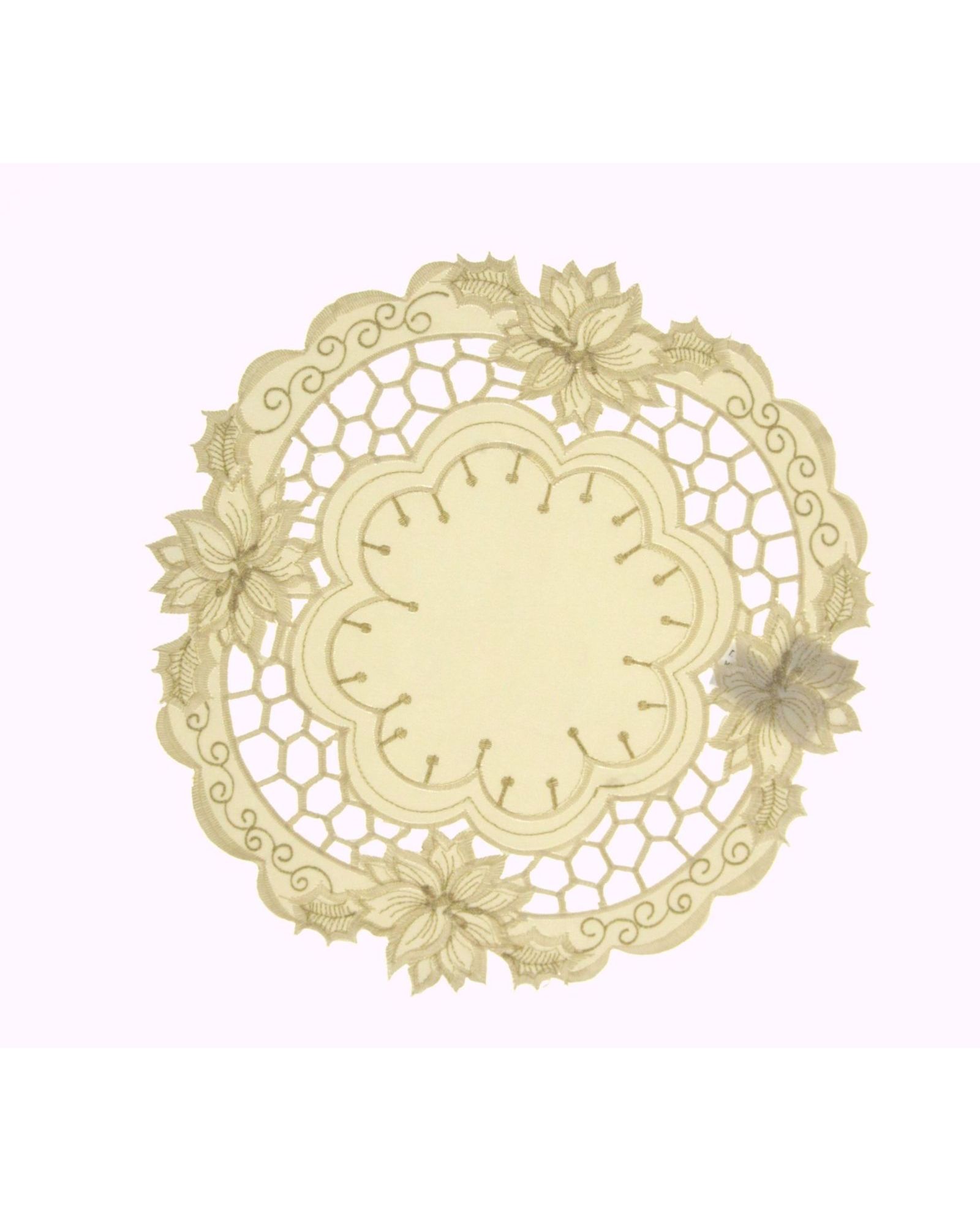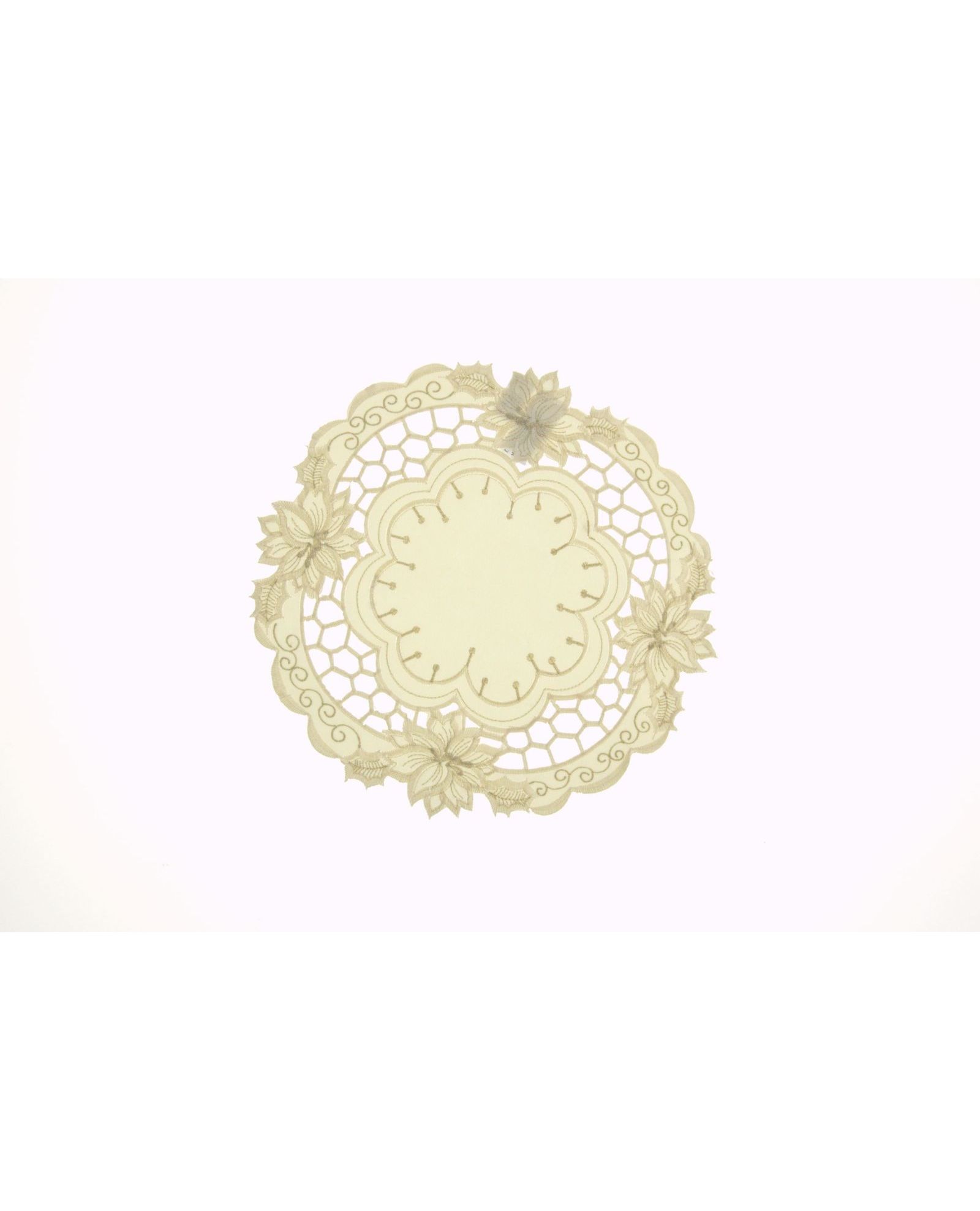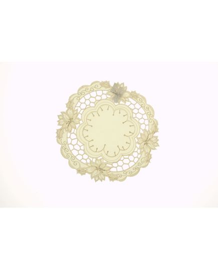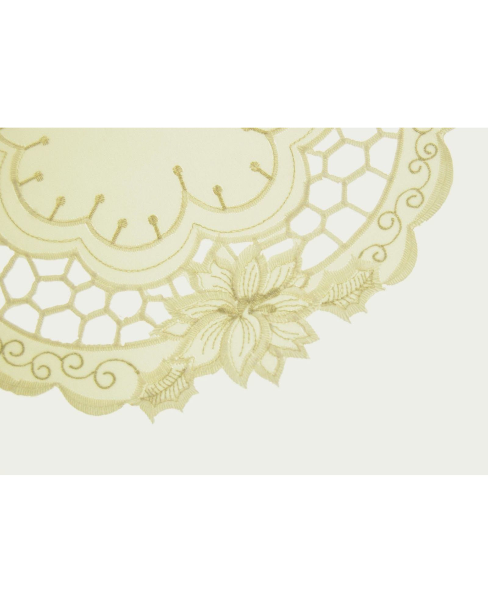 Компактная бежевая салфетка с золотистой нитью станет утончённым акцентом сервировки. Вышивка и ажурные края придают изделию нарядный и декоративный вид. Прочный полиэстер обеспечивает долговечность и лёгкий уход.