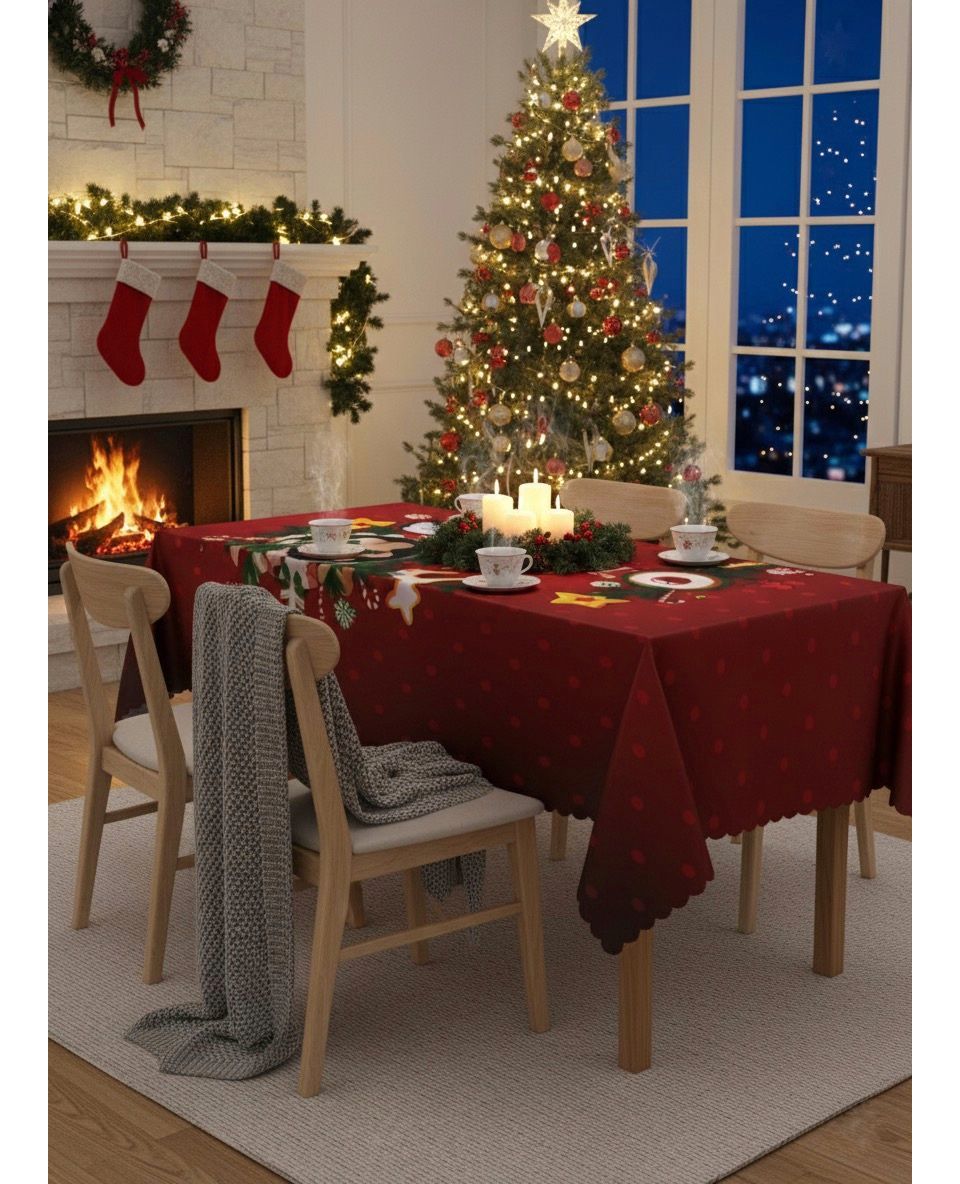 Яркая праздничная скатерть создаёт уютную атмосферу и наполняет стол праздничным рождественским настроением. Благодаря материалу полиэстер она практична, проста в уходе и надолго сохраняет насыщенные цвета. Отлично подойдёт для семейных праздников и торжественных застолий.