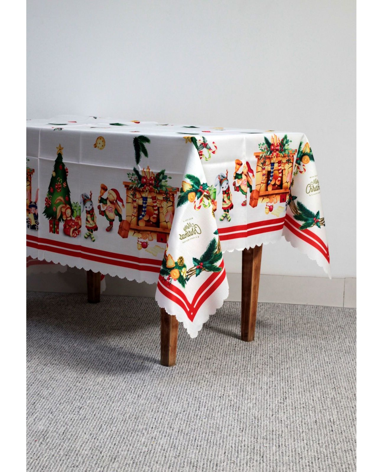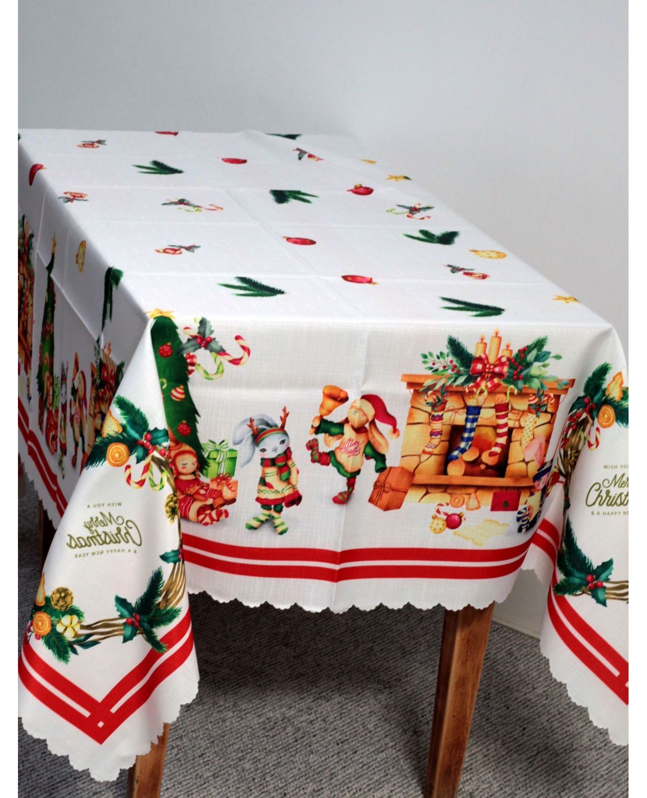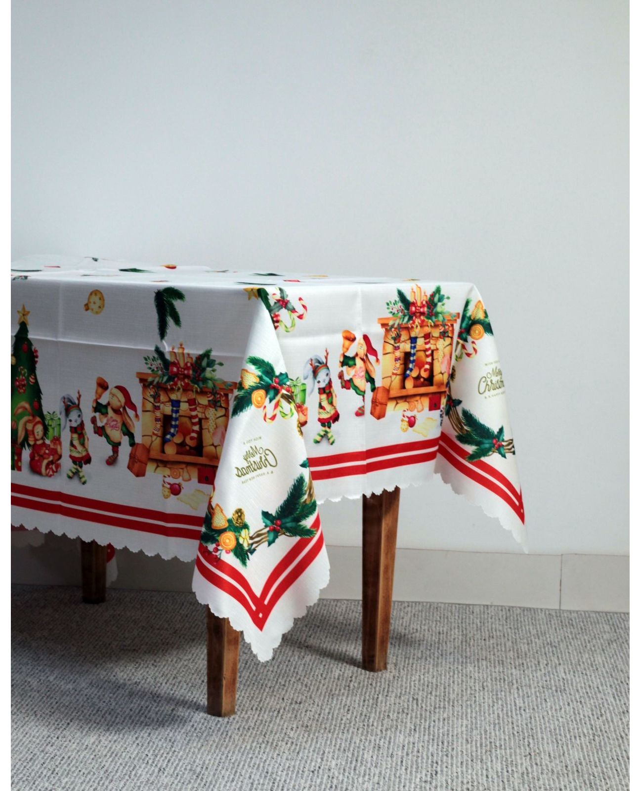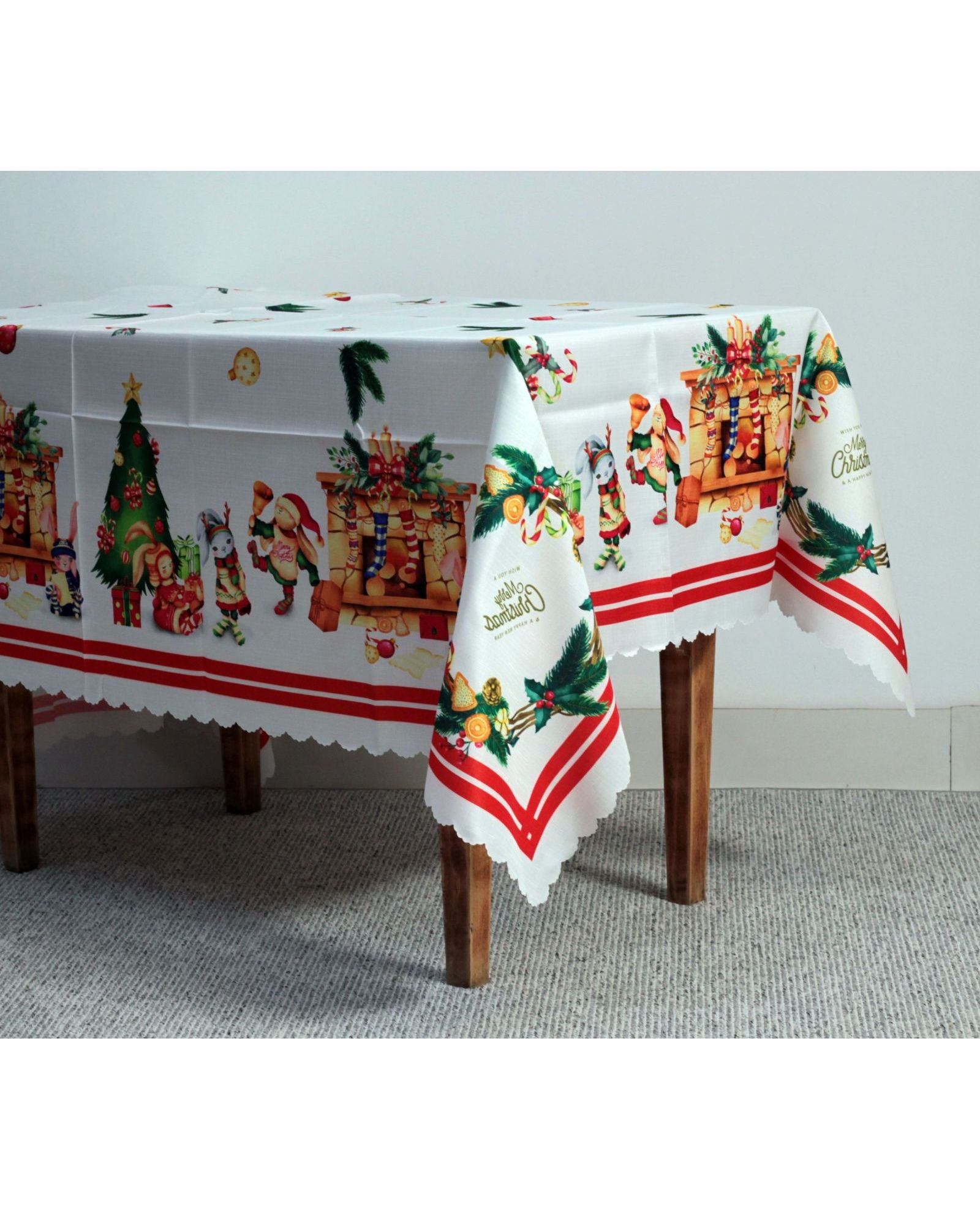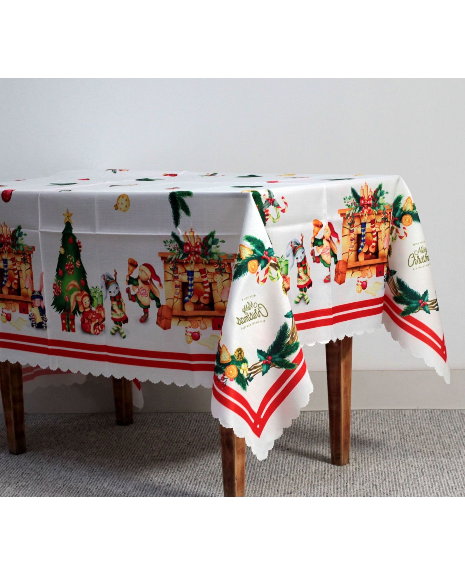 Яркая новогодняя скатерть наполняет дом уютом и создаёт праздничный настрой. Насыщенный рождественский принт делает стол эффектным и нарядным. Полиэстер обеспечивает практичность, простоту ухода и долговечность.
