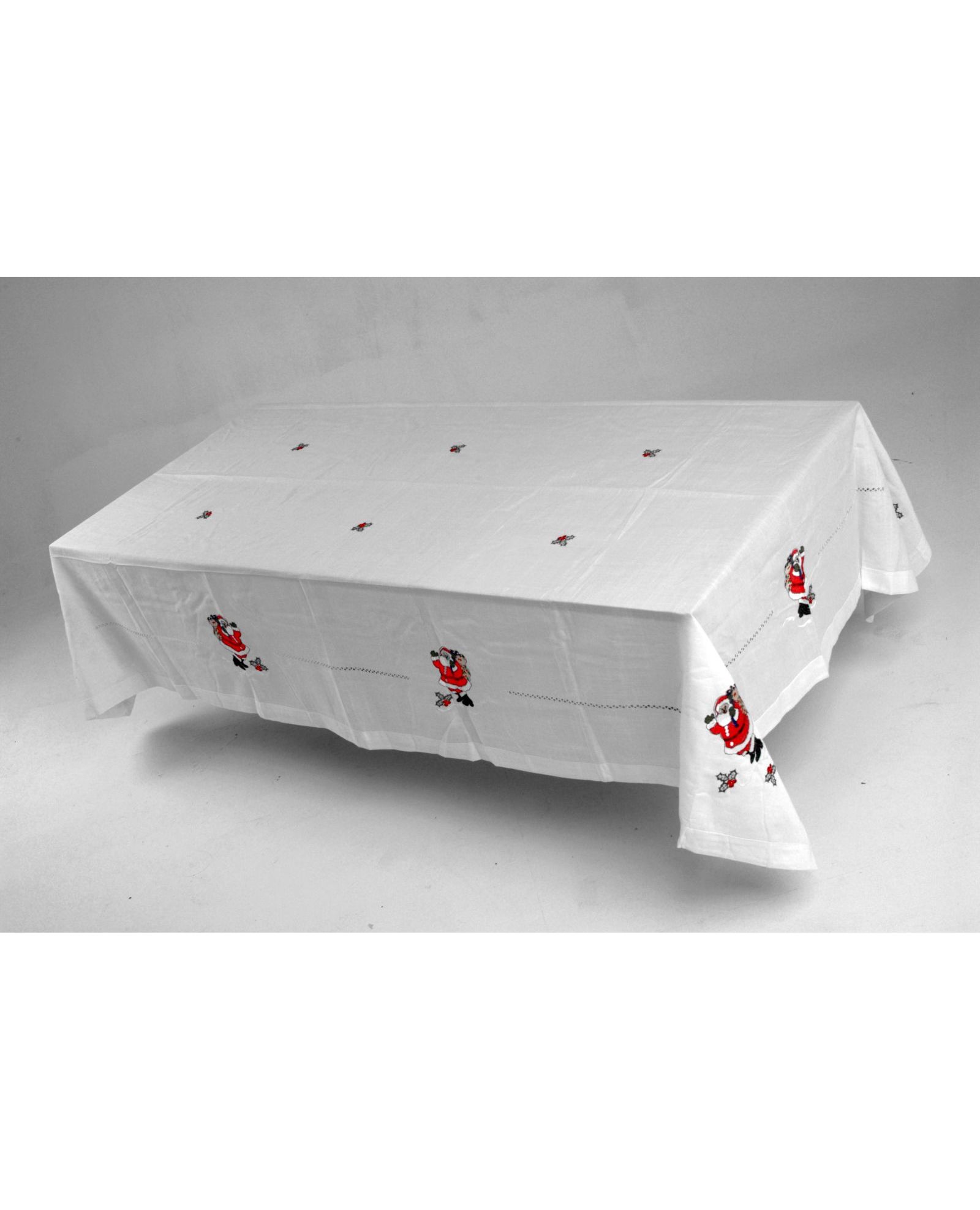 Скатерть праздничная белая с изображением Дедов Морозов