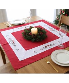 Салфетка 85×85 см красного цвета с новогодней вышивкой – праздничное настроение в вашем доме Эта декоративная салфетка станет стильным дополнением праздничного интерьера. Яркий красный цвет и аккуратная новогодняя вышивка придают столу атмосферу уюта и торжества. Ткань из...