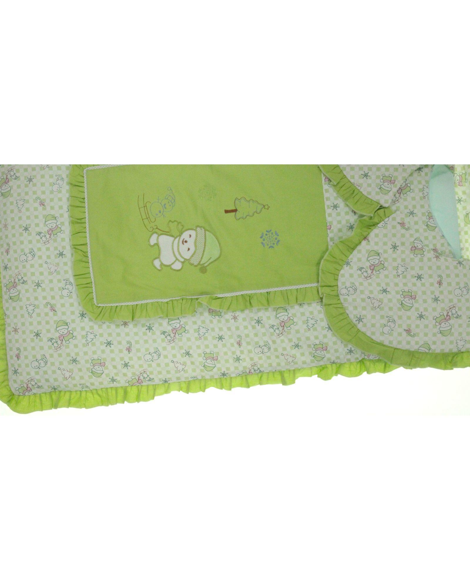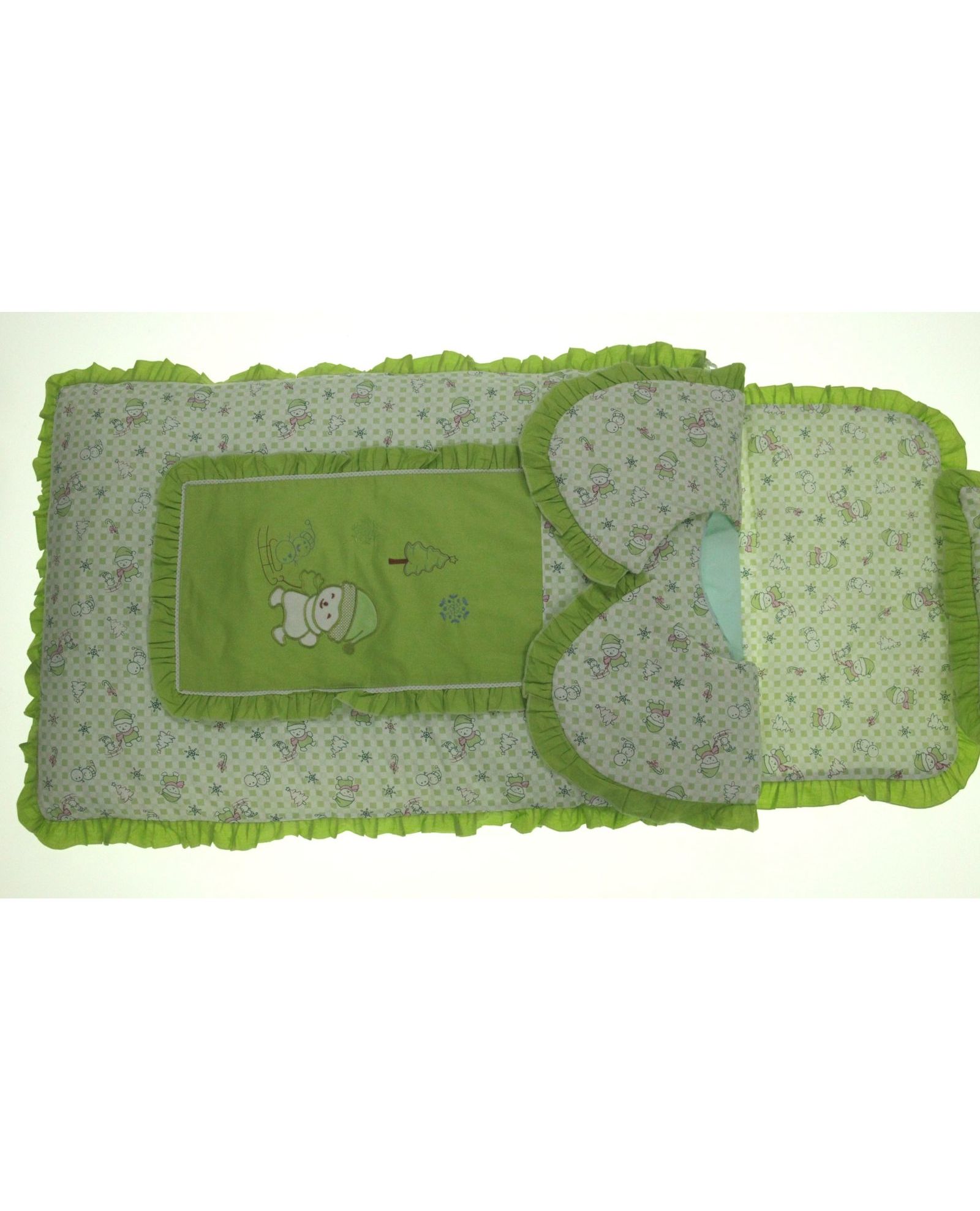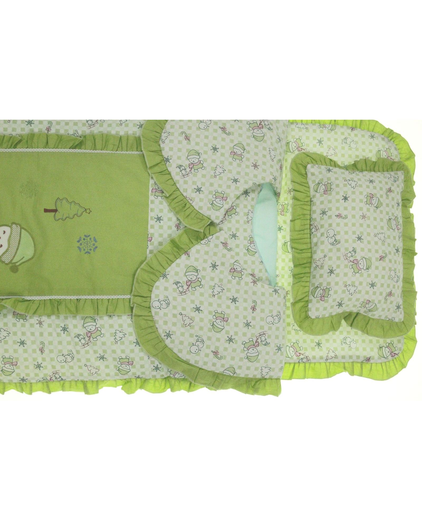 Детское одеяло-конверт 60×115 см с подушкой 20×30 см, салатового цвета, с рюшами