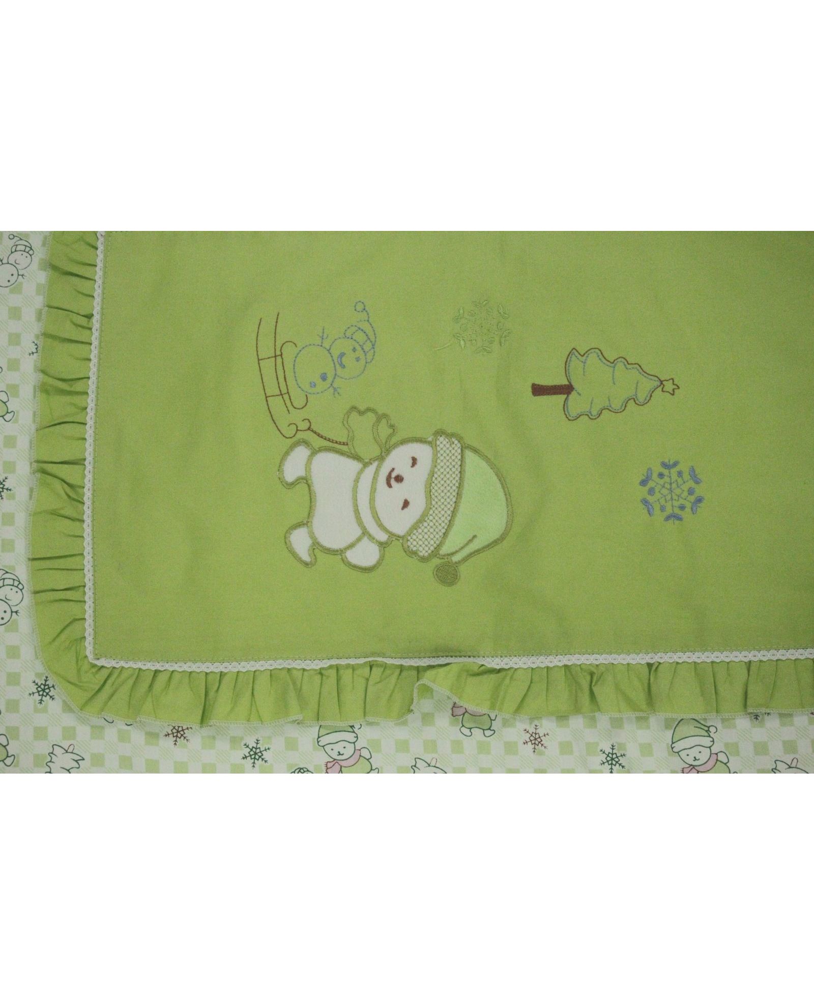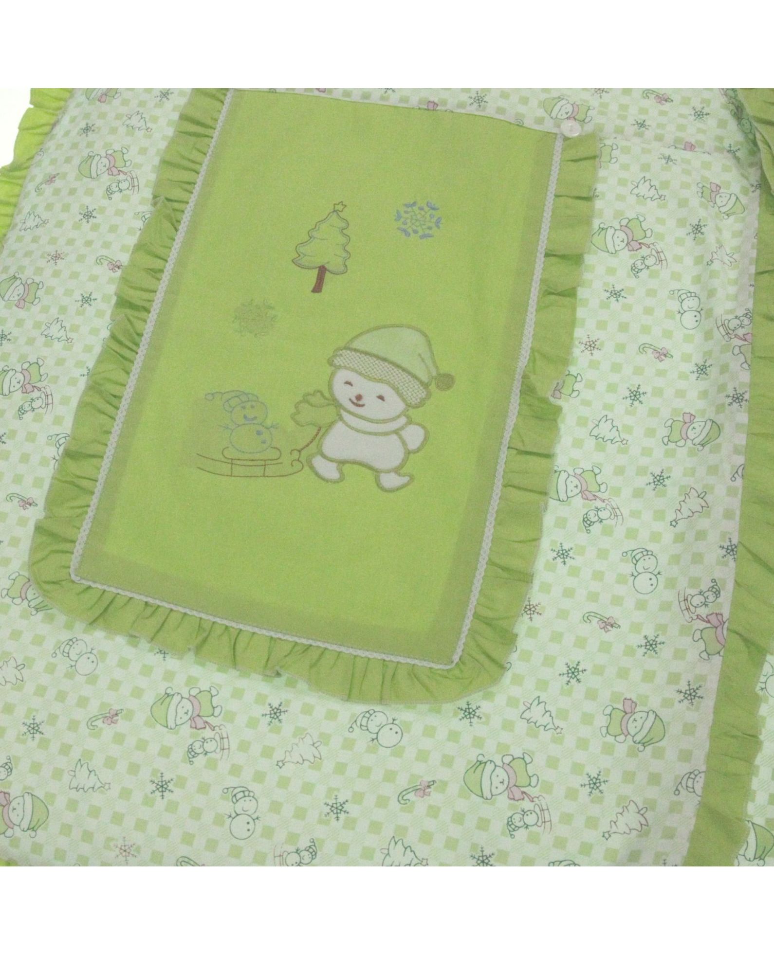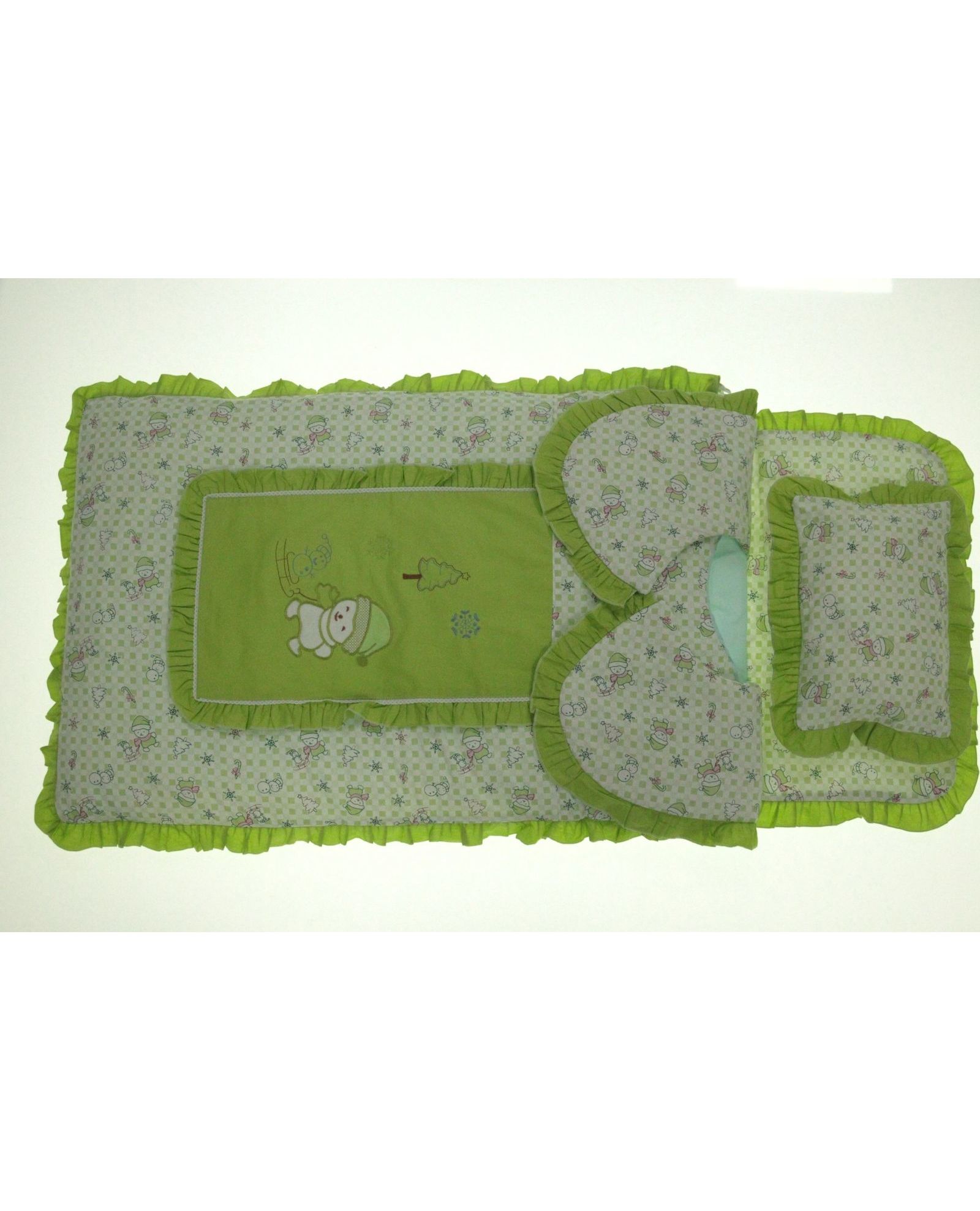 Детское одеяло-конверт 60×115 см с подушкой 20×30 см, салатового цвета, с рюшами