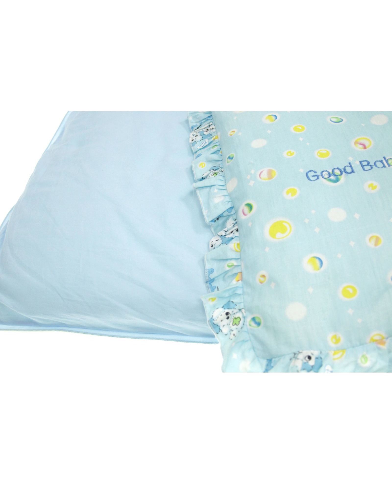Одеяло-конверт детское 60×115 см с подушкой 20×30 см, голубого цвета, с рюшами