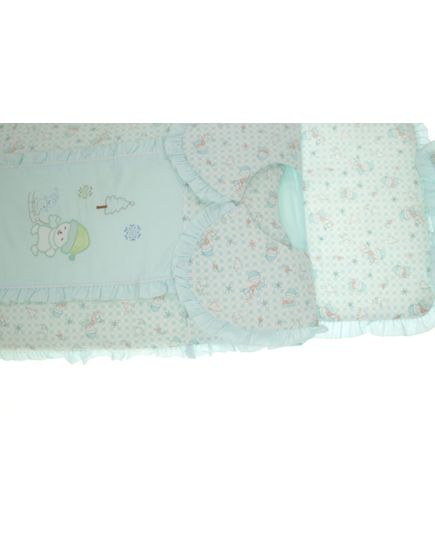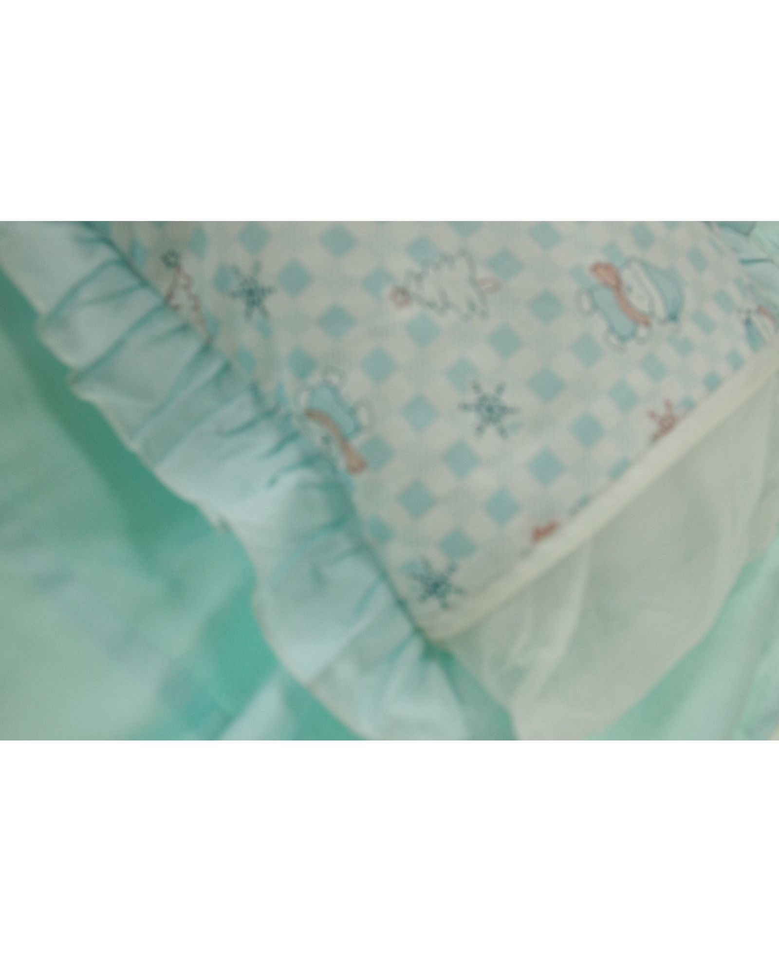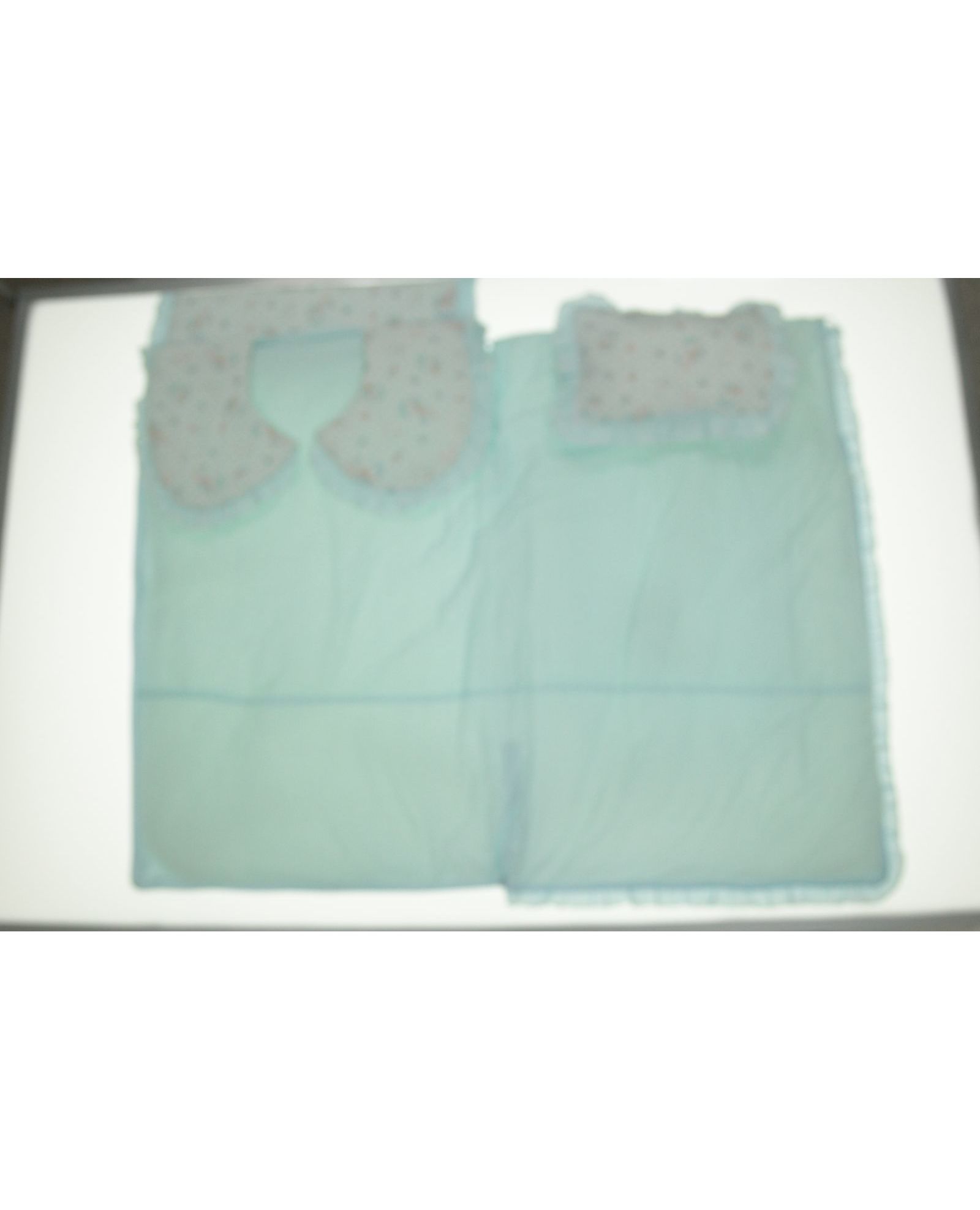 Мягкое и удобное одеяло-конверт для новорождённого размером 60×115 см в комплекте с подушкой 20×30 см — отличный выбор для выписки, прогулок и сна. Верх выполнен из натурального хлопка, а наполнитель — синтепон, который хорошо зберігає тепло. Голубой цвет и рюши надають комплекту стильного и трогательного вида.