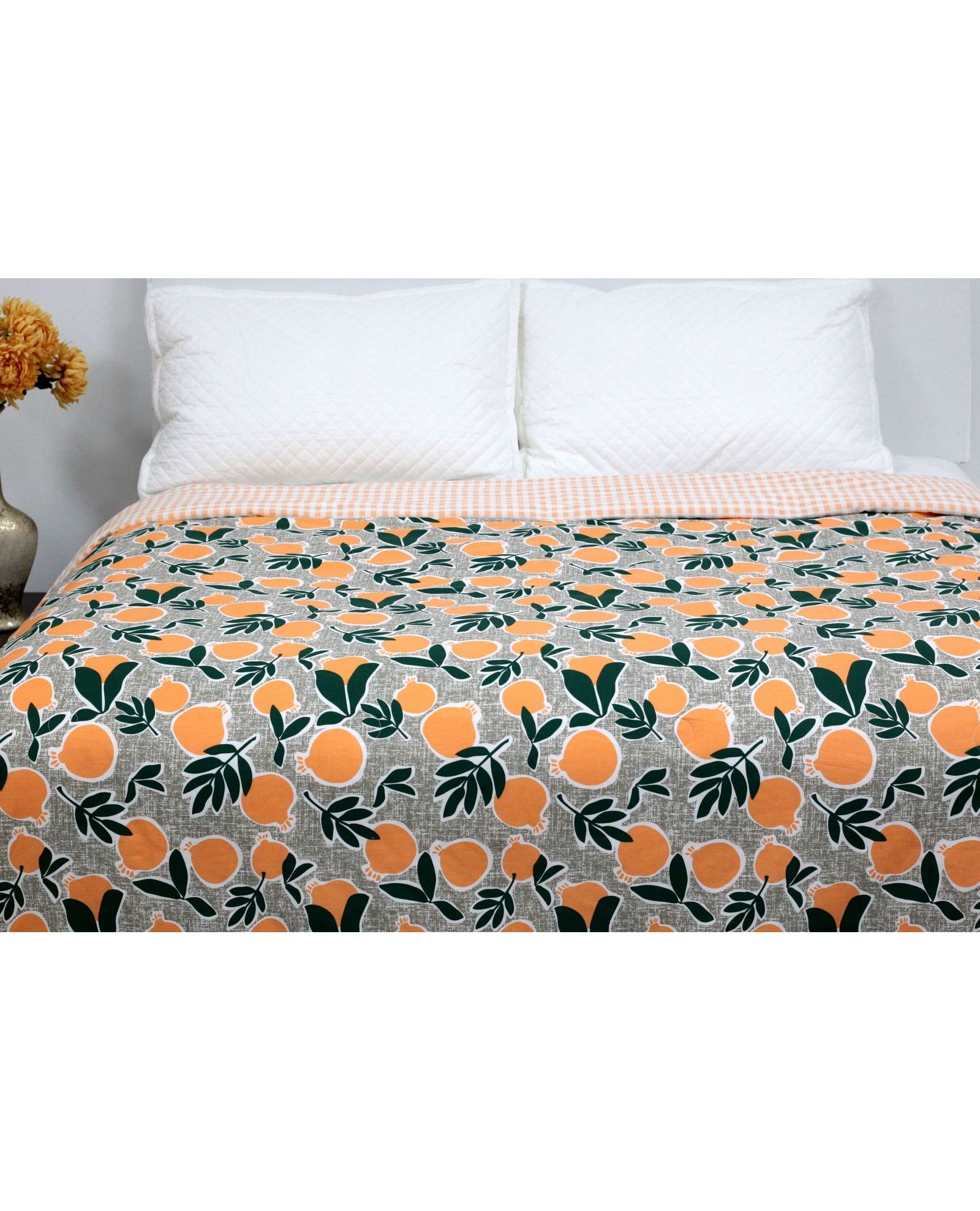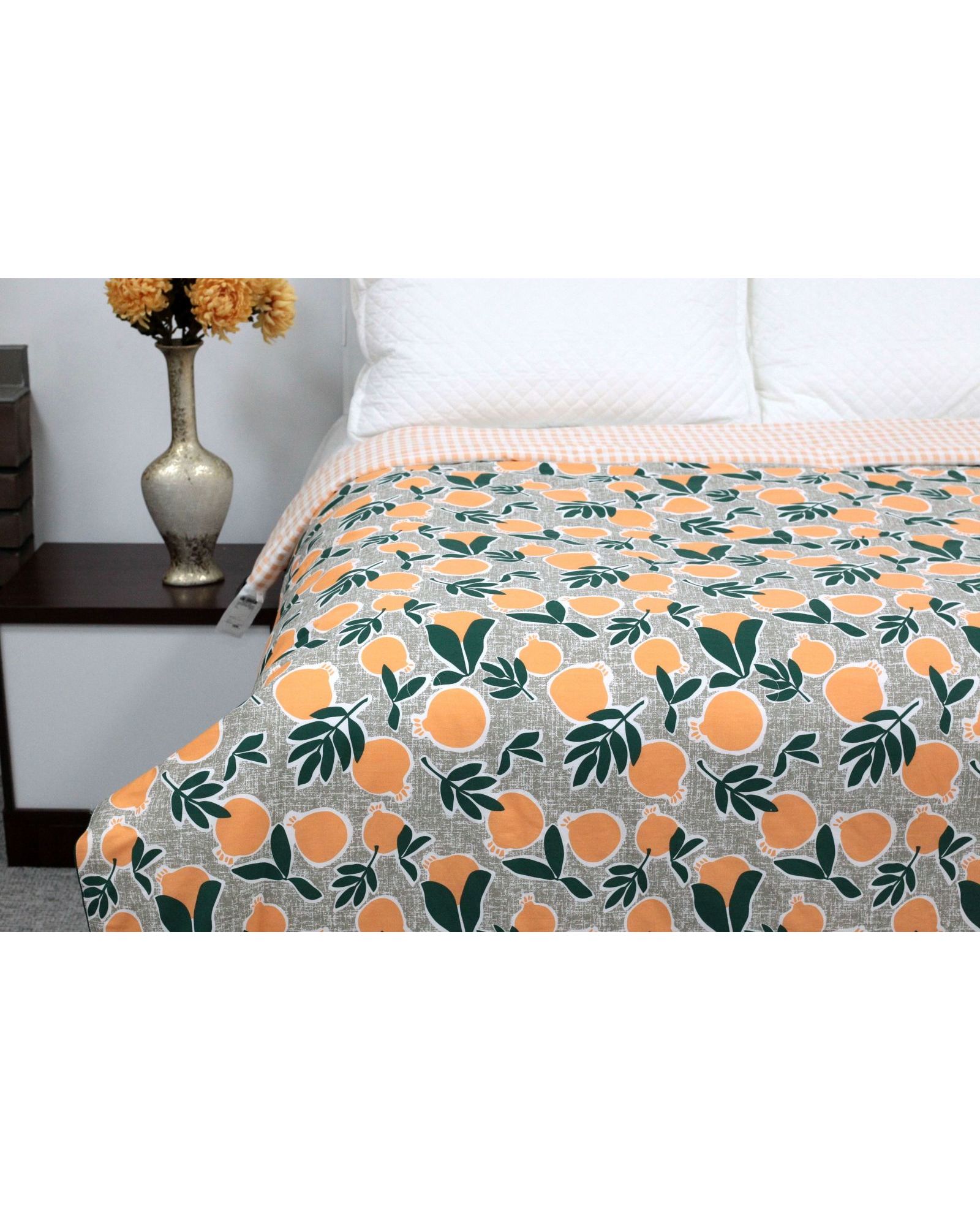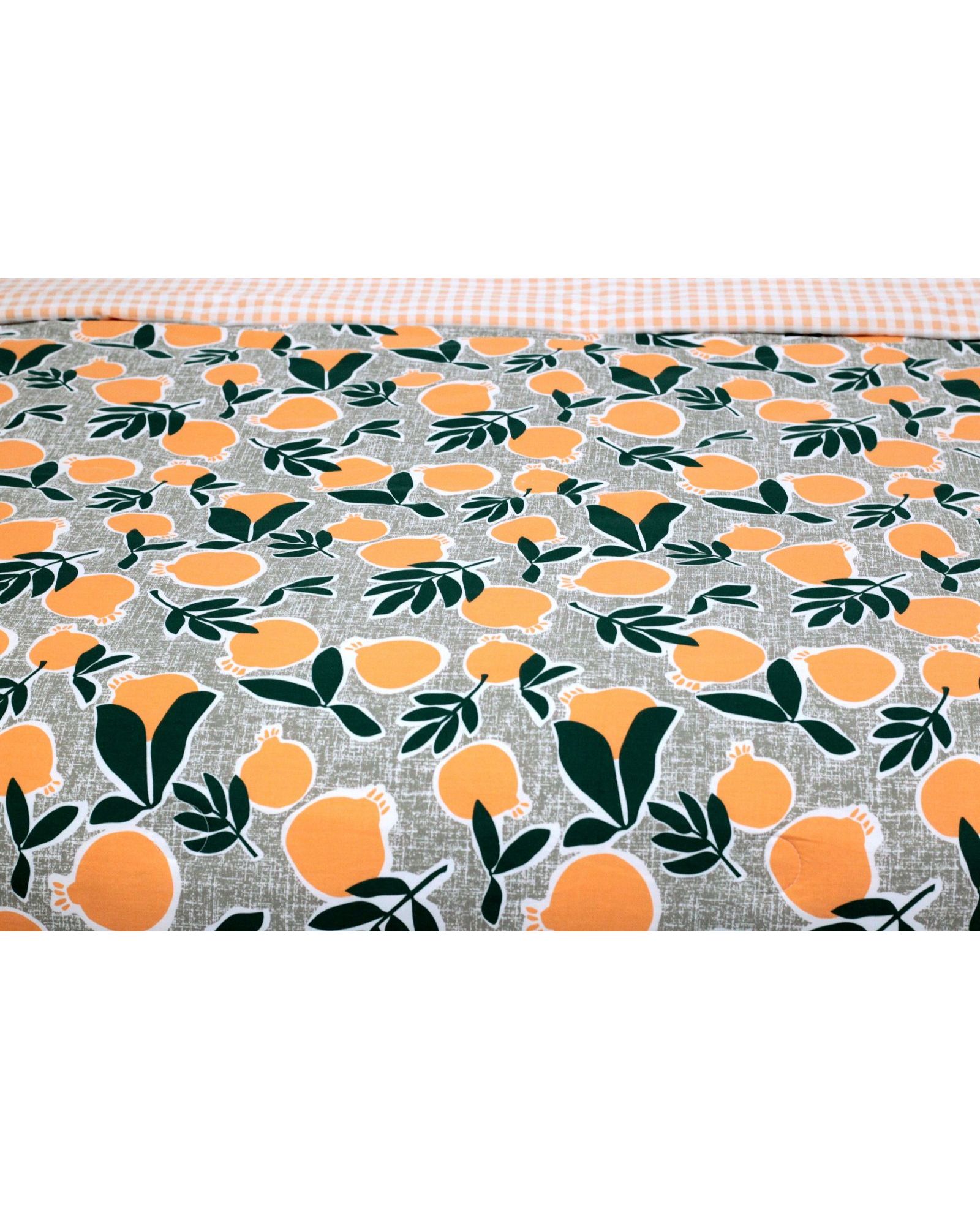 Летнее одеяло 200×230 см зелено-оранжевого цвета с изображением апельсинов
