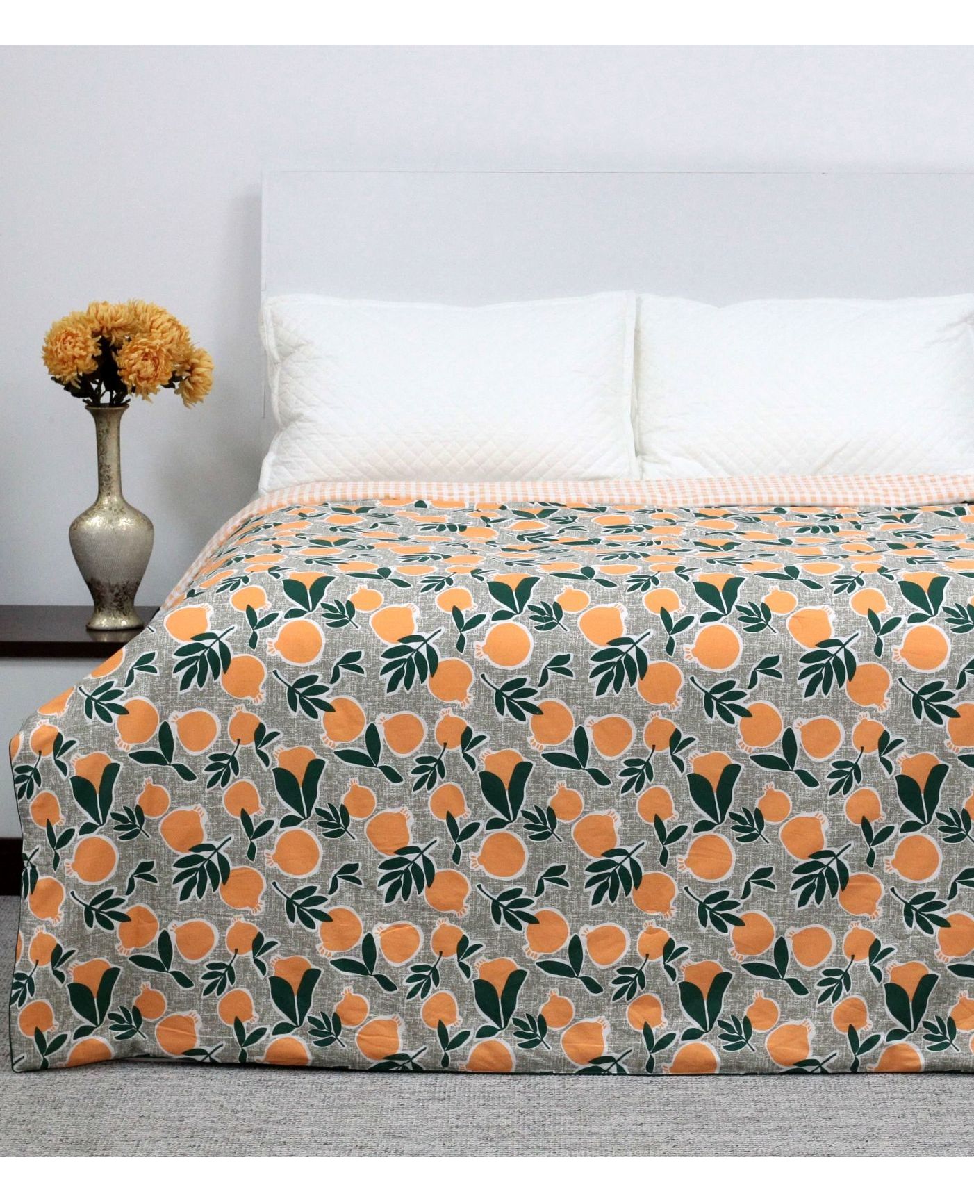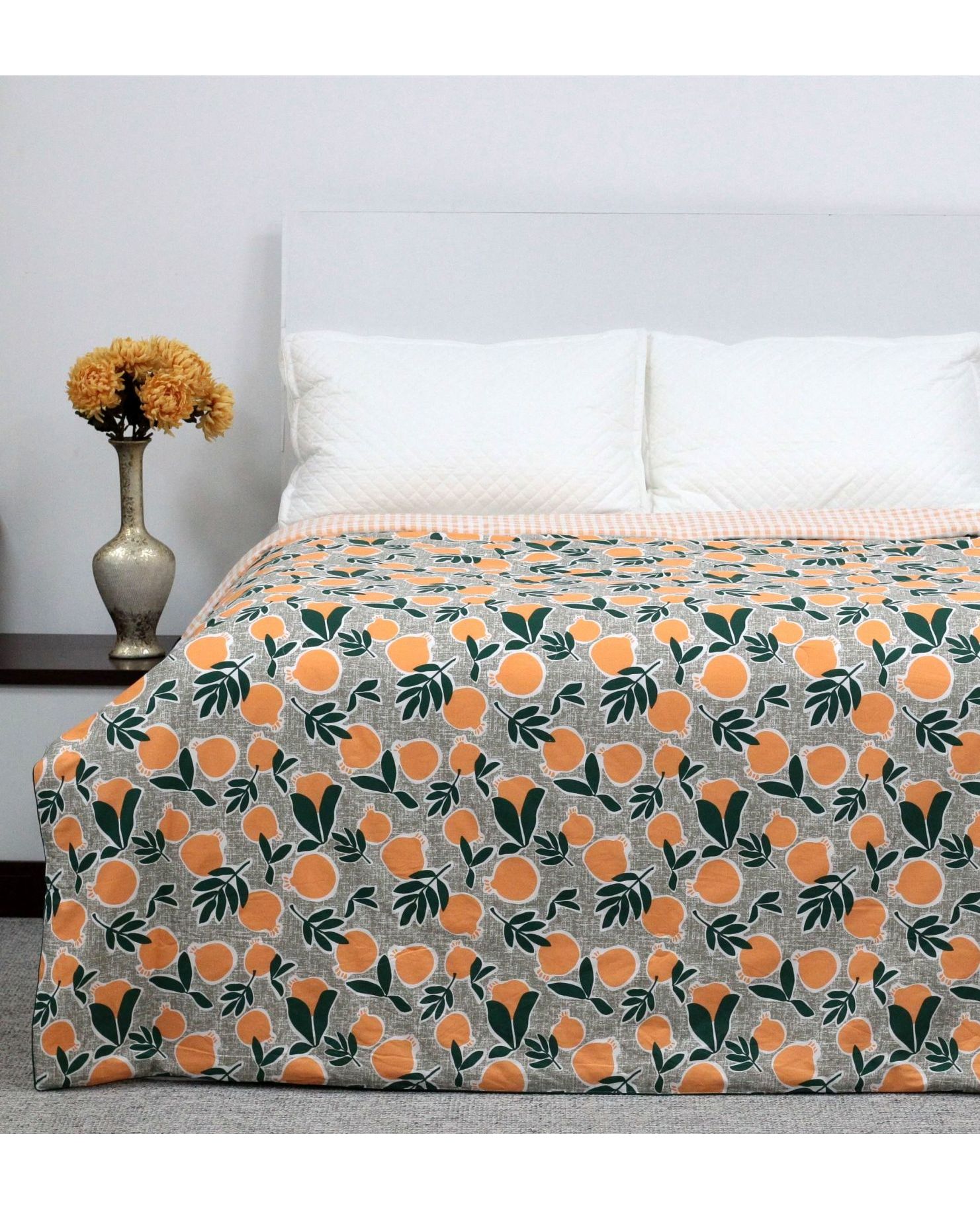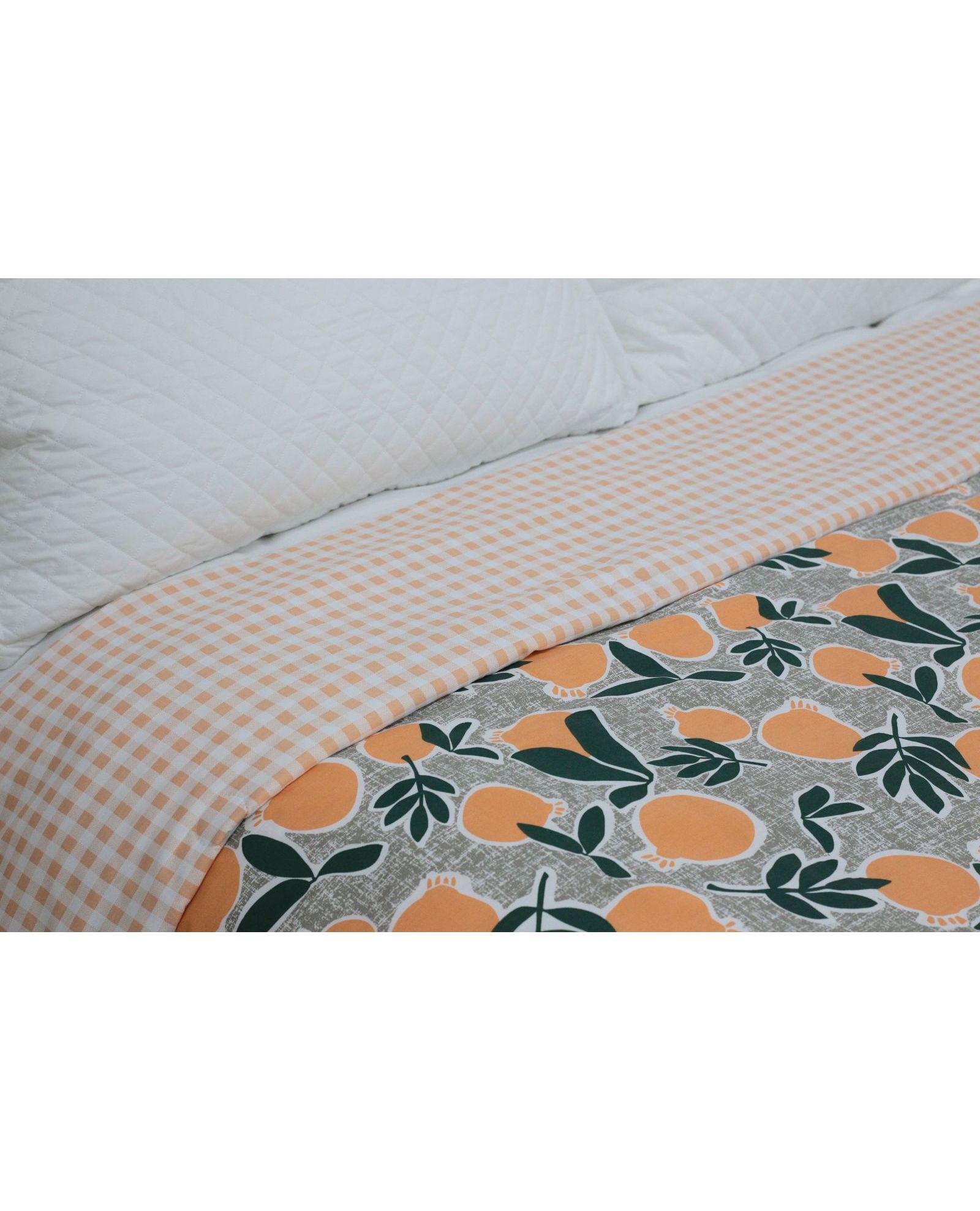 Летнее одеяло 200×230 см зелено-оранжевого цвета с изображением апельсинов