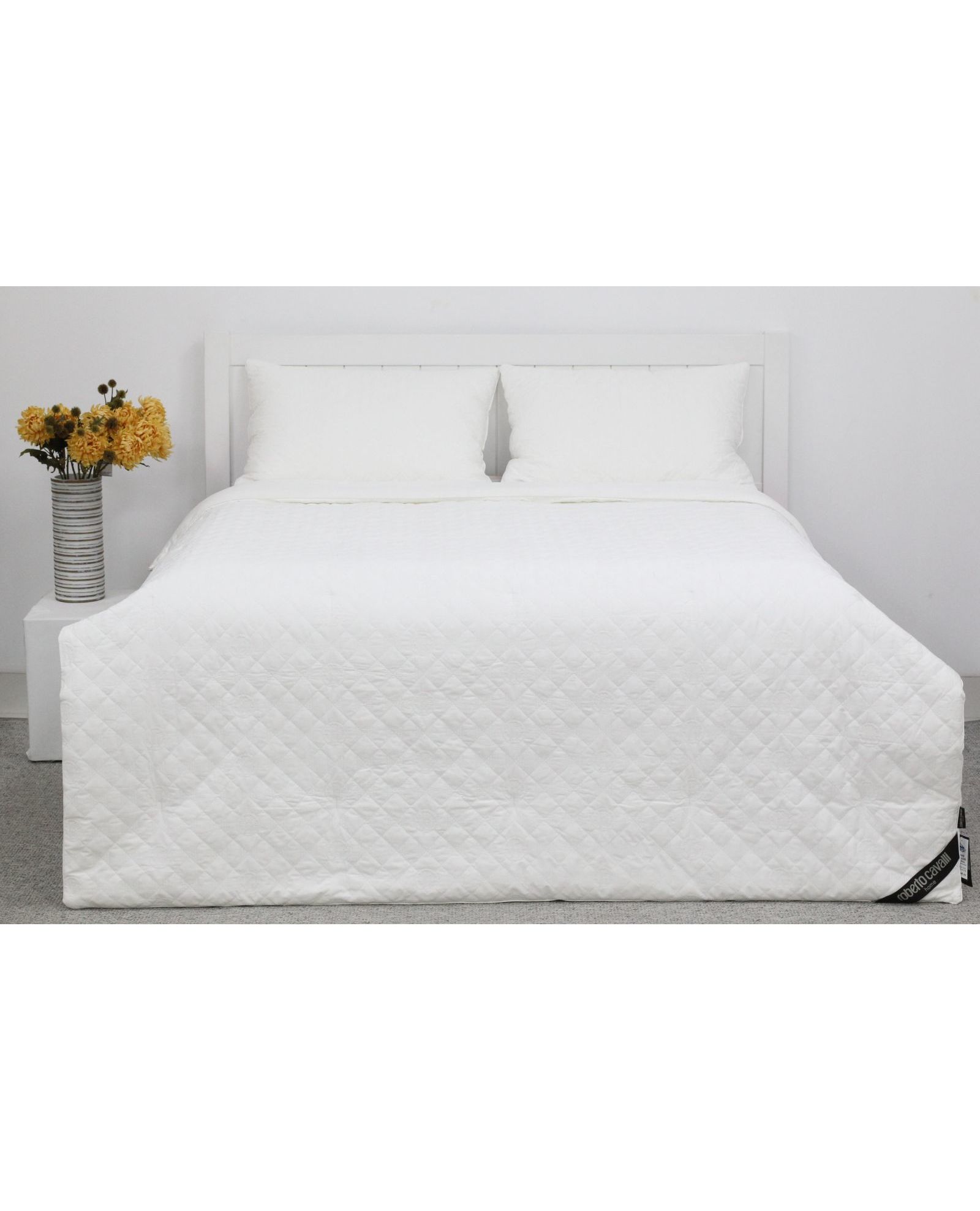 - Элегантный дизайн – стильная стёганая поверхность и вышитый логотип Roberto Сavalli придают одеялу изысканность.