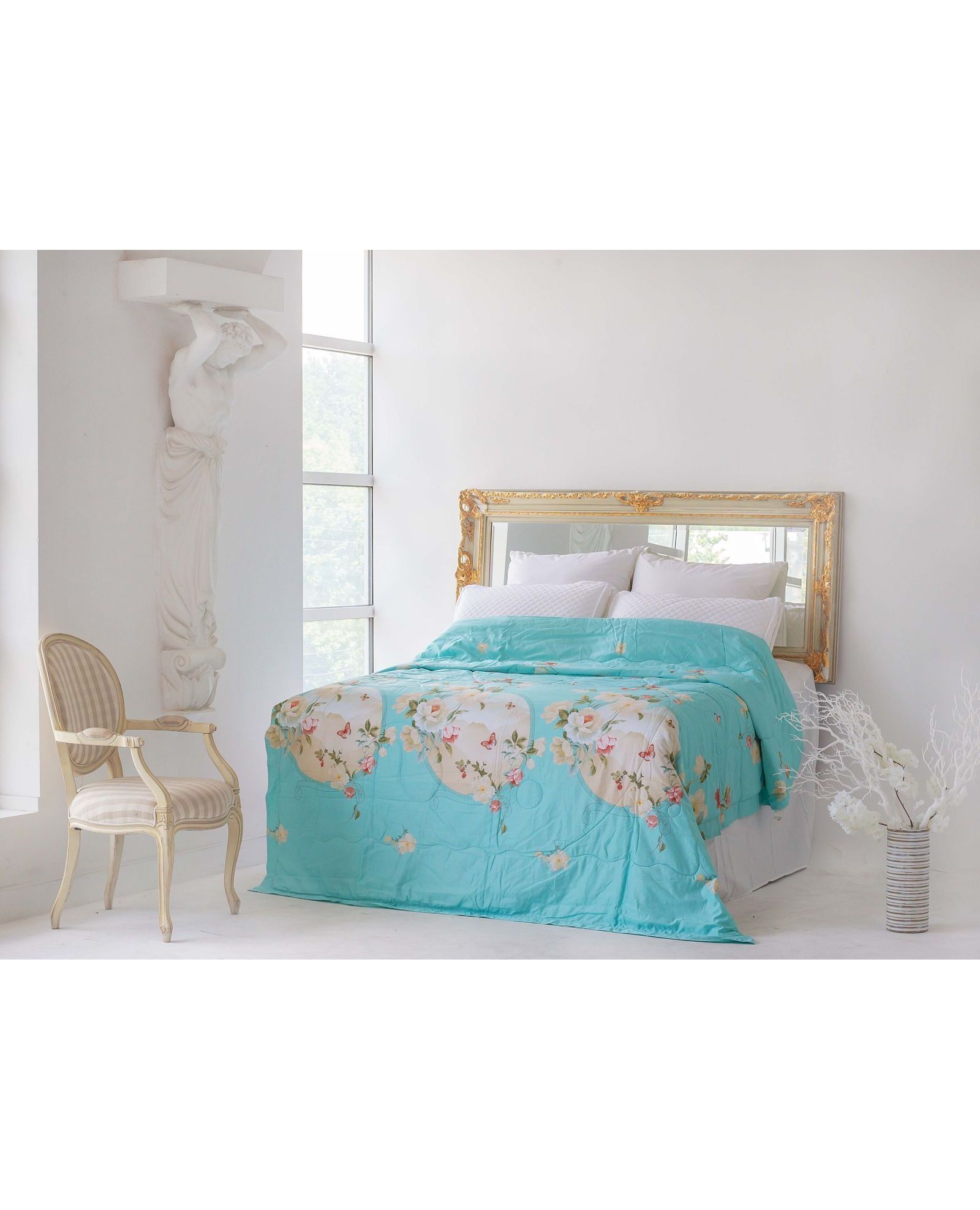 Летнее стёганое одеяло голубого цвета с цветочным принтом 150×200 см – лёгкость и свежесть в жаркие дни