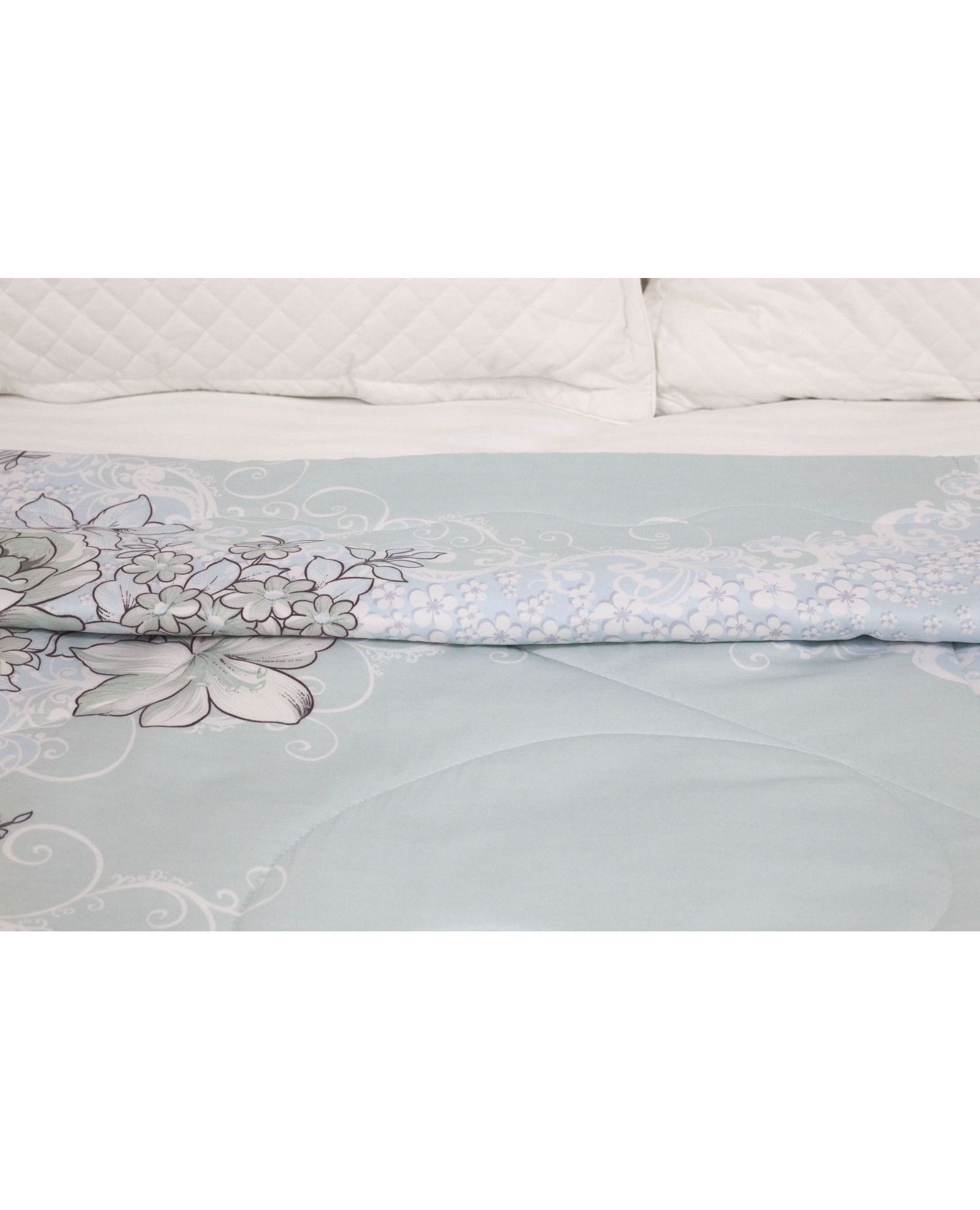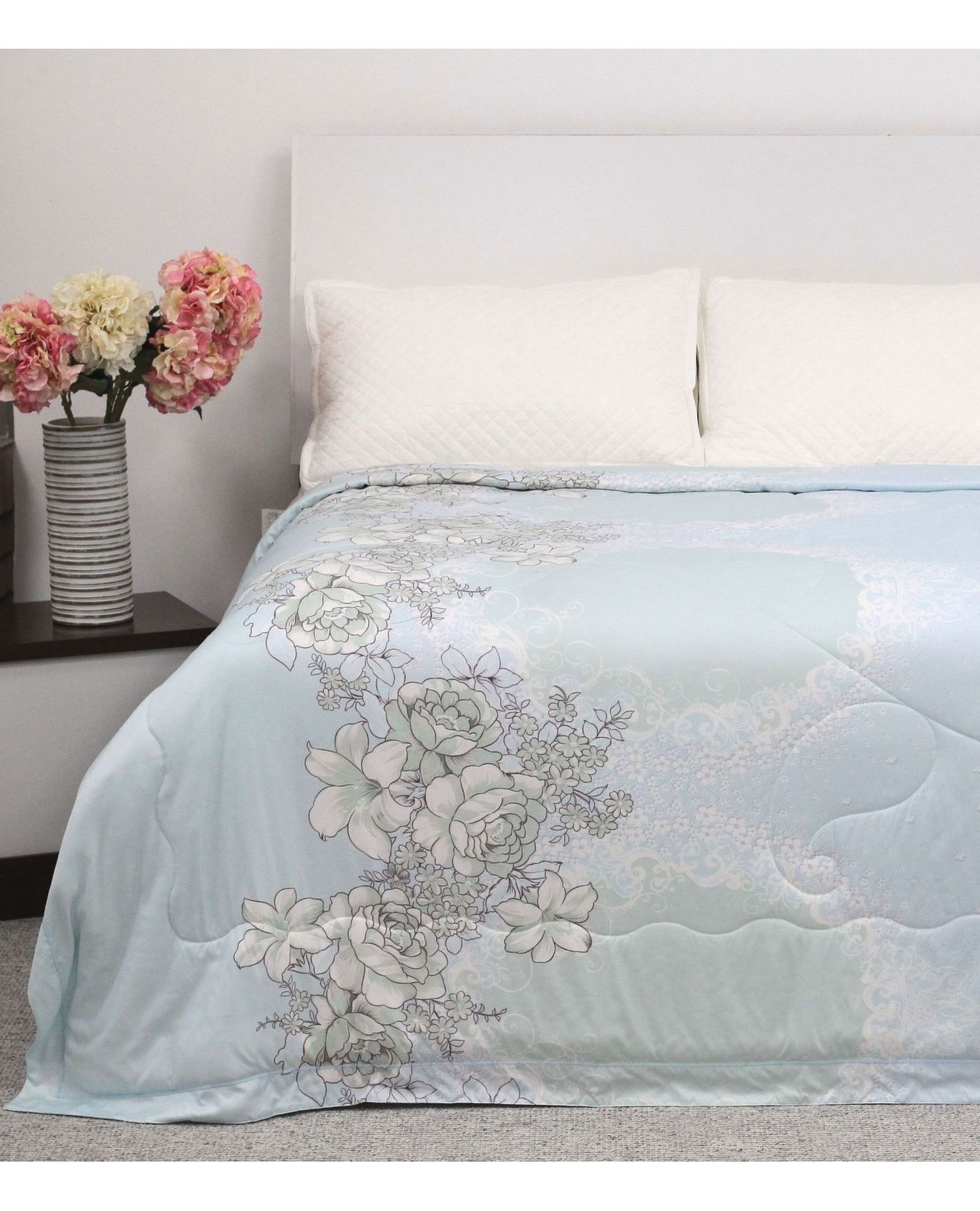 Летнее стёганое одеяло голубовато-белого цвета с цветочным рисунком 150×200 см – нежность и комфорт каждый день