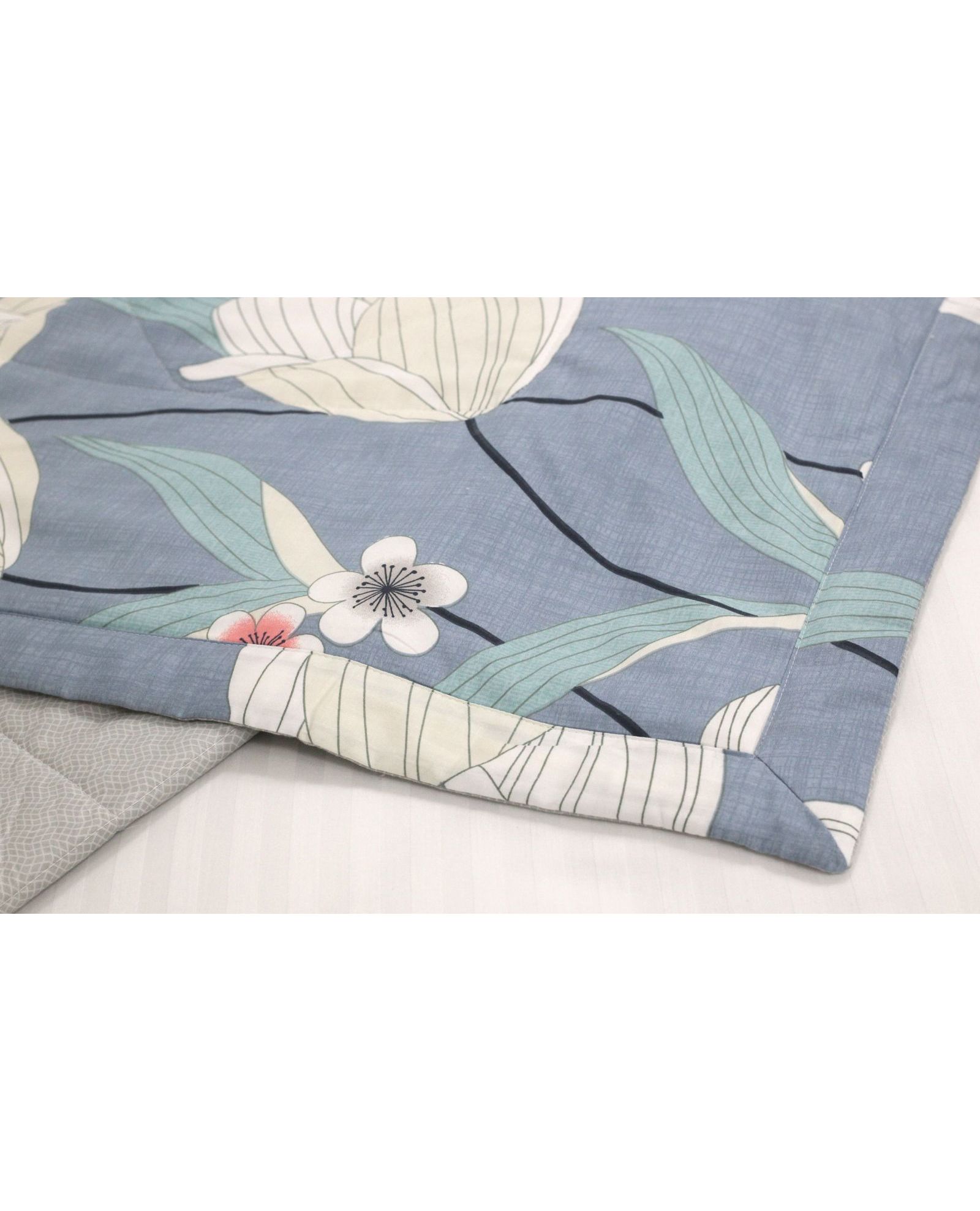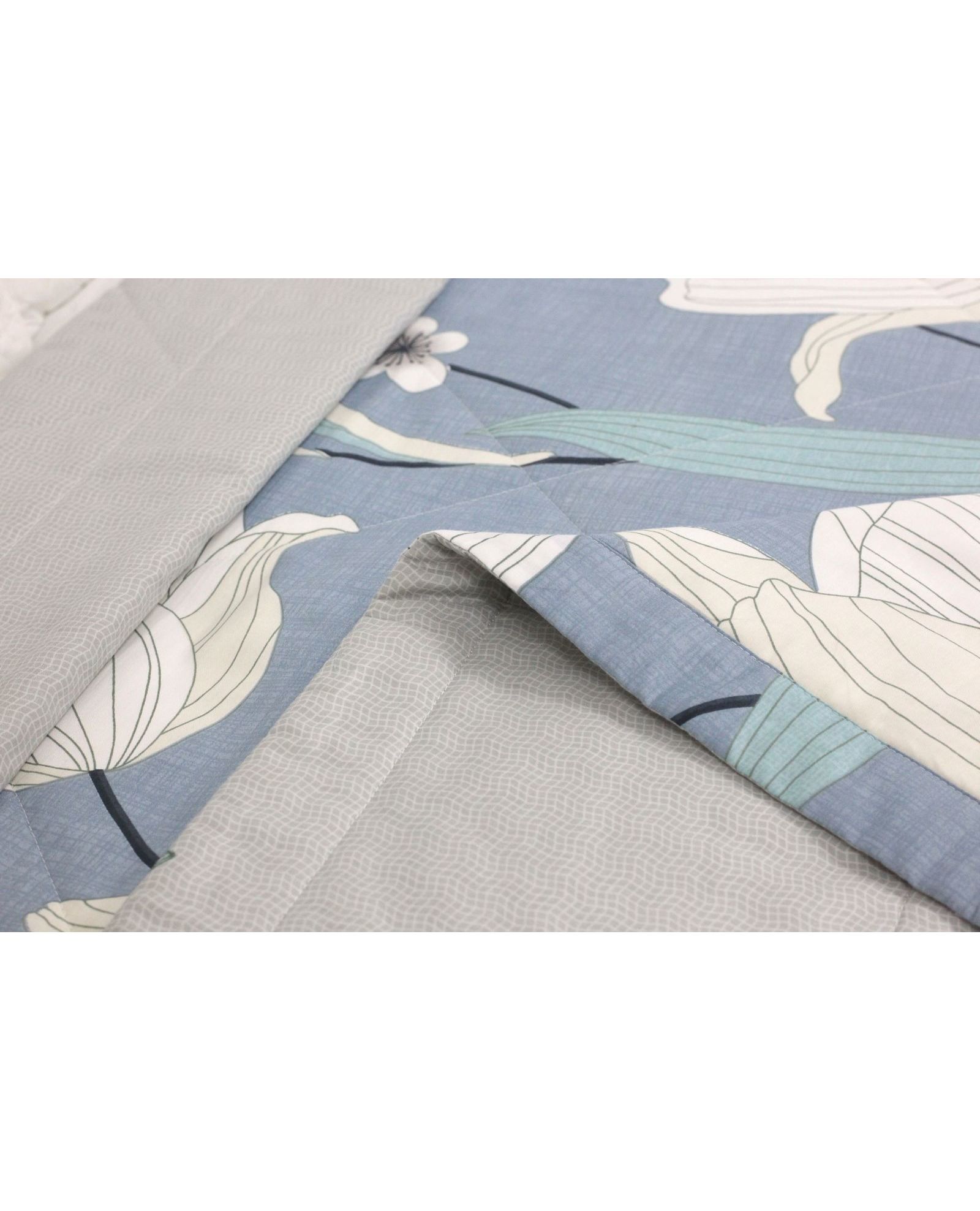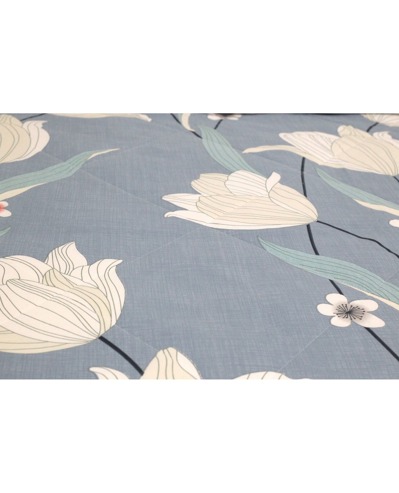 Летнее стёганое одеяло синего цвета с цветочным принтом 150×200 см – прохлада и уют из натурального хлопка