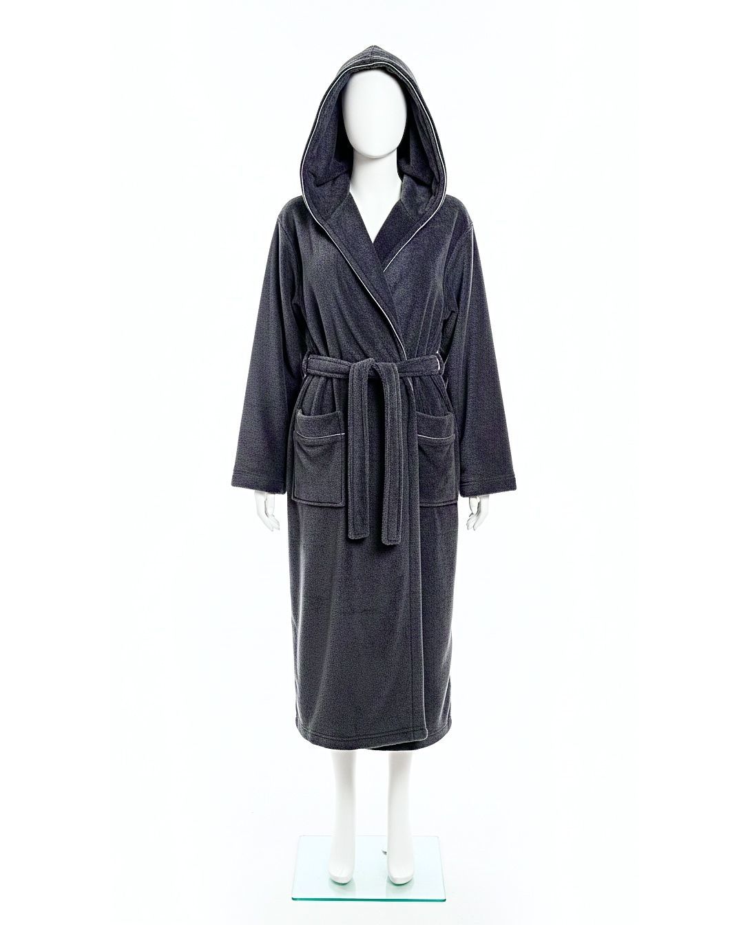 Современный мужской халат, идеально подходящий для отдыха после душа, ванны или сауны. Махровая ткань из хлопка и бамбука мягкая, приятная к телу, отлично впитывает влагу и сохраняет тепло. Капюшон добавляет уюта и делает модель особенно удобной для ежедневного использования.