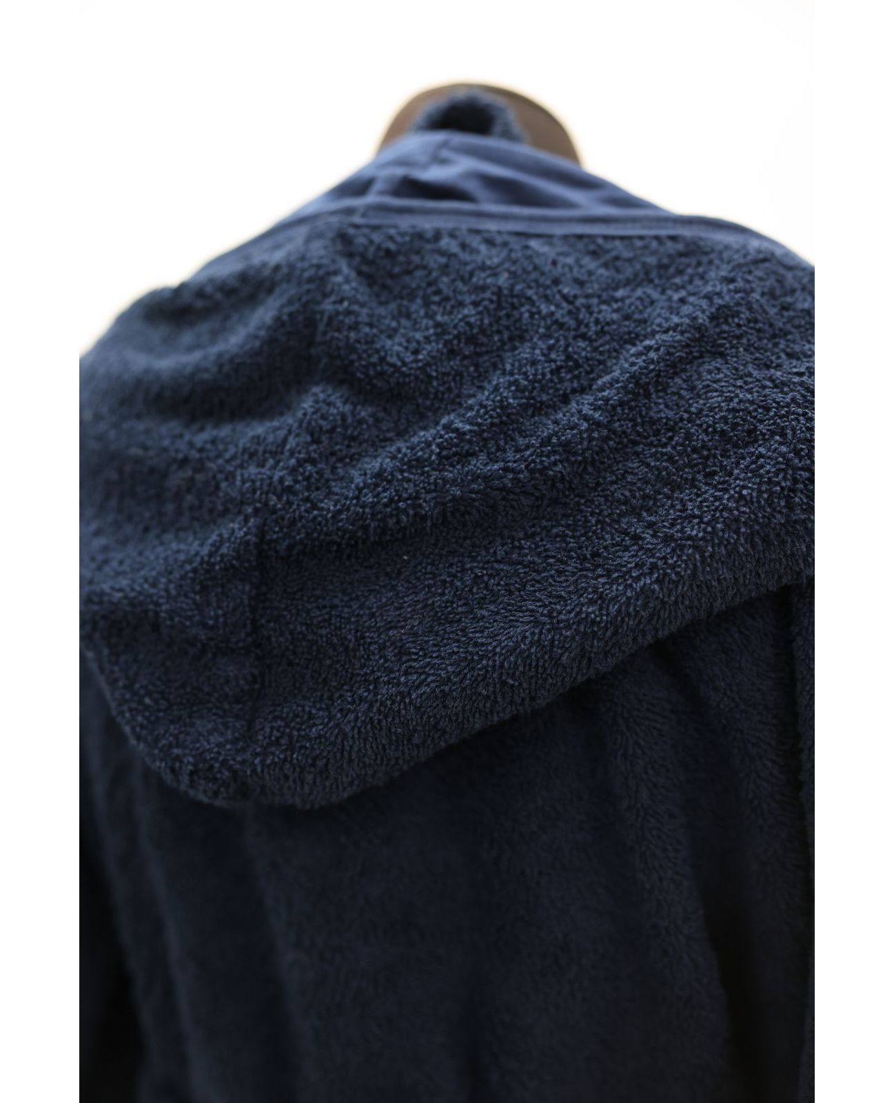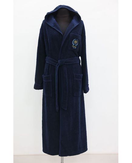 Мужской махровый халат на запах с удобным капюшоном — практичный и комфортный выбор для дома, сауны или отдыха после душа. Изготовлен из мягкой махровой ткани, хорошо впитывает влагу, приятен к телу и сохраняет тепло. Классический синий цвет выглядит стильно и универсально.