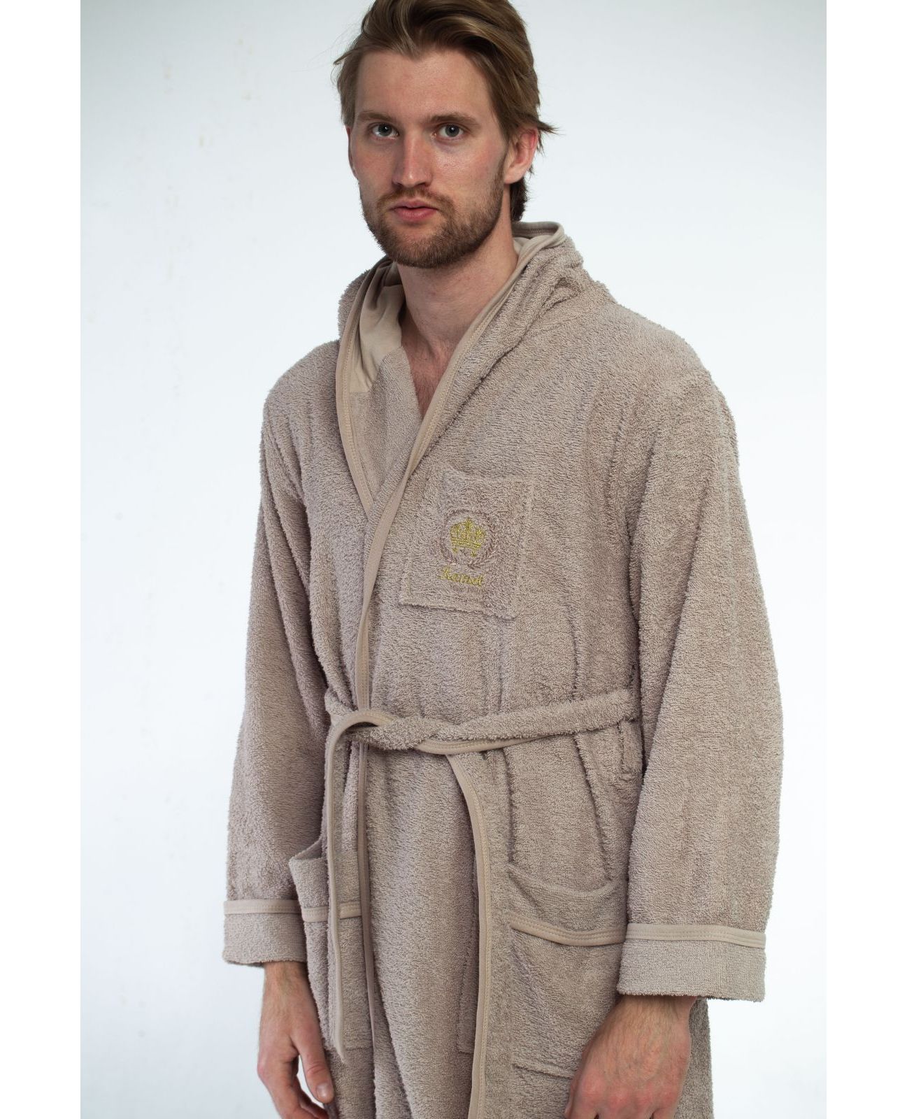 Мужской махровый халат с капюшоном