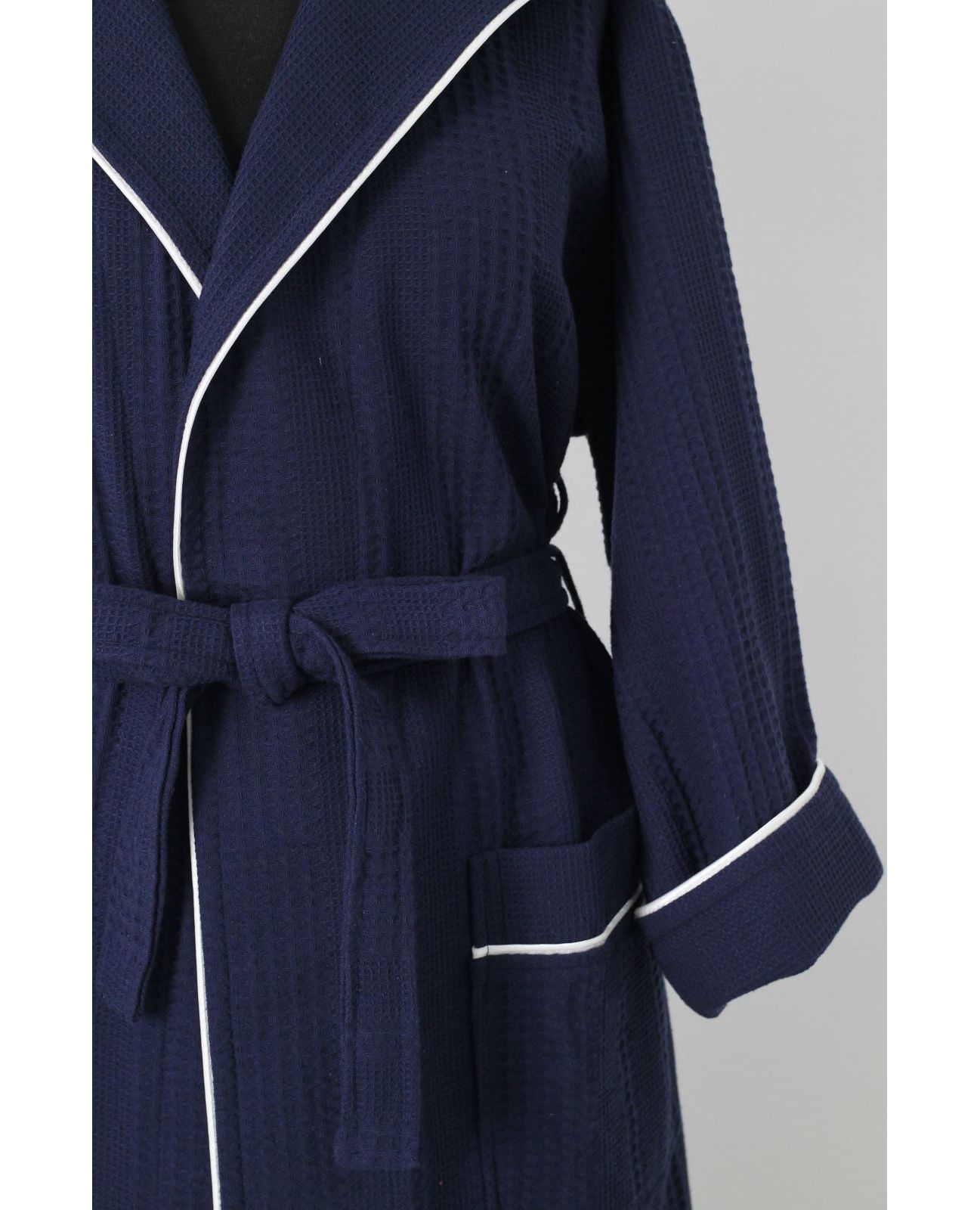 Мужской вафельный халат на запах в насыщенном синем цвете сочетает комфорт и стиль для ежедневного домашнего использования. Изготовлен из 100% натурального хлопка, дышащий, мягкий и отлично впитывает влагу. Идеально подходит после душа, ванны или для утреннего отдыха.