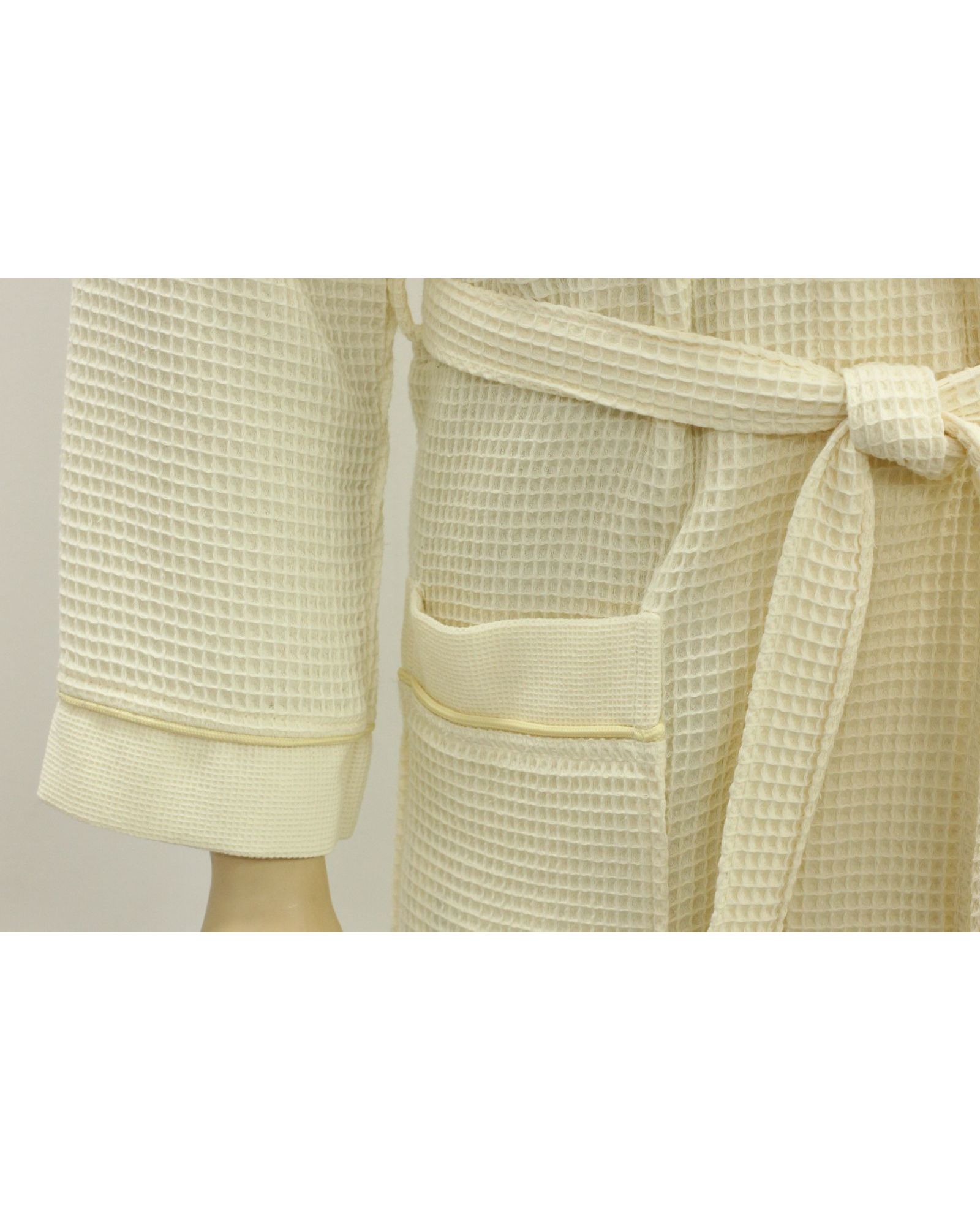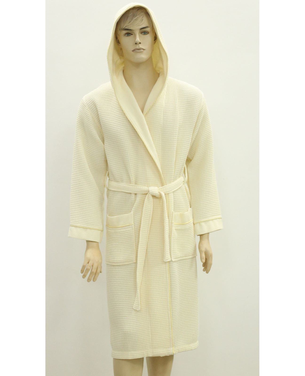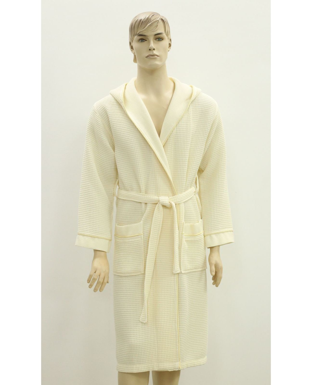 Мужской вафельный халат на запах в нежном молочном цвете дарит ощущение комфорта и лёгкости. Благодаря сочетанию хлопка и бамбука материал мягкий, дышащий и отлично впитывает влагу. Халат прекрасно подойдёт для домашнего использования, после душа, ванны или сауны.