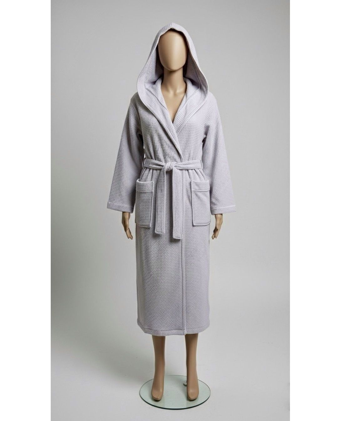Вафельный халат с махровой подкладкой, светло-серый