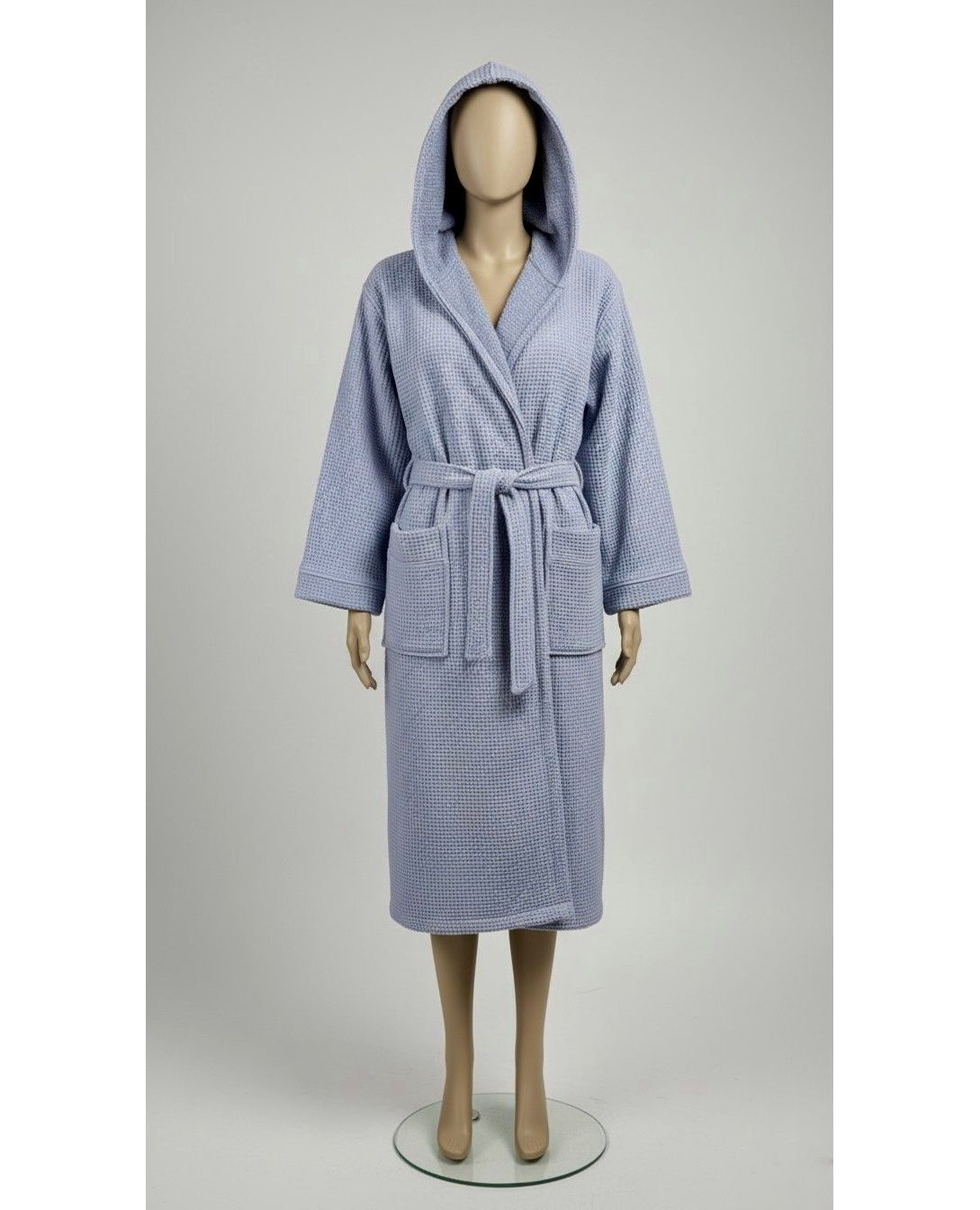 Элегантный халат сочетает вафельную текстуру снаружи и мягкую махровую ткань внутри, обеспечивая комфорт и уют после душа или ванны. Натуральный хлопок прекрасно впитывает влагу и приятен к телу.