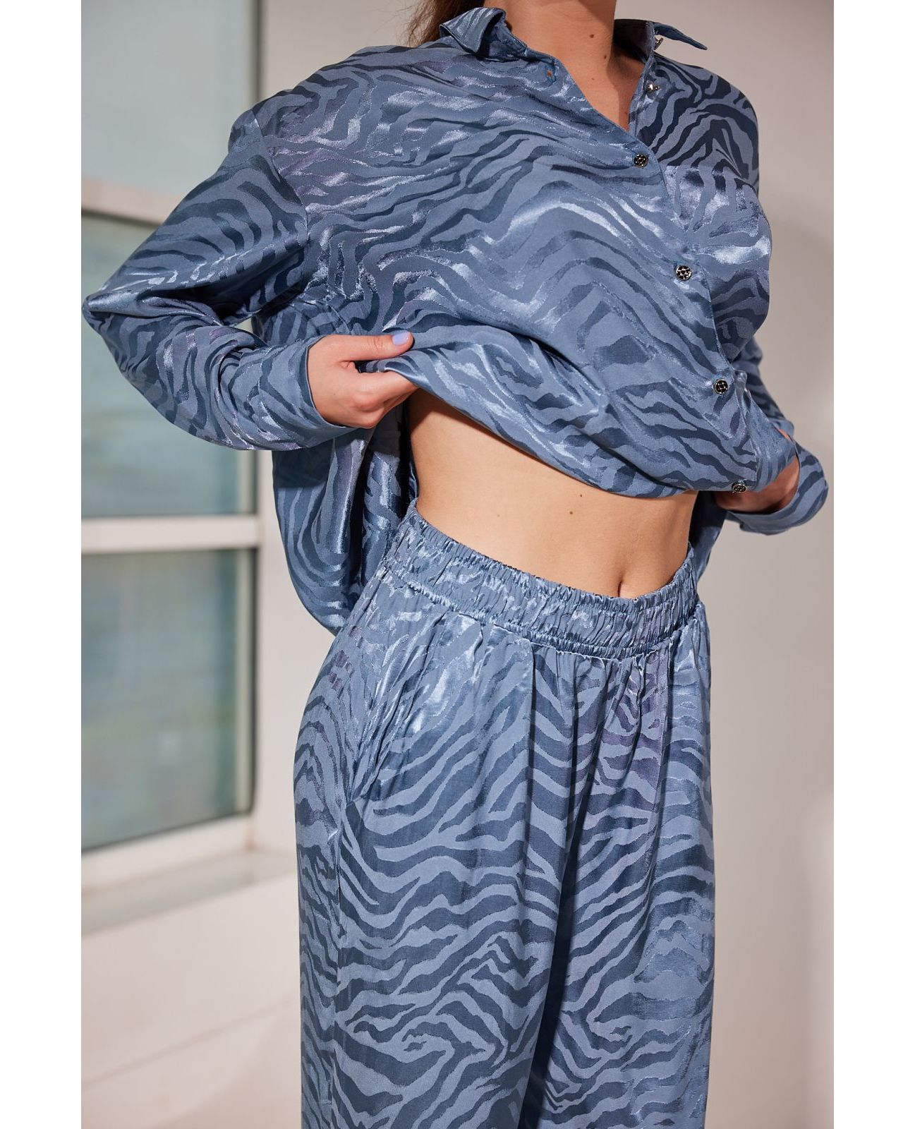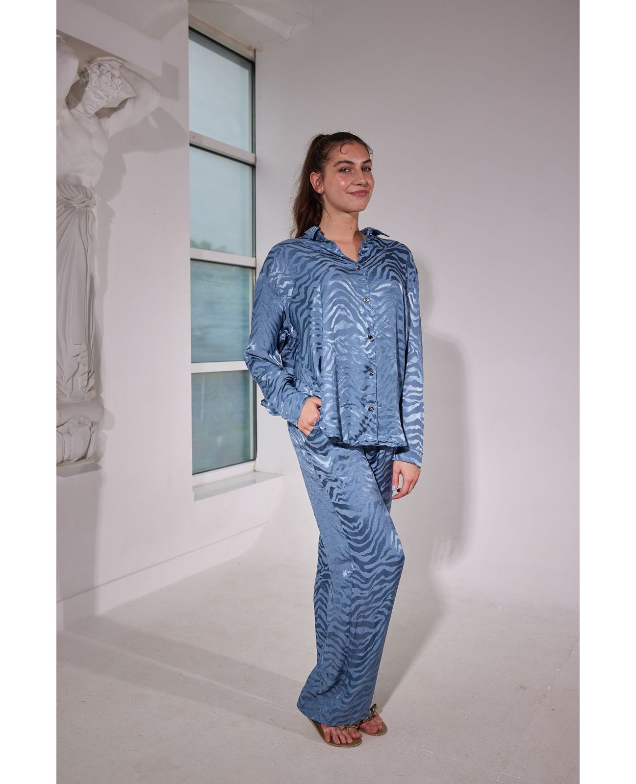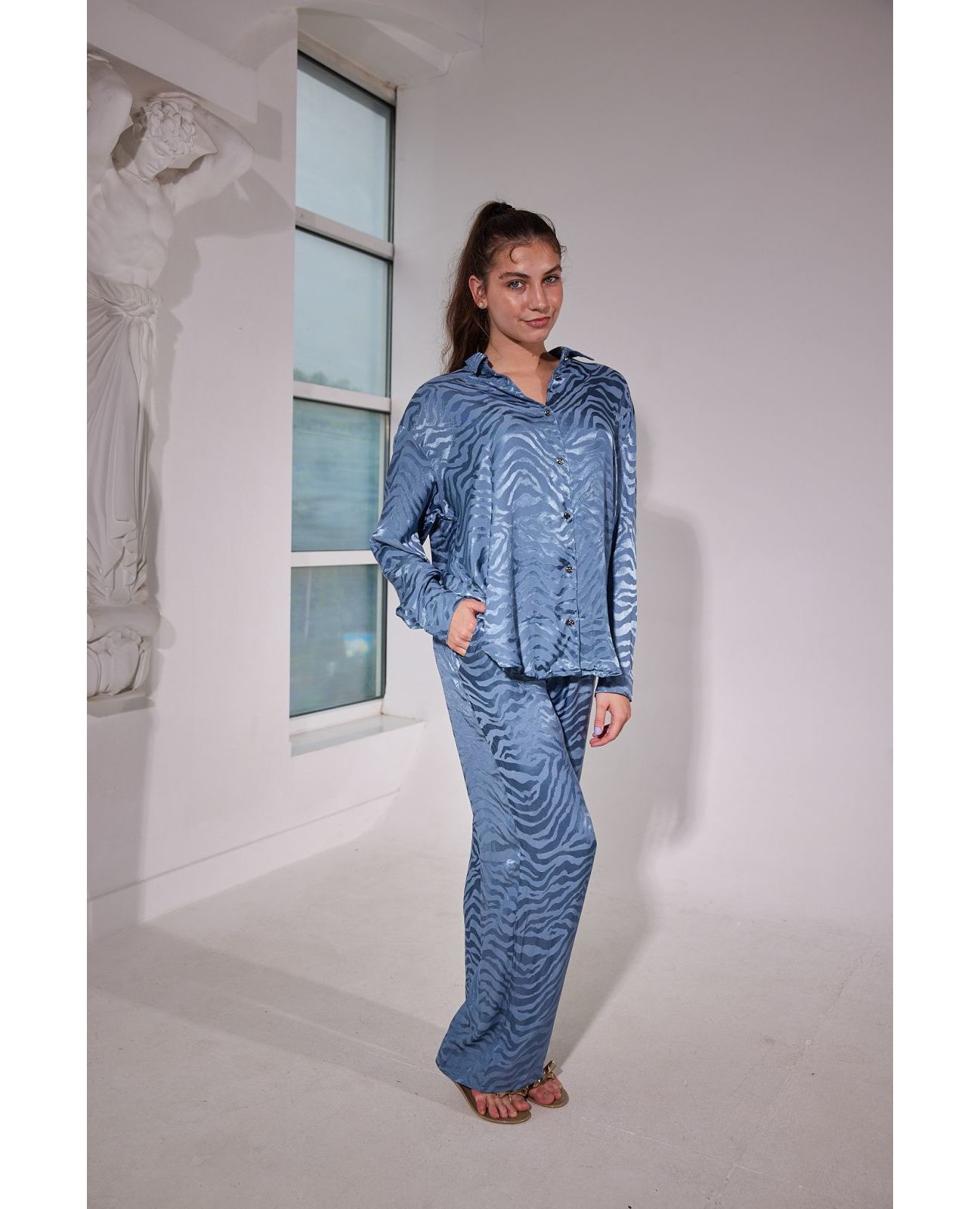 Рубашка+штаны.Рубашка на пуговицах, длинный рукав, с манжетами. Штаны на резинке, 2 кармана, цвет синий