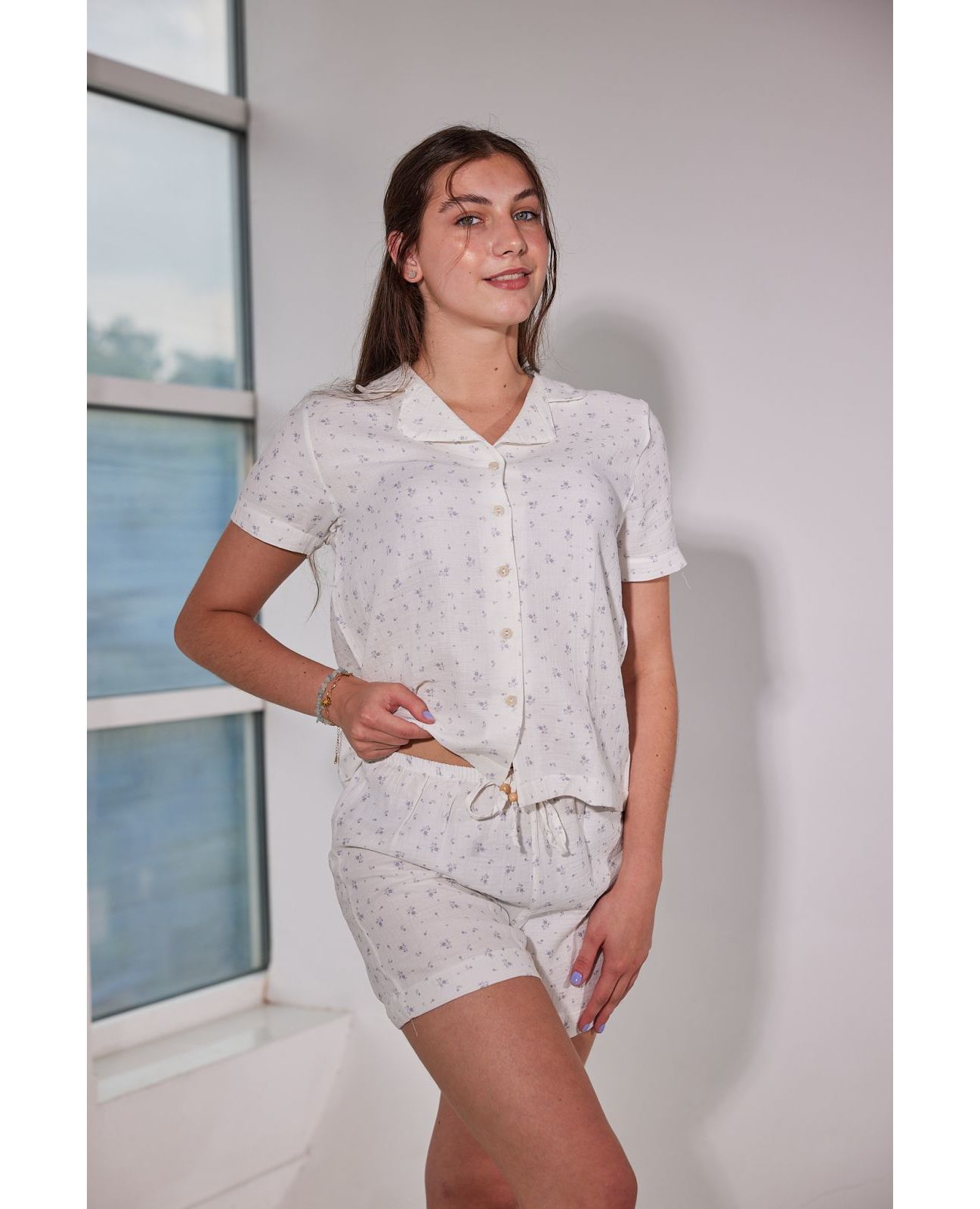 Рубашка + шорты. Рубашка на пуговицах, шорты на резинке. Без карманов 100% хлопок. Цвет белый с мелкими серыми цветочками..