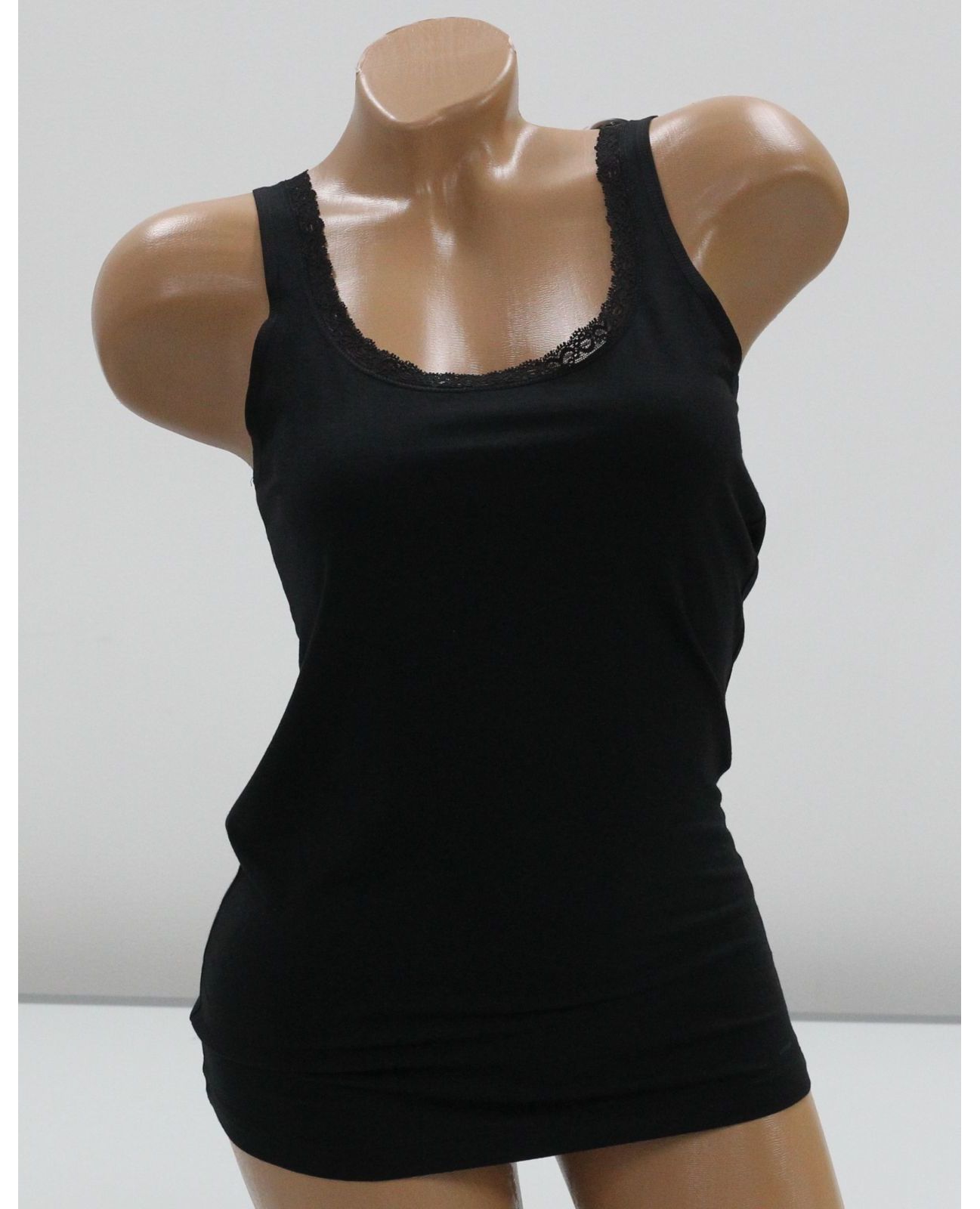 Элегантная женская майка, сочетающая комфорт и стиль. Благодаря сочетанию модала и хлопка ткань мягкая, дышащая и приятная к телу. Кружево придаёт изделию нежность и женственность.