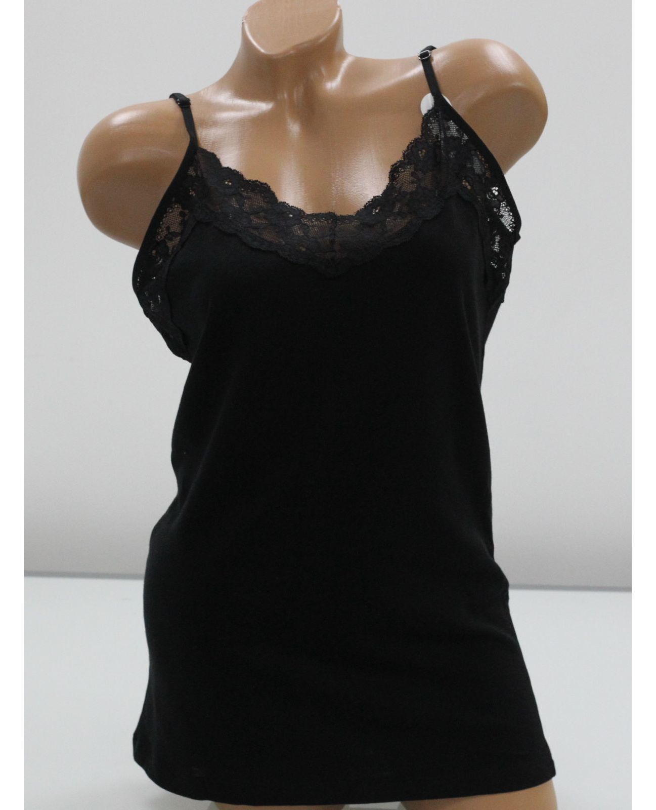 Женская майка на тонких бретелях, представлена в белом и чёрном цветах с изящным кружевом. Элегантная и удобная модель для повседневного использования, подходит как самостоятельный элемент одежды или в качестве базовой вещи. Натуральный хлопок с добавлением эластана обеспечивает мягкость, комфорт и хорошую посадку.
