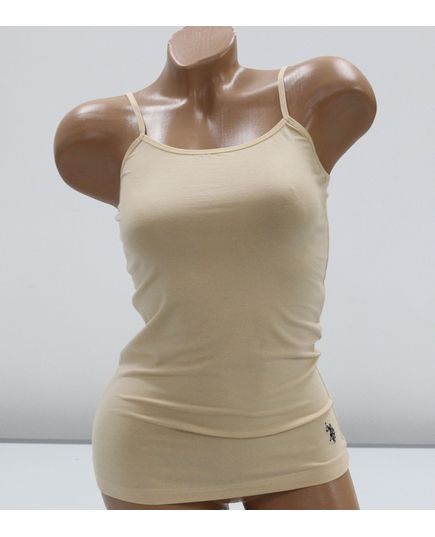 Женская майка на тонких бретелях в нежном бежевом цвете. Элегантная и удобная модель, отлично подходит для повседневной носки или в качестве базового элемента гардероба. Сочетание хлопка и модала обеспечивает мягкость, лёгкость и хорошую воздухопроницаемость, а эластан гарантирует эластичность и комфортную посадку.