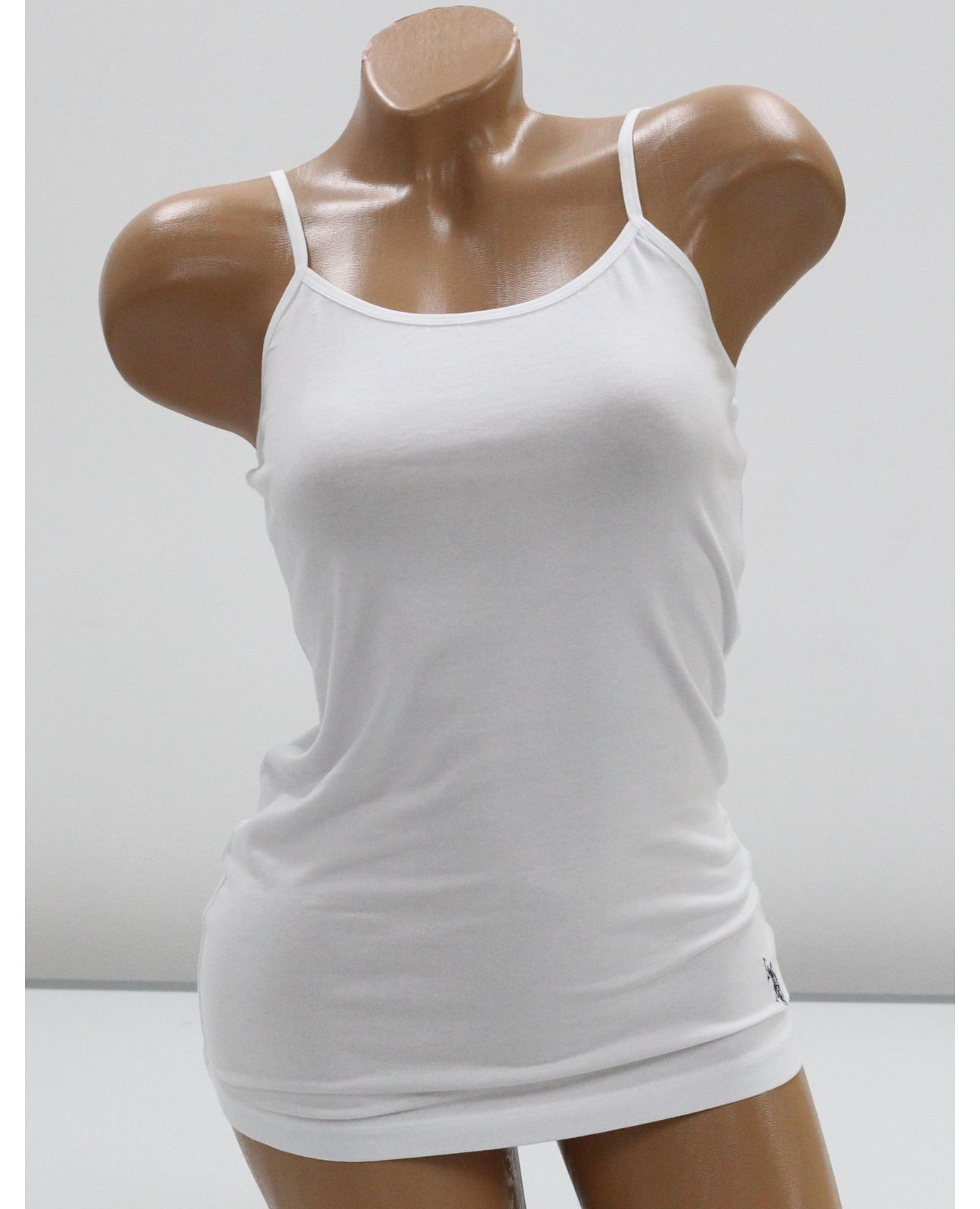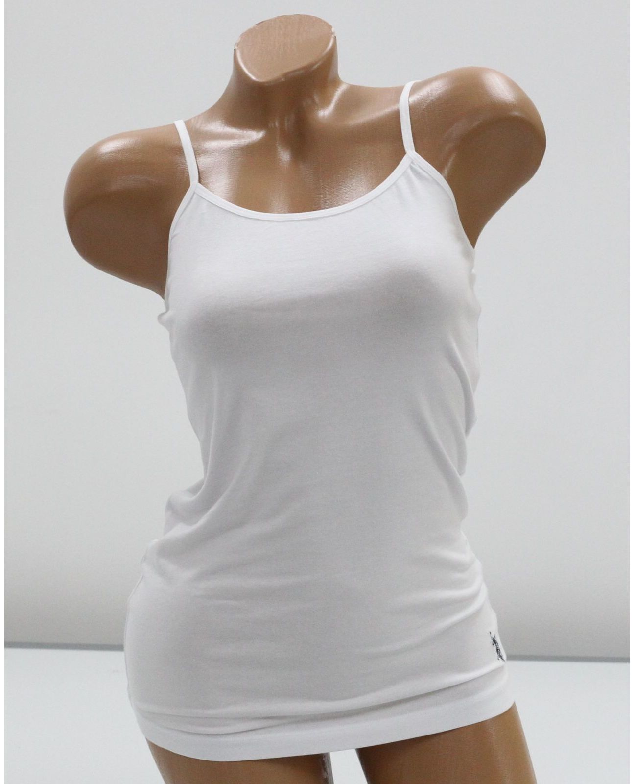 Женская майка на тонких бретелях в классическом белом цвете. Стильная и комфортная модель, отлично подходит для повседневной носки, занятий спортом или в качестве базового элемента гардероба. Сочетание хлопка и модала обеспечивает мягкость и хорошую воздухопроницаемость, а эластан — эластичность и удобную посадку.