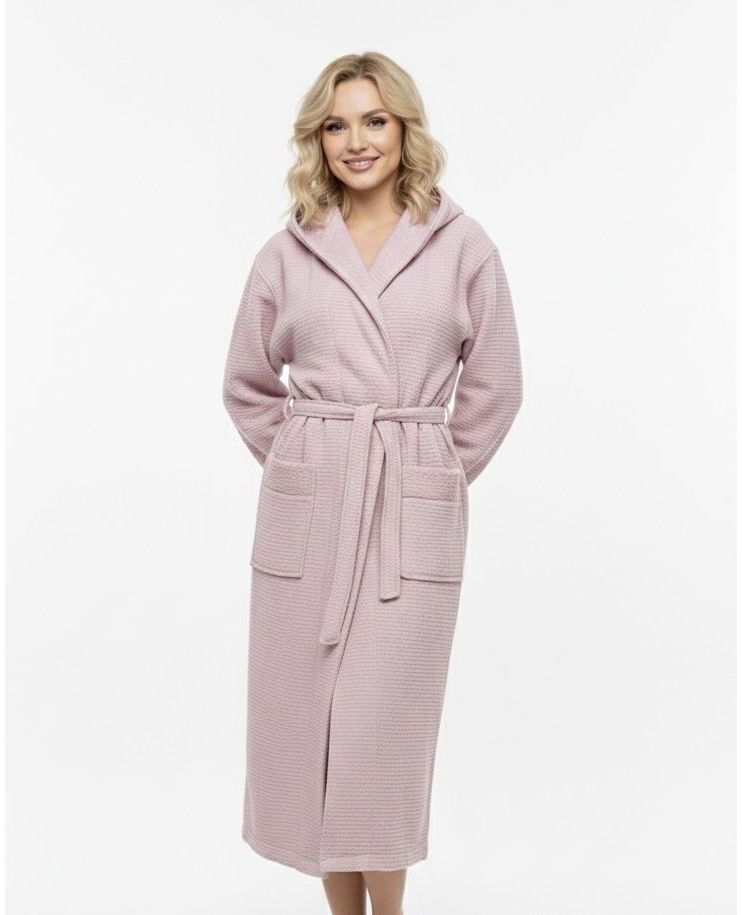 Элегантный халат сочетает вафельную текстуру снаружи и мягкую махровую ткань внутри, обеспечивая комфорт и уют после душа или ванны. Натуральный хлопок прекрасно впитывает влагу и приятен к телу.