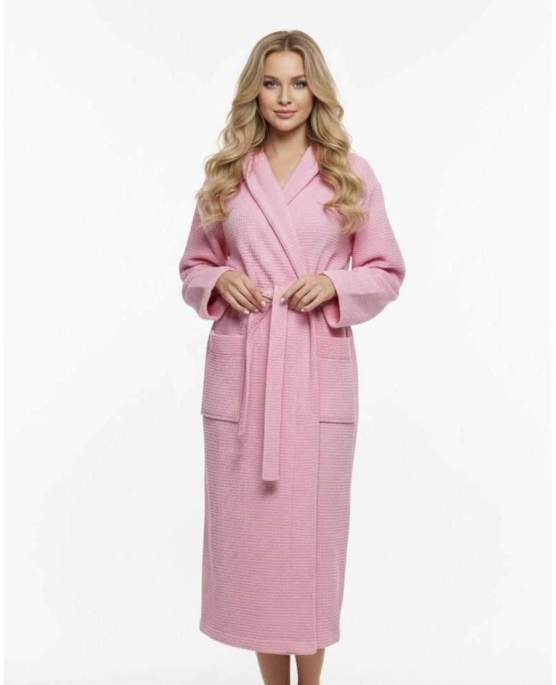Элегантный халат сочетает вафельную текстуру снаружи и мягкую махровую ткань внутри, обеспечивая комфорт и уют после душа или ванны. Натуральный хлопок прекрасно впитывает влагу и приятен к телу.