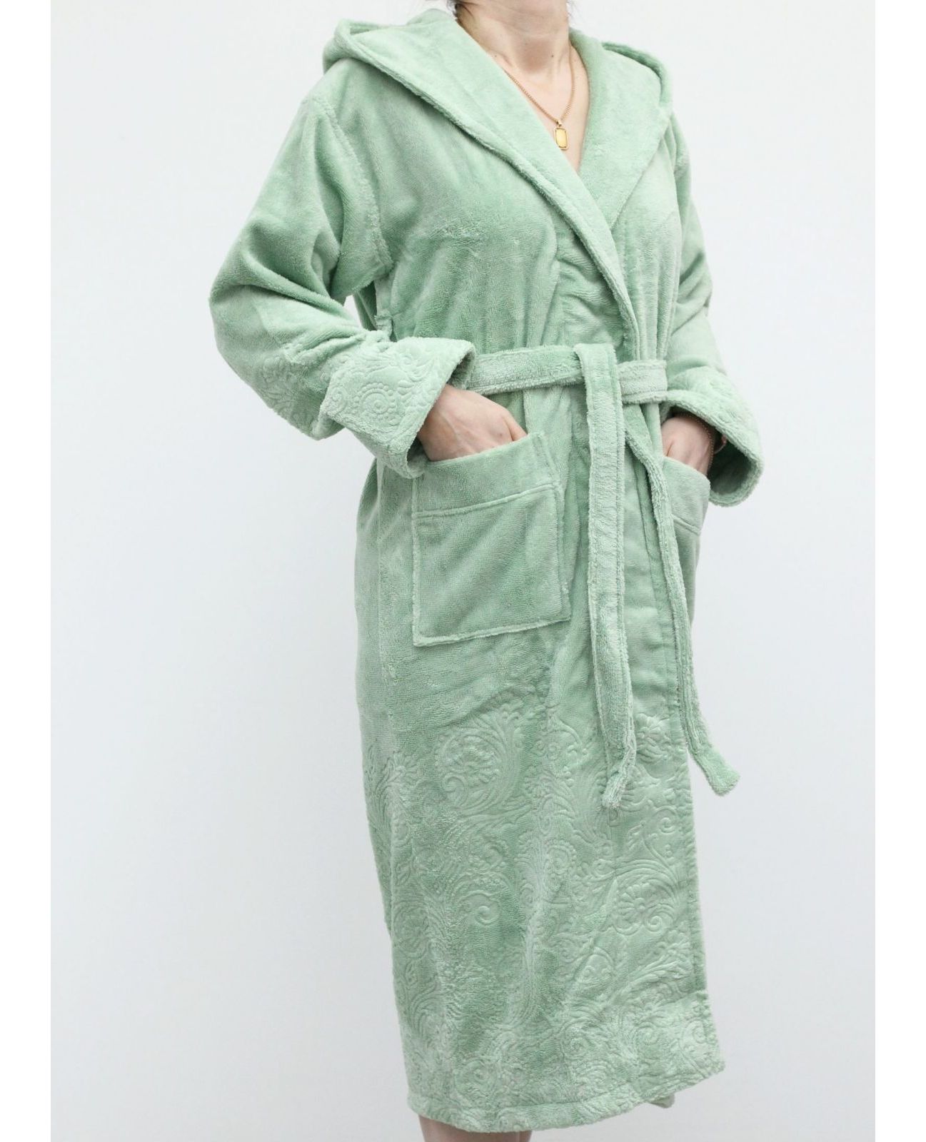 Женский махровый халат с капюшоном на запах — удобный и практичный вариант для дома. Изготовлен из 100% хлопка, халат мягкий, приятный к телу и хорошо впитывает влагу. Фасон на запах удобно сидит по фигуре, а капюшон добавляет тепла и уюта. Яркий салатовый цвет делает халат свежим и стильным.