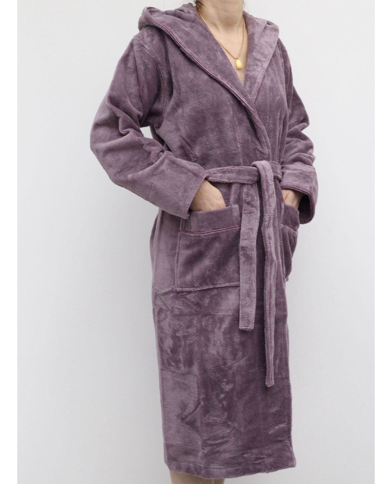 Женский махровый халат с капюшоном на запах — удобный и комфортный вариант для дома. Изготовлен из смеси бамбука и хлопка (70% бамбук, 30% хлопок), халат мягкий, приятный к телу, хорошо впитывает влагу и быстро сохнет. Фасон на запах удобно сидит по фигуре, а капюшон добавляет тепла и уюта. Нежный цвет сирени придаёт изделию изысканный и стильный внешний вид.