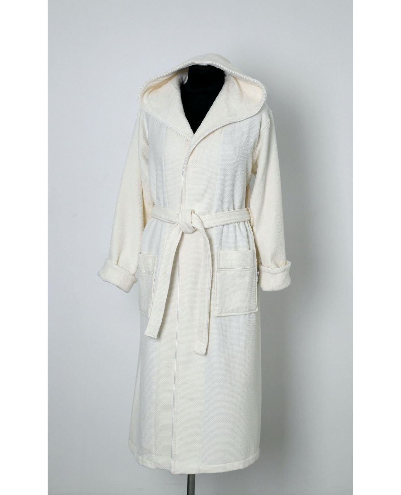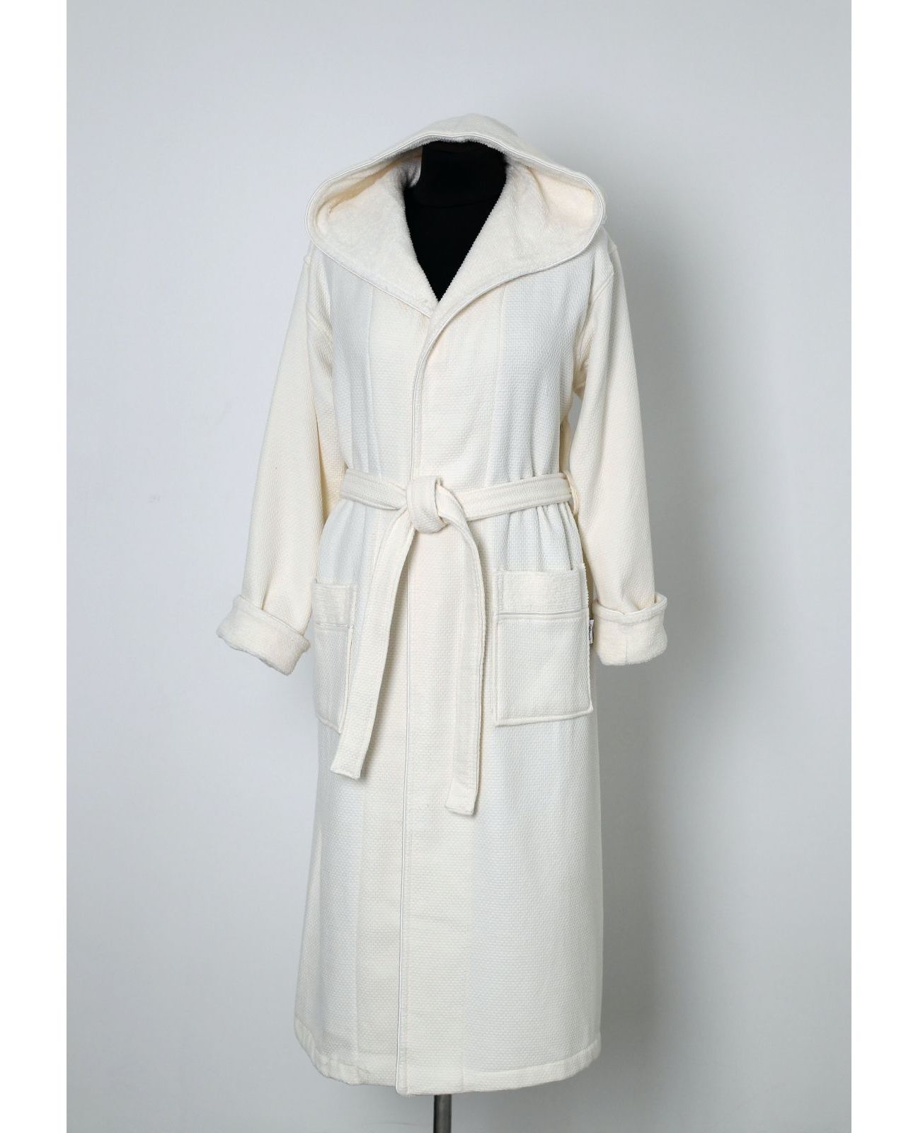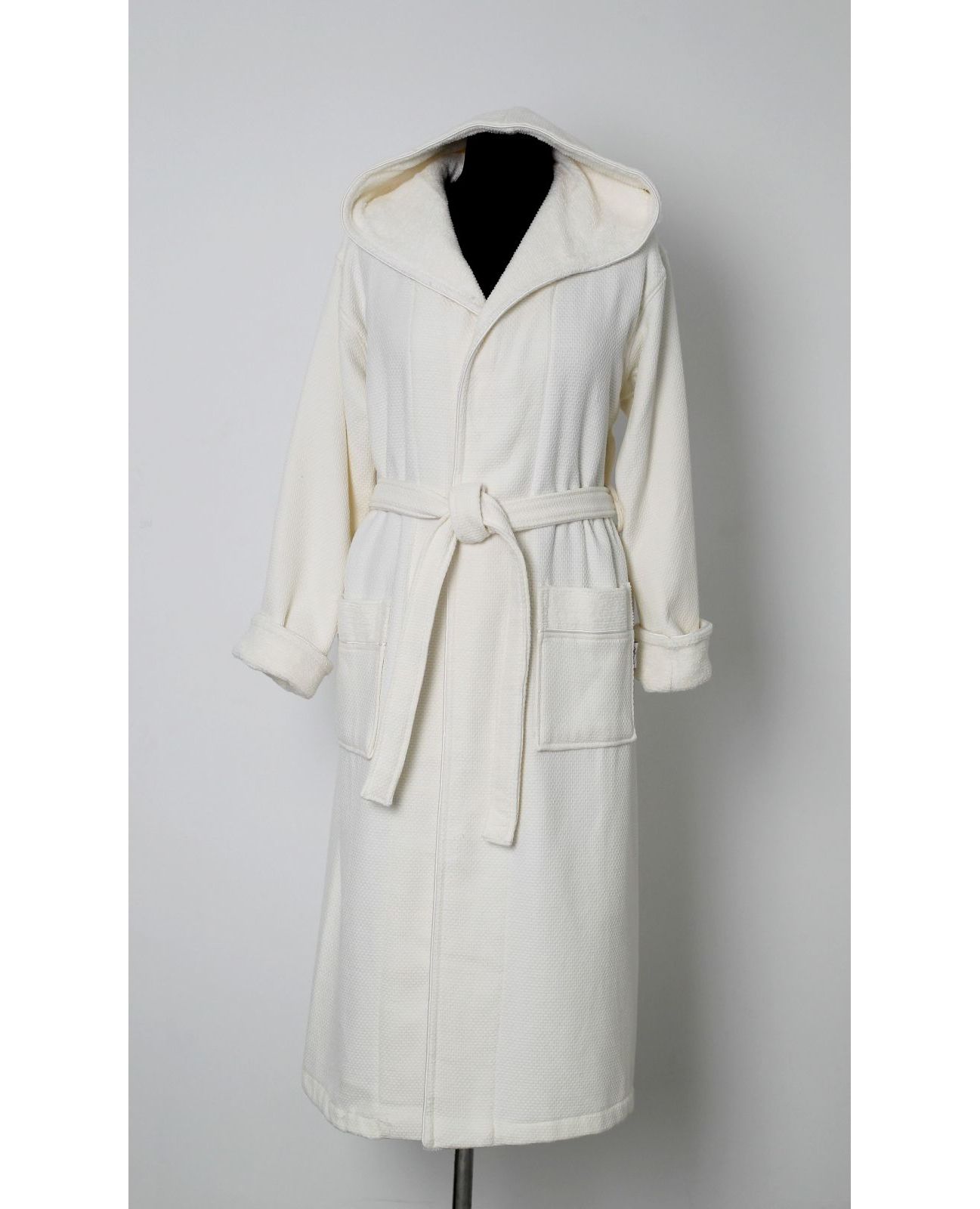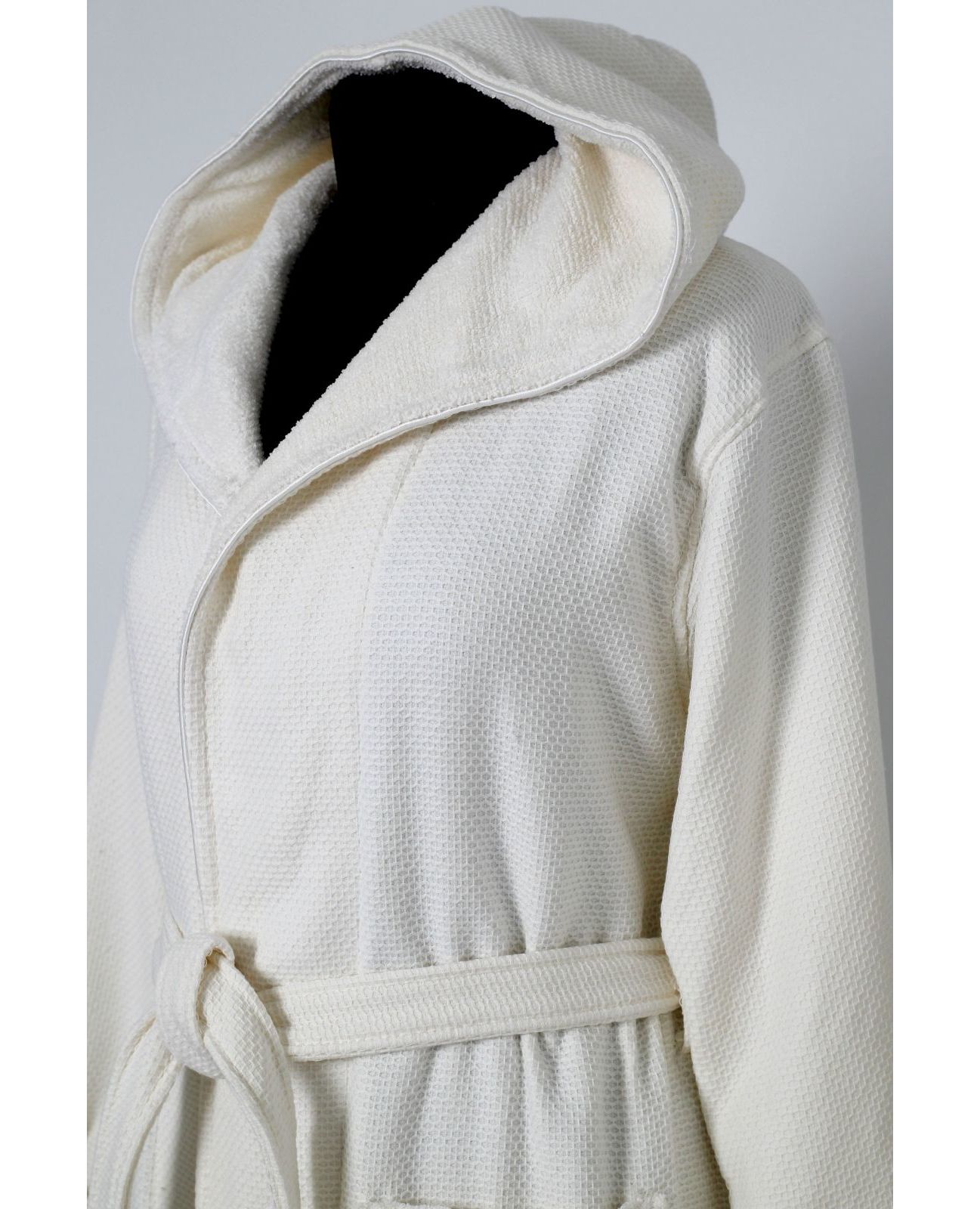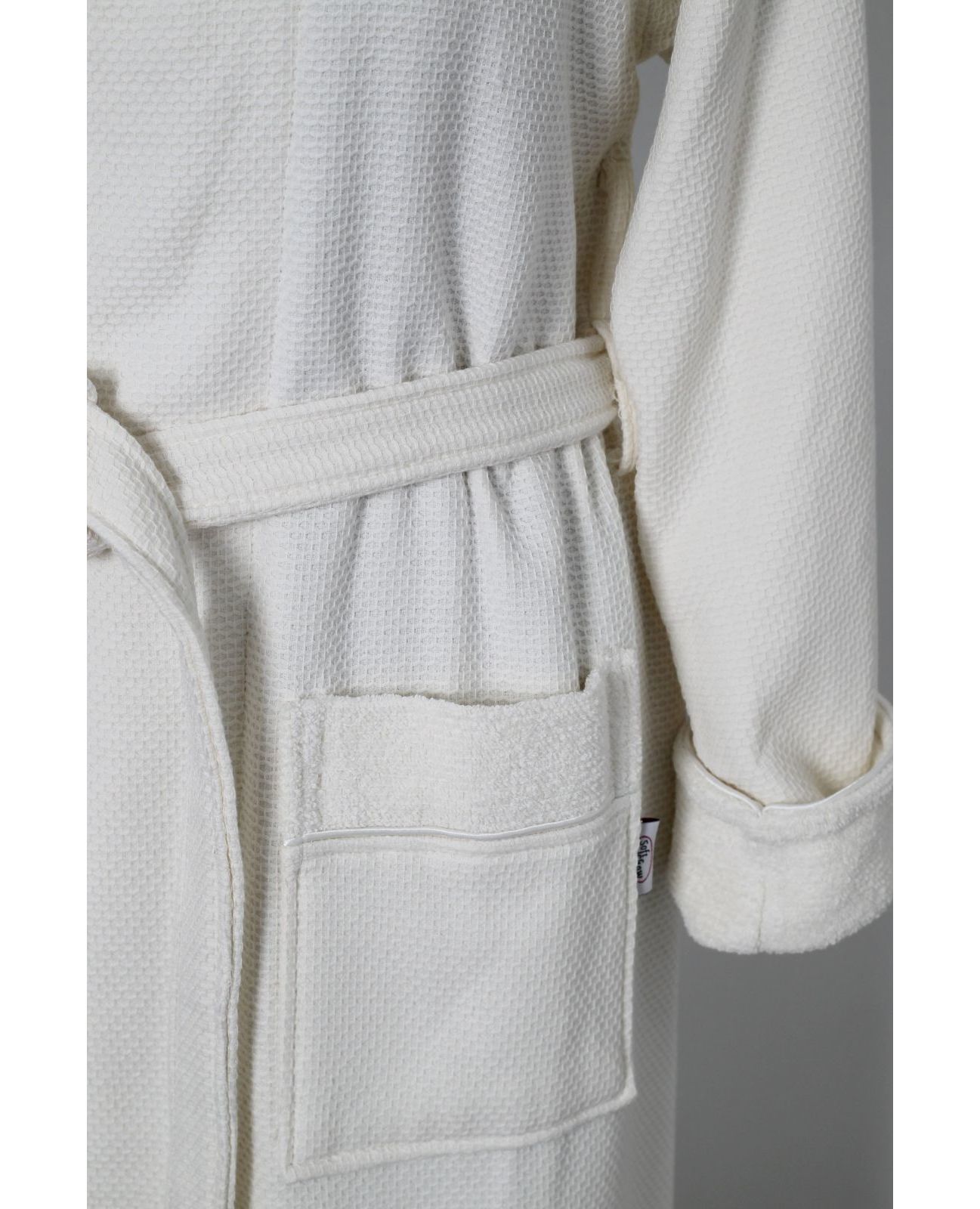 Элегантный халат сочетает вафельную текстуру снаружи и мягкую махровую ткань внутри, обеспечивая комфорт и уют после душа или ванны. Натуральный хлопок прекрасно впитывает влагу и приятен к телу.
