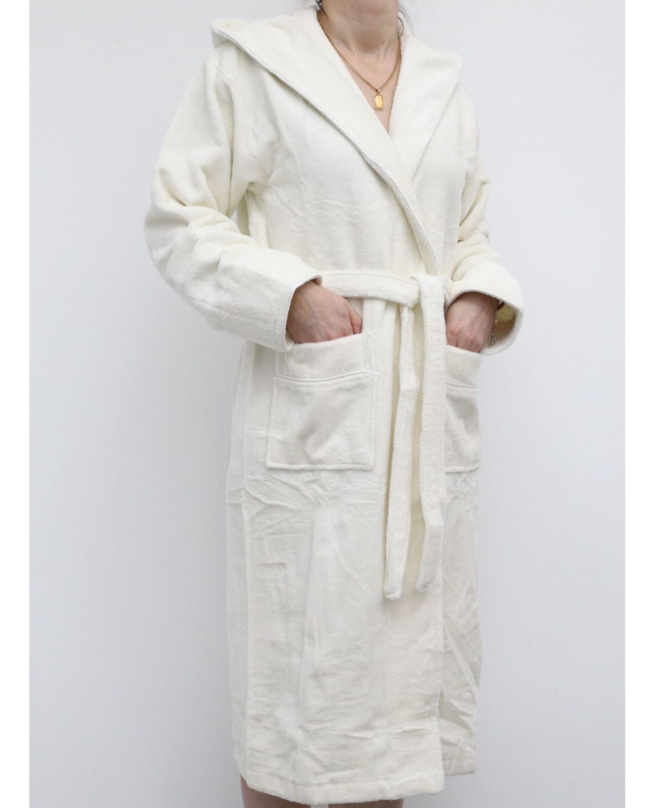 Женский махровый халат на запах с капюшоном — элегантный и практичный вариант для дома. Мягкий и нежный к телу, отлично впитывает влагу и сохраняет тепло после душа или ванны. Капюшон добавляет удобства, а молочный цвет смотрится стильно, аккуратно и уютно.