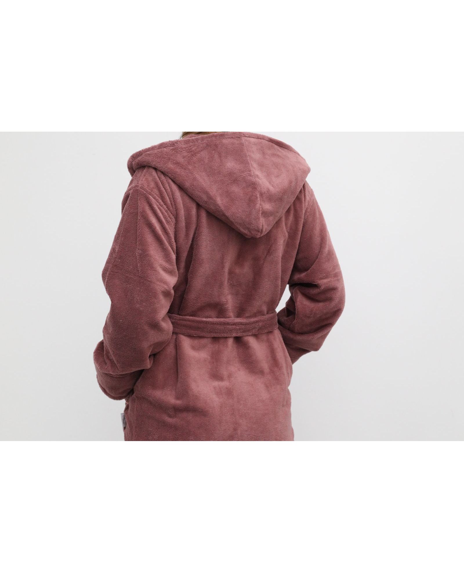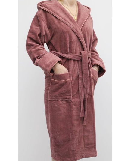 Женский махровый халат на запах с капюшоном
