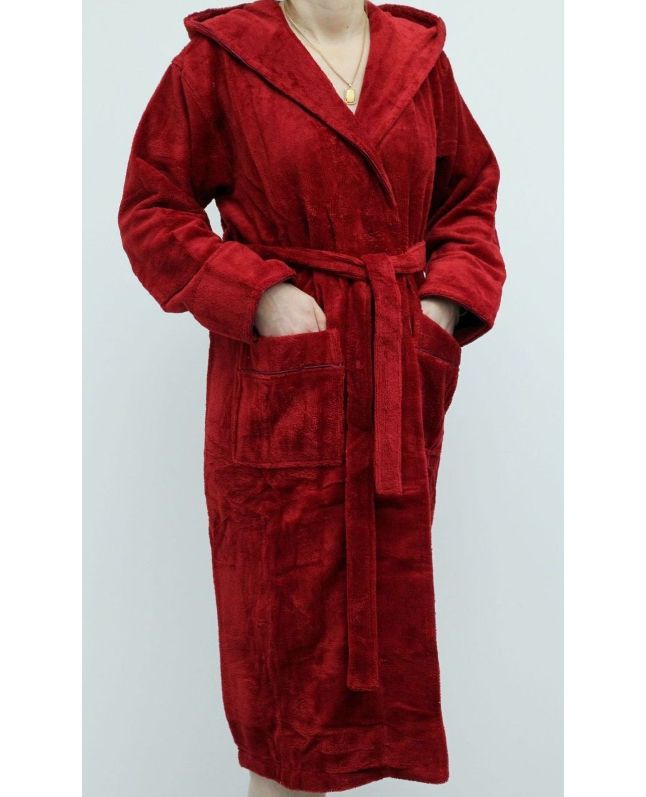 Женский махровый халат на запах с капюшоном — отличный вариант для домашнего уюта и комфорта. Мягкий и приятный к телу, хорошо впитывает влагу и сохраняет тепло после душа или ванны. Капюшон делает халат особенно удобным в прохладное время года. Насыщенный бордовый цвет придаёт изделию стильный и элегантный вид.