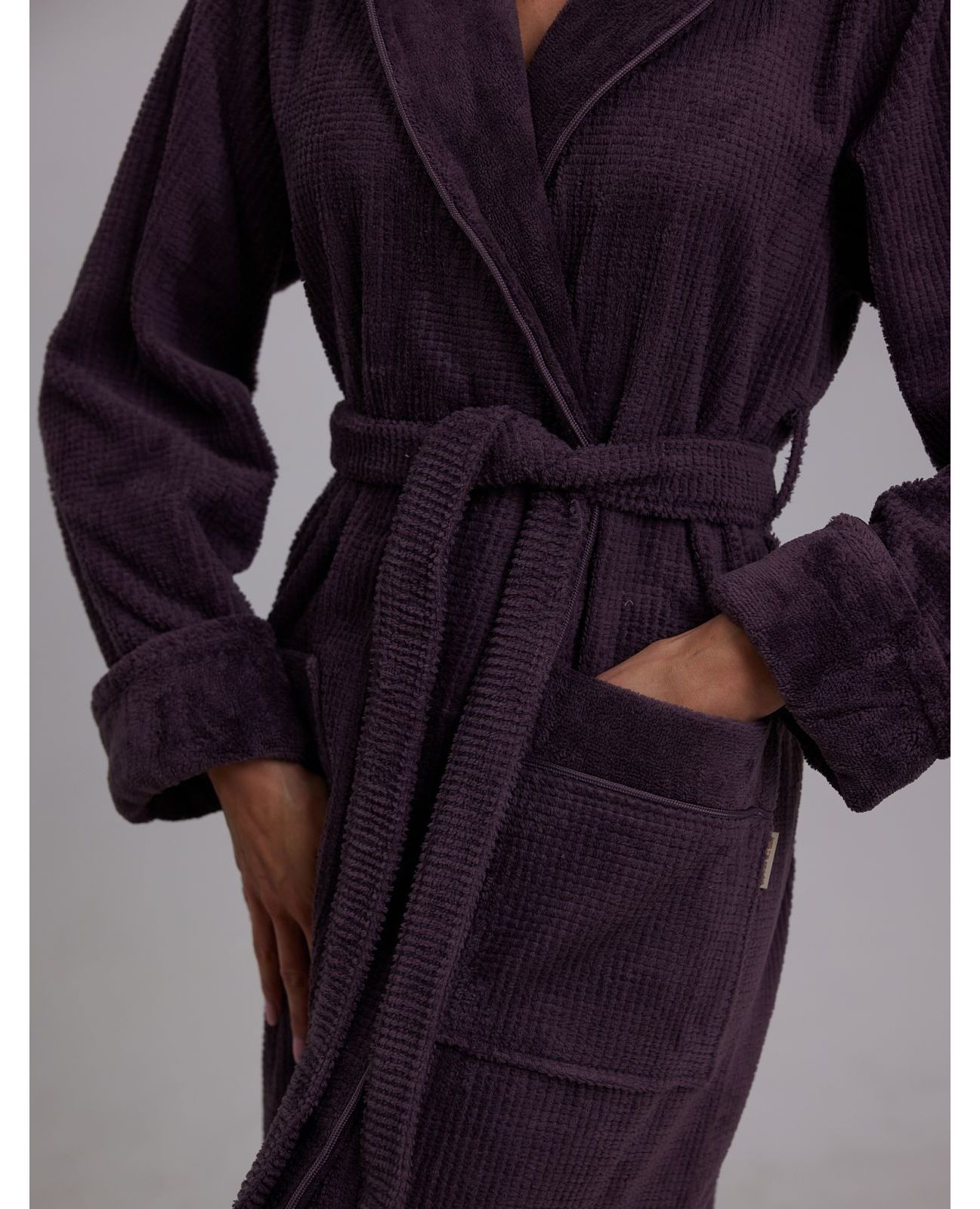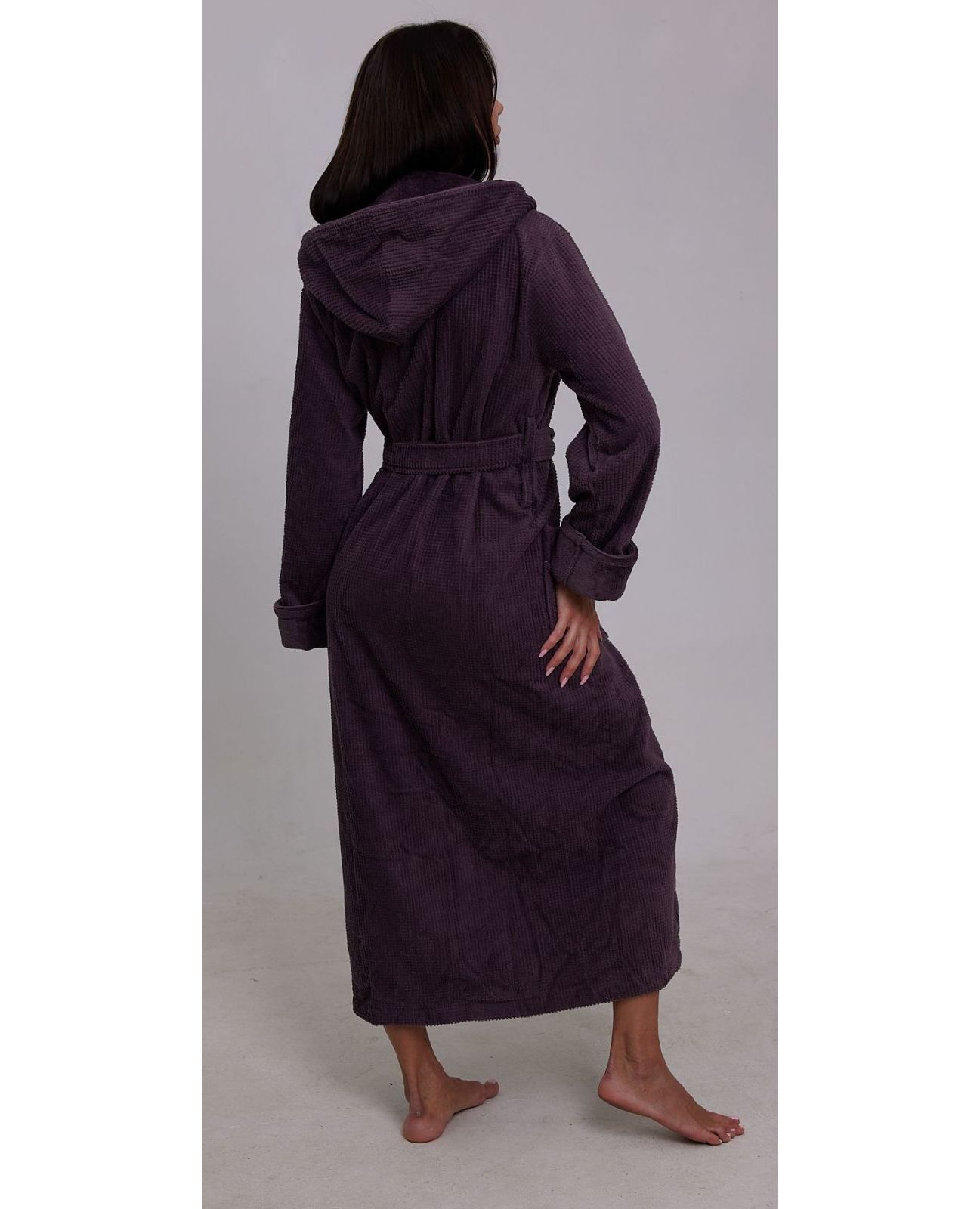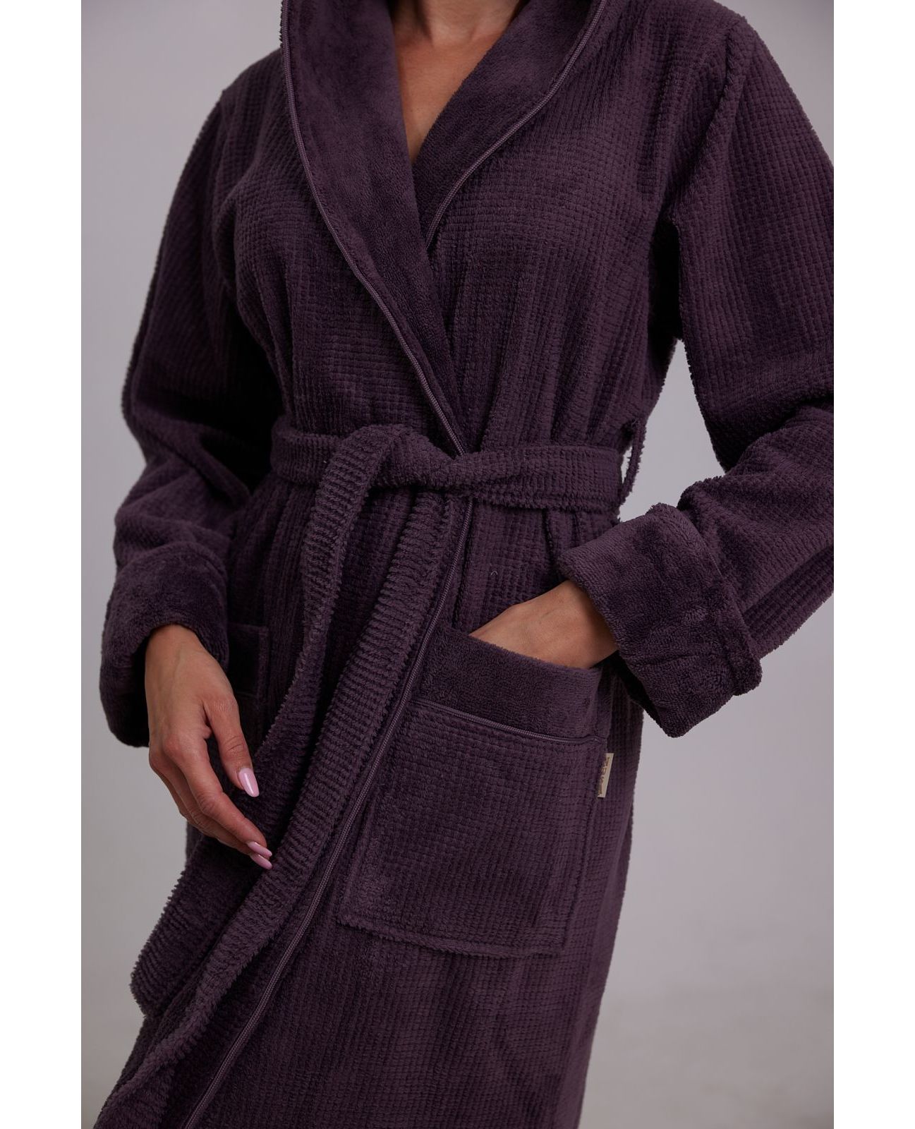 Женский махровый халат на запах с капюшоном фиолетового цвета — уютный и практичный вариант для дома. Мягкий материал из 50% хлопка и 50% бамбука приятен к телу, хорошо пропускает воздух и обеспечивает комфорт и нежность при носке. Капюшон добавляет дополнительный уют, а модель на запах легко застёгивается и подходит для повседневного использования.