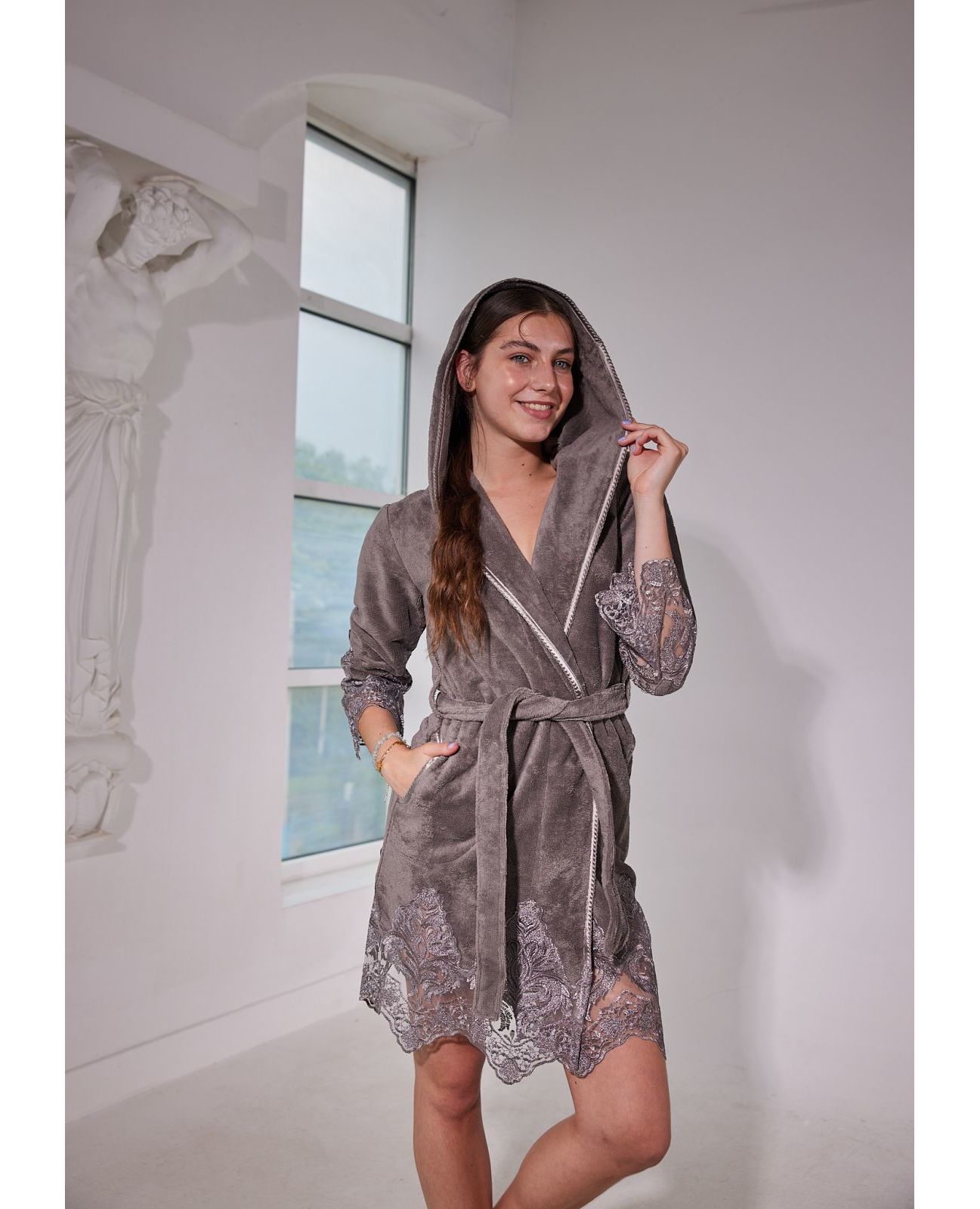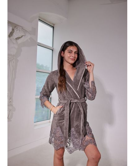 Женский махровый халат на запах цвета капучино, украшенный кружевом — сочетание комфорта и элегантности для дома. Мягкий и приятный к телу материал из 50% хлопка и 50% бамбука обеспечивает отличную воздухопроницаемость, влагопоглощение и нежность на ощупь. Модель на запах с кружевным декором подчёркивает женственность и делает халат изысканным и стильным.