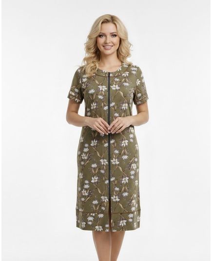Женский халат на молнии с цветочным принтом коричневого цвета — удобный и стильный вариант для дома. Выполнен из 100% хлопка, халат приятен к телу, хорошо пропускает воздух и обеспечивает комфорт на протяжении всего дня. Цветочный принт придаёт модели женственность и изысканный вид, а застёжка-молния делает его практичным и удобным в использовании.