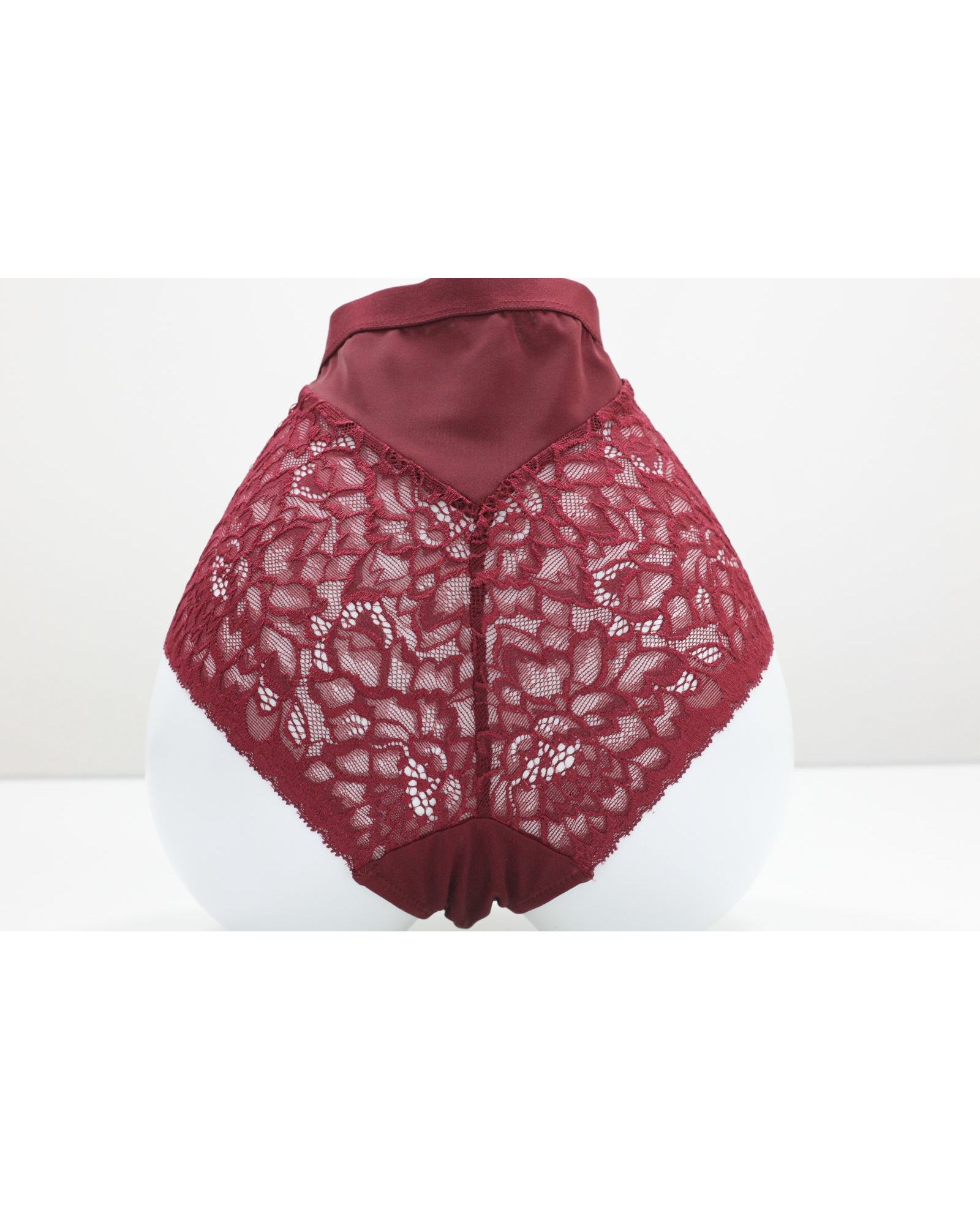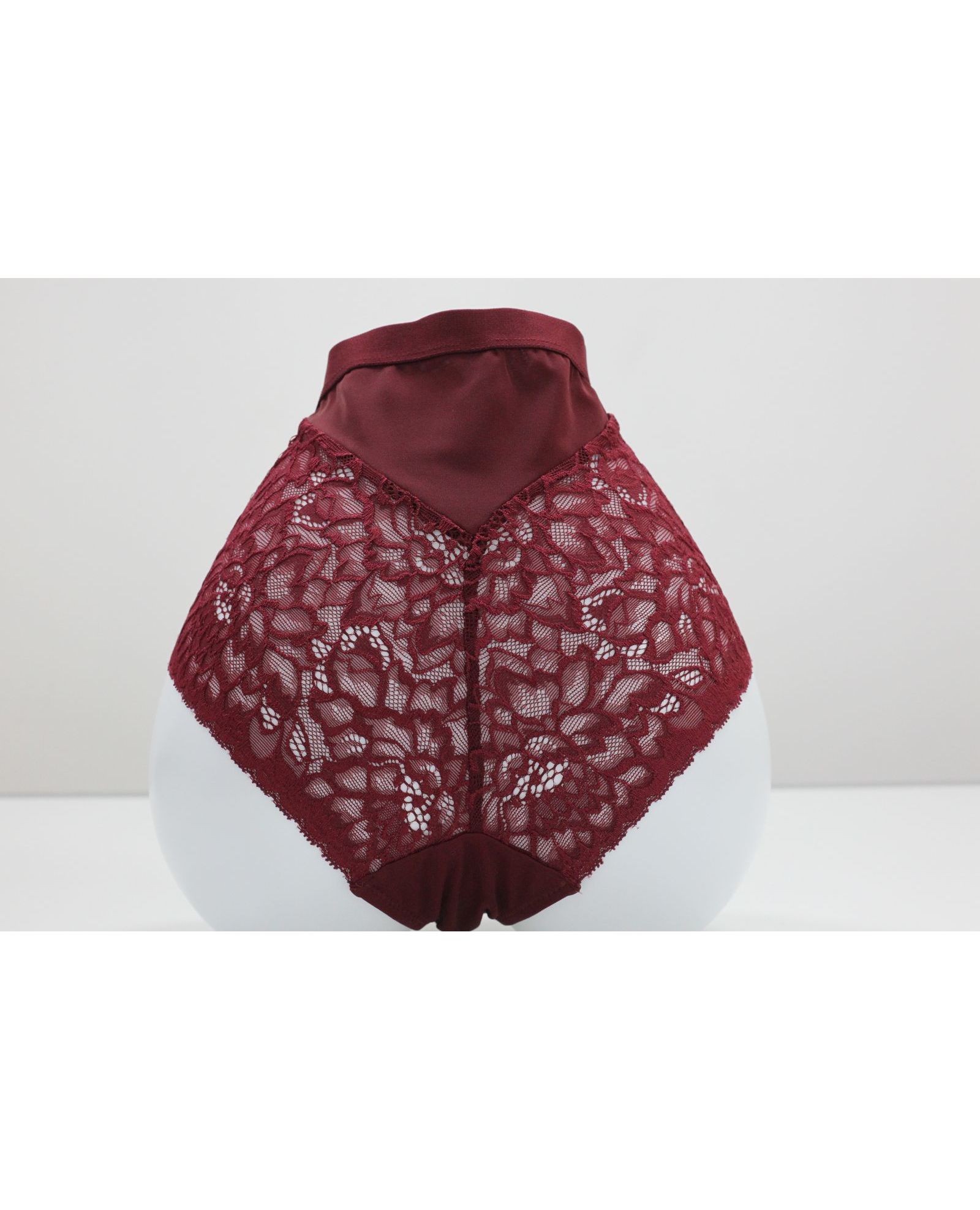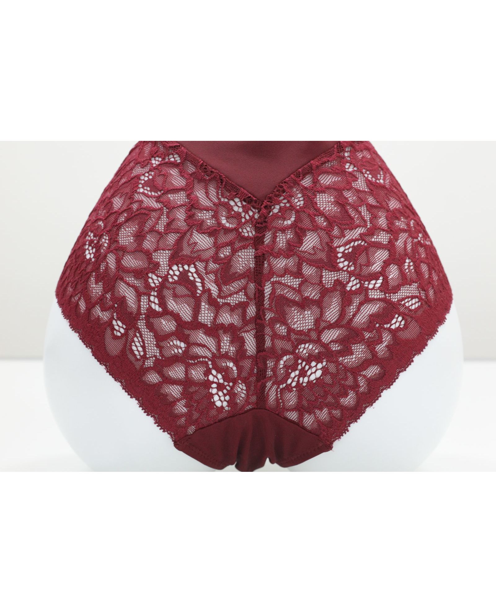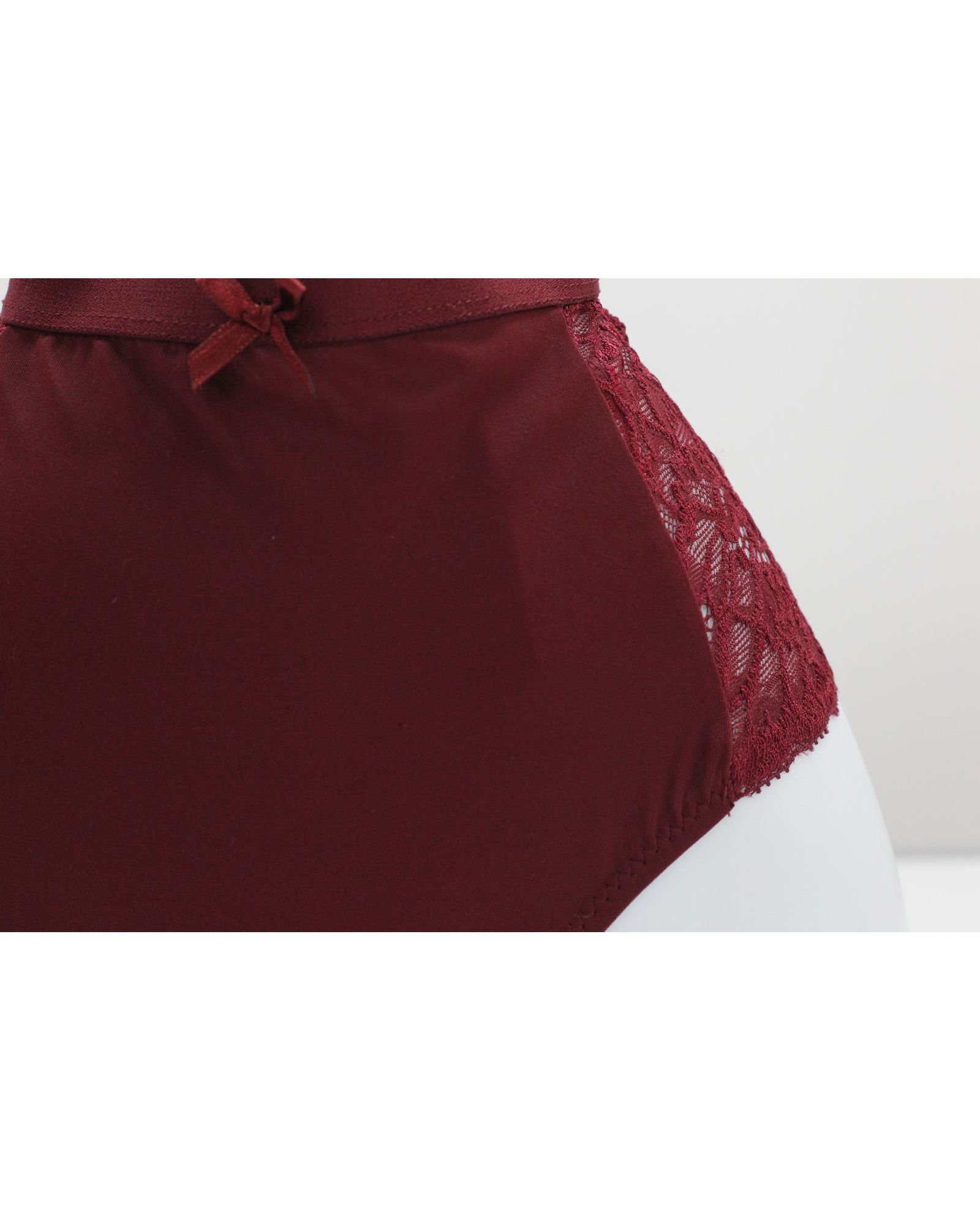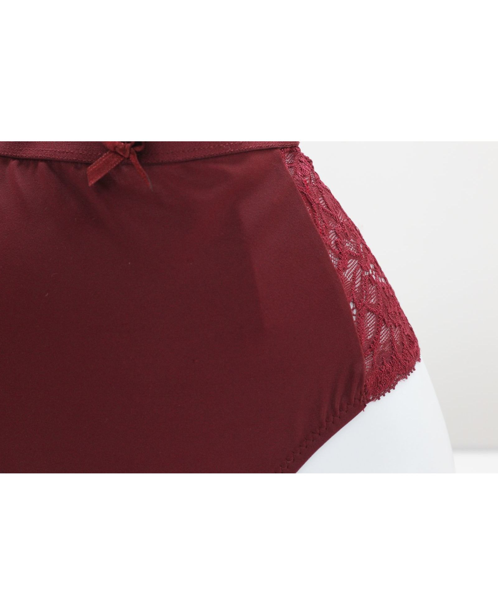 Женские плавки бордового цвета с кружевной отделкой